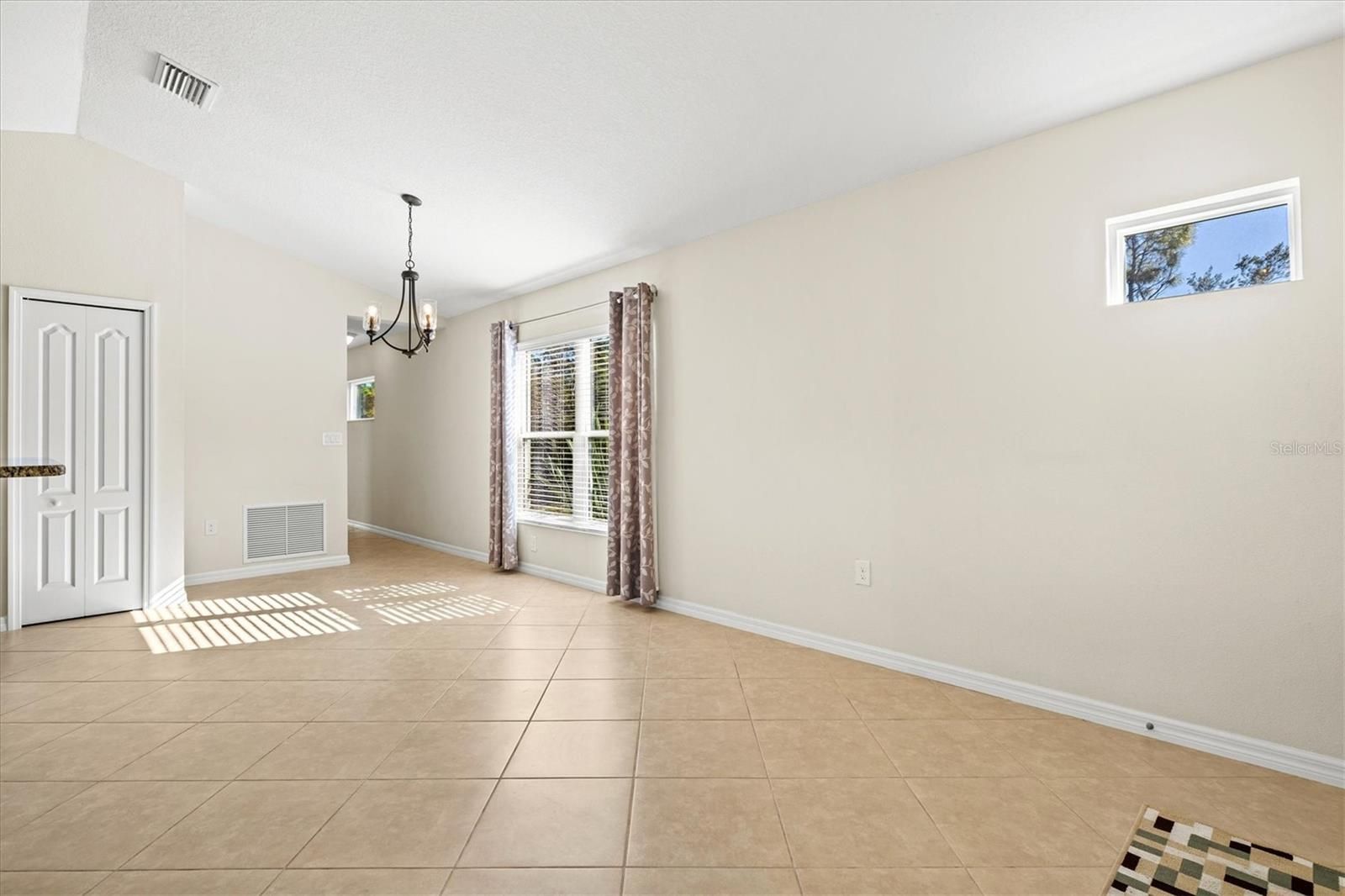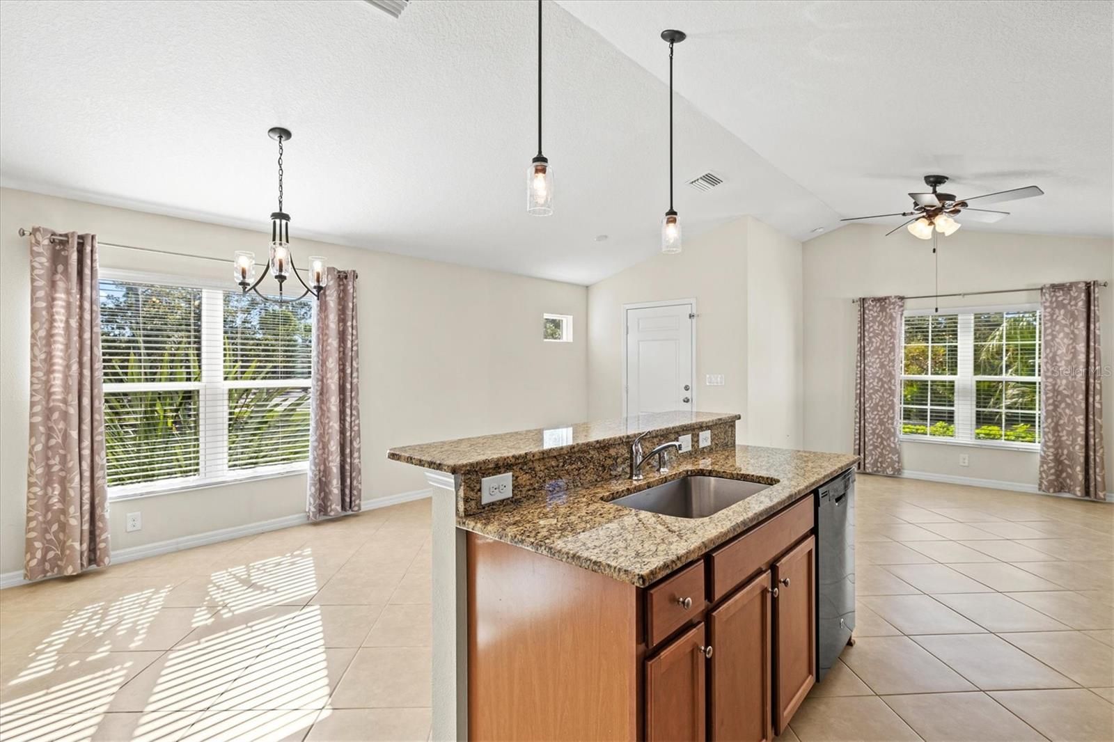 - Cathedral Ceiling(s), Ceiling Fan(s), Eat-in Kitchen, High Ceilings, Kitchen/Family Room Combo, Open Floorplan, Main Level Primary, Vaulted Ceiling(s), Walk-In Closet(s), Window Treatments