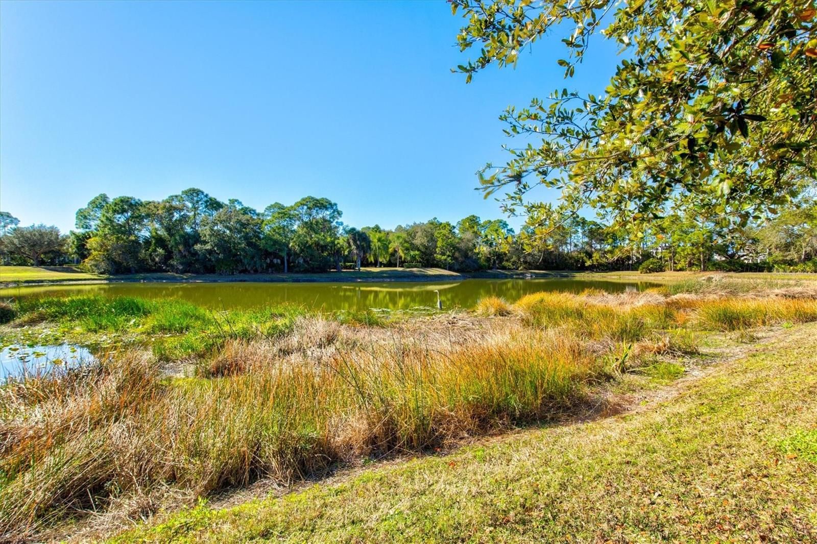 Enjoy peaceful pond views and glowing sunsets from the front porch of this picture-perfect cottage, ideally situated on a desirable corner lot within the gated, resort-style Grand Palm community. This impeccably maintained two-bedroom, two-bath home with an attached two-car garage is spotless, move-in ready, and filled with abundant natural light throughout. Inside, the open and airy floor plan seamlessly connects the great room, dining area, and kitchen, creating an inviting space ideal for both everyday living and entertaining. The bright kitchen features granite slab countertops, a stone backsplash, stainless steel appliances, a closet pantry, and a spacious breakfast bar with pendant lighting. Maple cabinetry with crown molding adds warmth and timeless appeal. The spacious owner’s suite offers room for a sitting area, a walk-in closet, and a well-appointed ensuite bath. A second bedroom and full bath provide comfort and flexibility for guests or a home office. Additional highlights include volume ceilings, neutral tile in the main living areas, brand new carpet in the bedrooms, faux wood blinds, fresh interior paint, and breathtaking front-facing views of the water and surrounding natural landscape. The attached two-car garage offers direct access to the home and features charming exterior coach lighting, while the interior laundry room includes shelving for added convenience. Located just a short walk from the clubhouse, this home provides easy access to Grand Palm’s exceptional amenities, including a resort-style pool, splash park, tot lot, fitness center, and an on-site activities director offering year-round programming. Outdoor enthusiasts will love the adventure lake with kayak and canoe launch, miles of scenic walking and biking trails, multiple dog parks, and beautifully maintained lakes and green spaces throughout the community. Enjoy true maintenance-free living in one of the area’s most sought-after communities, where location, lifestyle, and comfort come together beautifully.