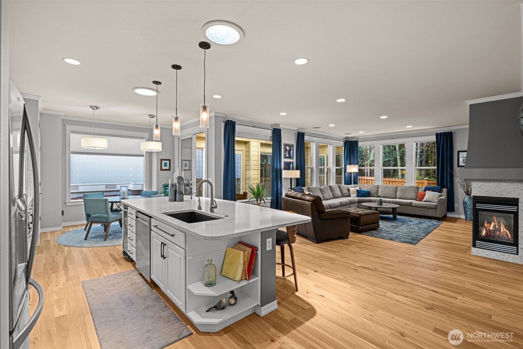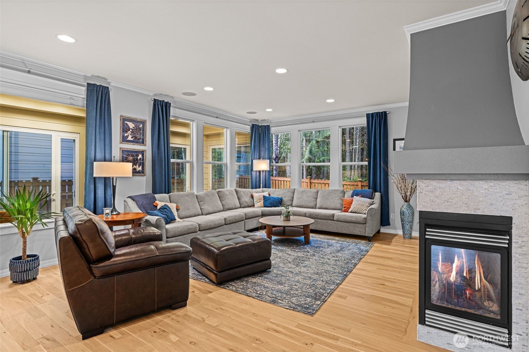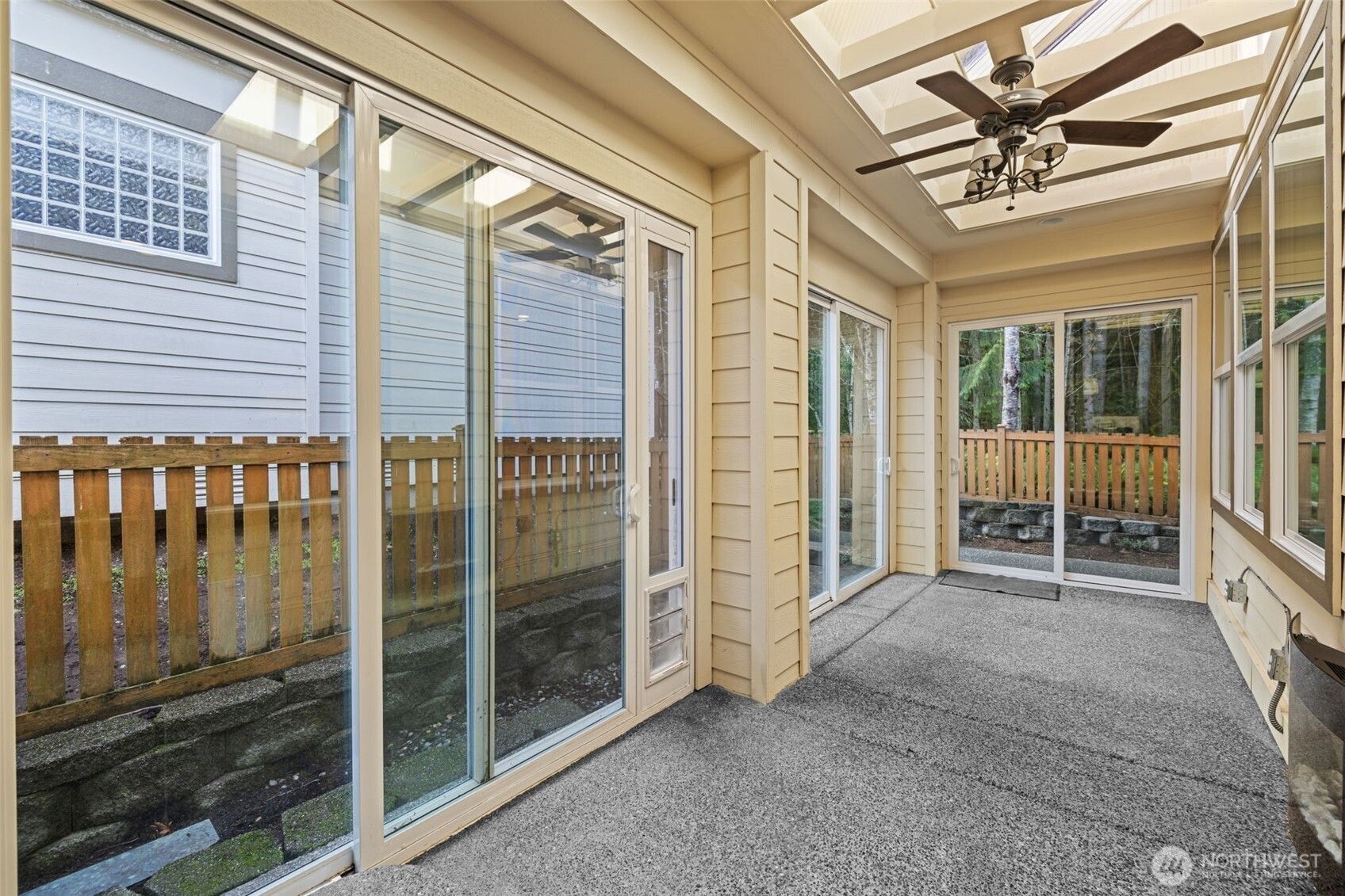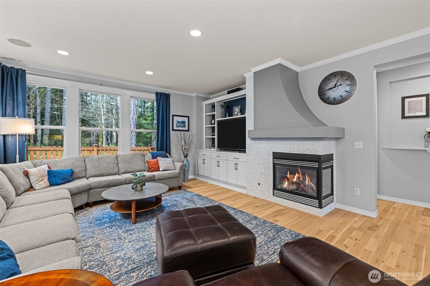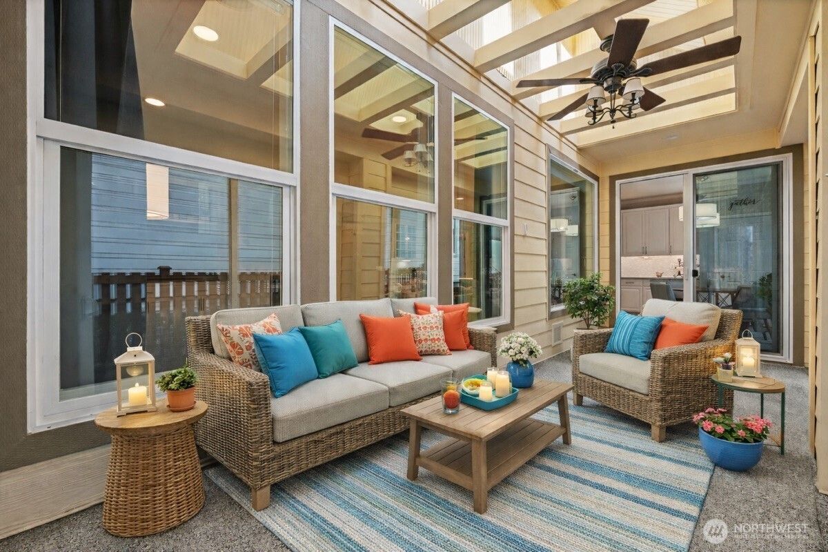 Welcome home to Trilogy (55+ community) and enjoy resort-style living. Complete with clubhouse, bistro, pool, fitness center, golf, tennis, miles of trails, and more. This meticulously maintained WHIDBEY model is situated next to a tranquil greenbelt setting offering privacy and easy access to trails. Upon entering, you will notice a welcoming layout featuring gleaming hardwood floors, solar tubes, skylights, and a generous-sized great room with plenty of space to entertain, media built-ins, and gas fireplace. Lovely kitchen features flowing lay-out, stainless steel appliances, gas stovetop, quartz countertops, island kitchen with seating, and dining space next to it. Spacious primary bedroom with en-suite bath, and walk-in closet with custom built-ins. Den/office space with French doors. You will want to see this unique WHIDBEY model as it has a CUSTOM SUNROOM with skylights, ceiling fan, and electric fireplace offering you a fantastic flex space! How will you enjoy this extra space? Brand new roof, central AC, top-down bottom-up blinds, additional attic storage with pull-down ladder, and pre-inspected.