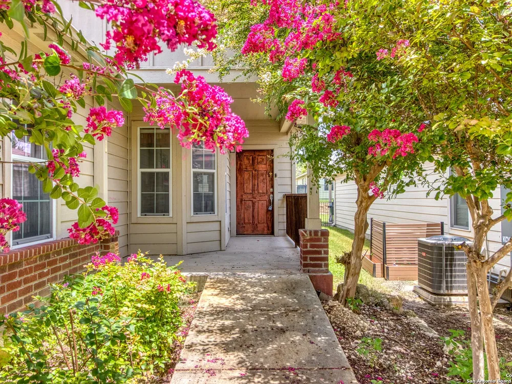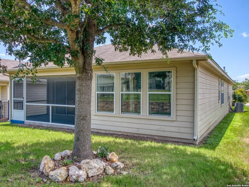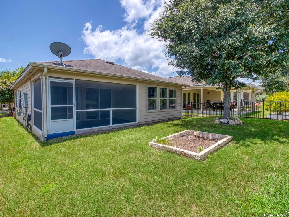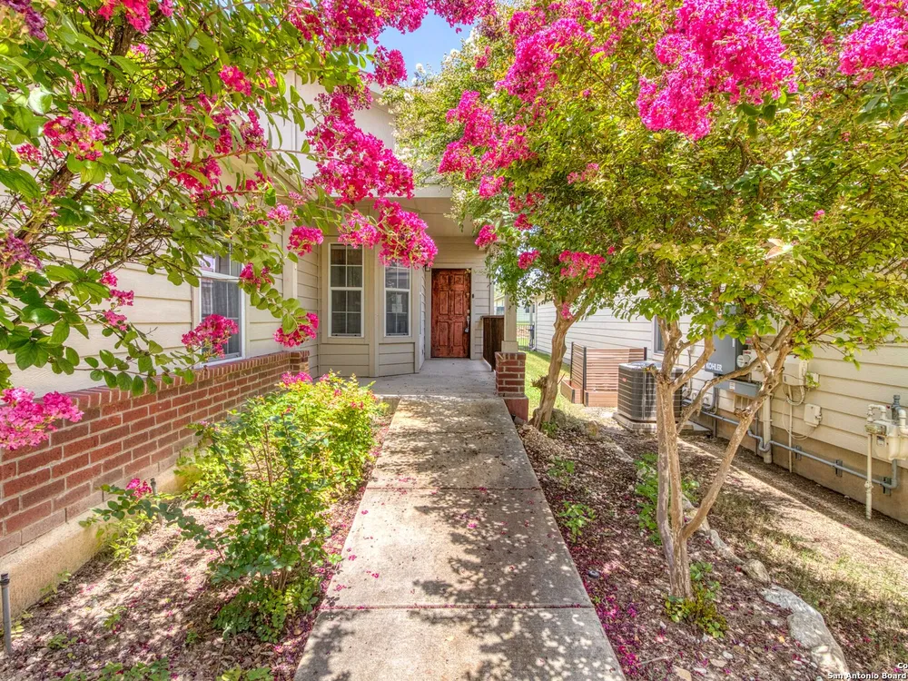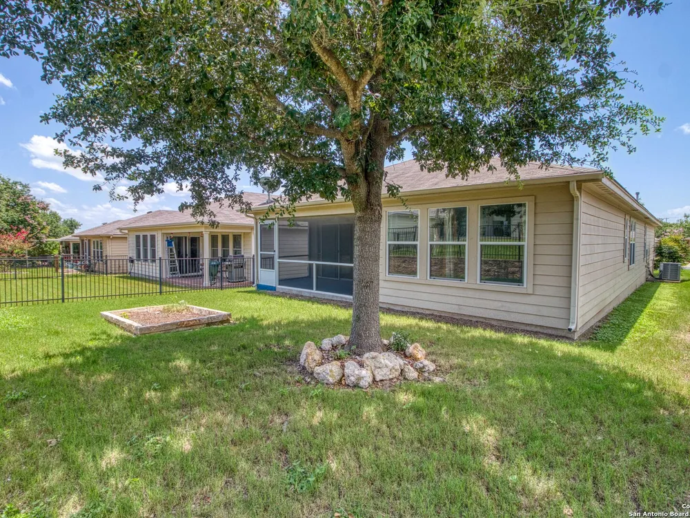 Welcome to this stunning 3-bedroom, 2-bath home in the highly desirable, gated "Hill Country Retreat" community-an exclusive Del Webb 55+ neighborhood. This immaculate "Pine Spring" model by Pulte's Garden Series offers the perfect blend of comfort and style, with all the modern upgrades you're looking for. Recently refreshed with new kitchen cabinets, gorgeous granite countertops, a sleek new sink, fresh paint, new vinyl floors, and a brand-new HVAC system installed in 2024, this home is truly move-in ready. Boasting a spacious open floor plan, the large main bedroom features a luxurious ensuite bathroom and an expansive walk-in closet, offering plenty of room for all your essentials. Additional storage throughout ensures you'll never be short on space. A two-car attached garage adds convenience and ample storage. Step outside and relax in your private screened-in back patio, perfect for unwinding in the serene, fenced backyard. Gardening enthusiasts will appreciate the above-ground garden box, providing a great opportunity to cultivate your favorite plants. Living in this vibrant active-adult community means access to world-class amenities, including over 5 miles of scenic walking trails, indoor and outdoor pools with hot tubs, tennis and pickleball courts, fitness classes, bocce ball, and more. Engage in a variety of social events like dance classes, wellness programs, monthly bingo, and karaoke. The neighborhood is full of cultural experiences, with a library, events, outdoor excursions, and even neighborhood parades. Plus, with the HOA covering trash pick-up and no city taxes to worry about, this home offers both convenience and affordability. Come enjoy resort-style living at its finest-schedule a tour today and experience everything this exceptional property and community have to offer!