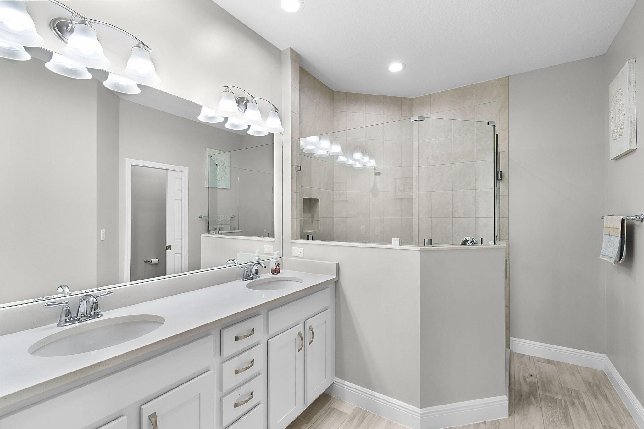 Elegantly stunning - professionally decorated! This pristine 3/2/2 PLUS DEN is a master class in how to appoint a villa to turn heads! Just move on in and enjoy! Upgraded kitchen, baths, flooring, lanai, and landscaping. Ideal for downsizing without regretting it. The den boasts an ideal space for reading, working, or just some ''me'' time. Upgraded flooring throughout - no carpeting! Impact windows and doors and you're situated at the end of the street with only one homeowner driving past you. Exquisitely upgraded landscaping welcomes you from the moment you arrive! Come enjoy the peaceful quiet of LakePark located in beautiful Tradition! Must see to fully appreciate this beautiful gem!