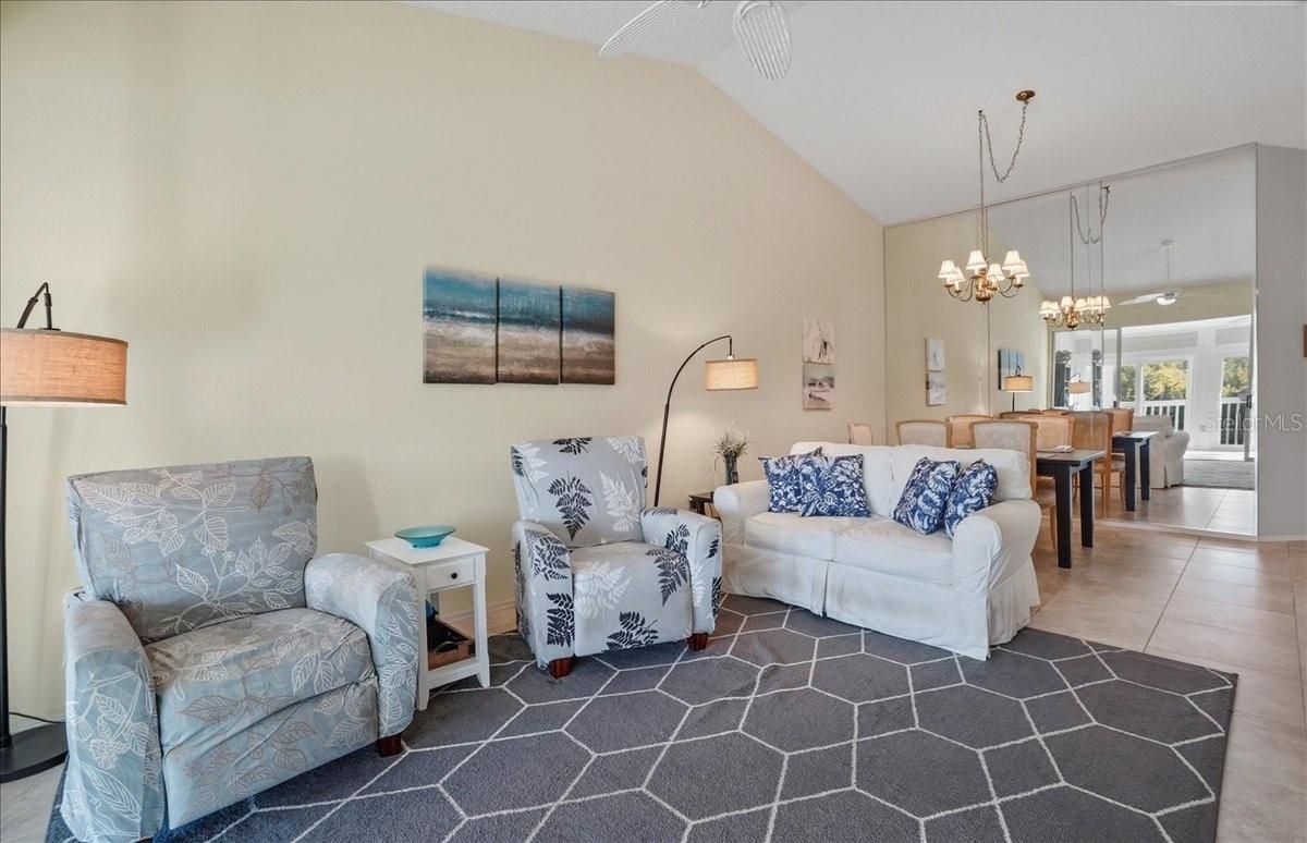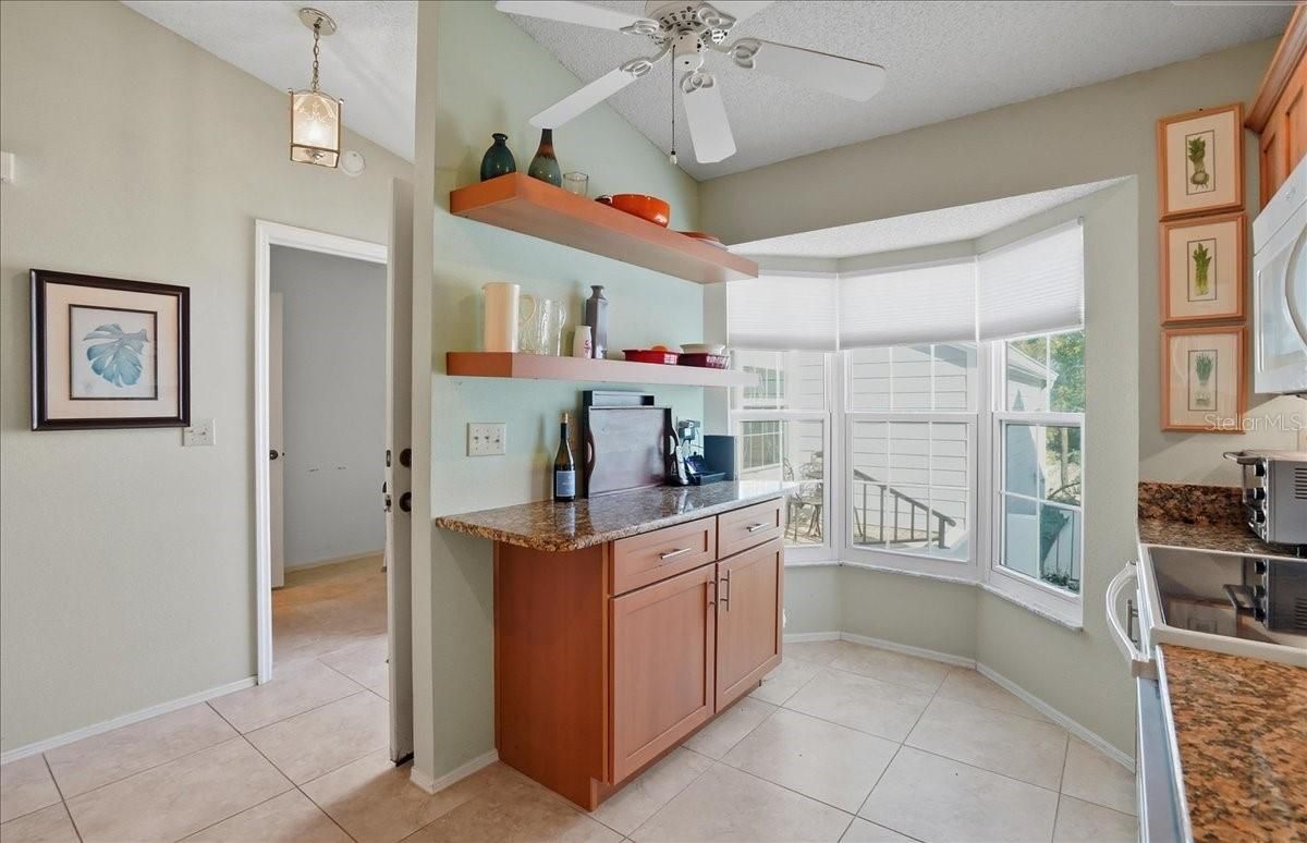 - Accessibility Features, Cathedral Ceiling(s), Ceiling Fan(s), Living/Dining Room, Open Floorplan, Main Level Primary, Split Bedrooms, Stone Counters, Thermostat, Walk-In Closet(s)