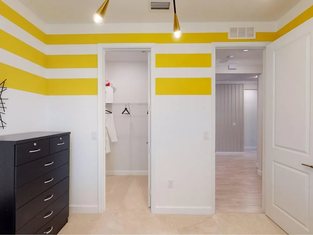 - Split Bedrooms, Entry Level Living Area, Kitchen Island, High Ceilings, Walk-In Closet(s), Entrance Foyer, Pantry, Breakfast Area, Blinds, Impact Glass, Storm Window(s), Separate Shower, Primary Downstairs, Dual Sinks, Washer/Dryer Hookup
