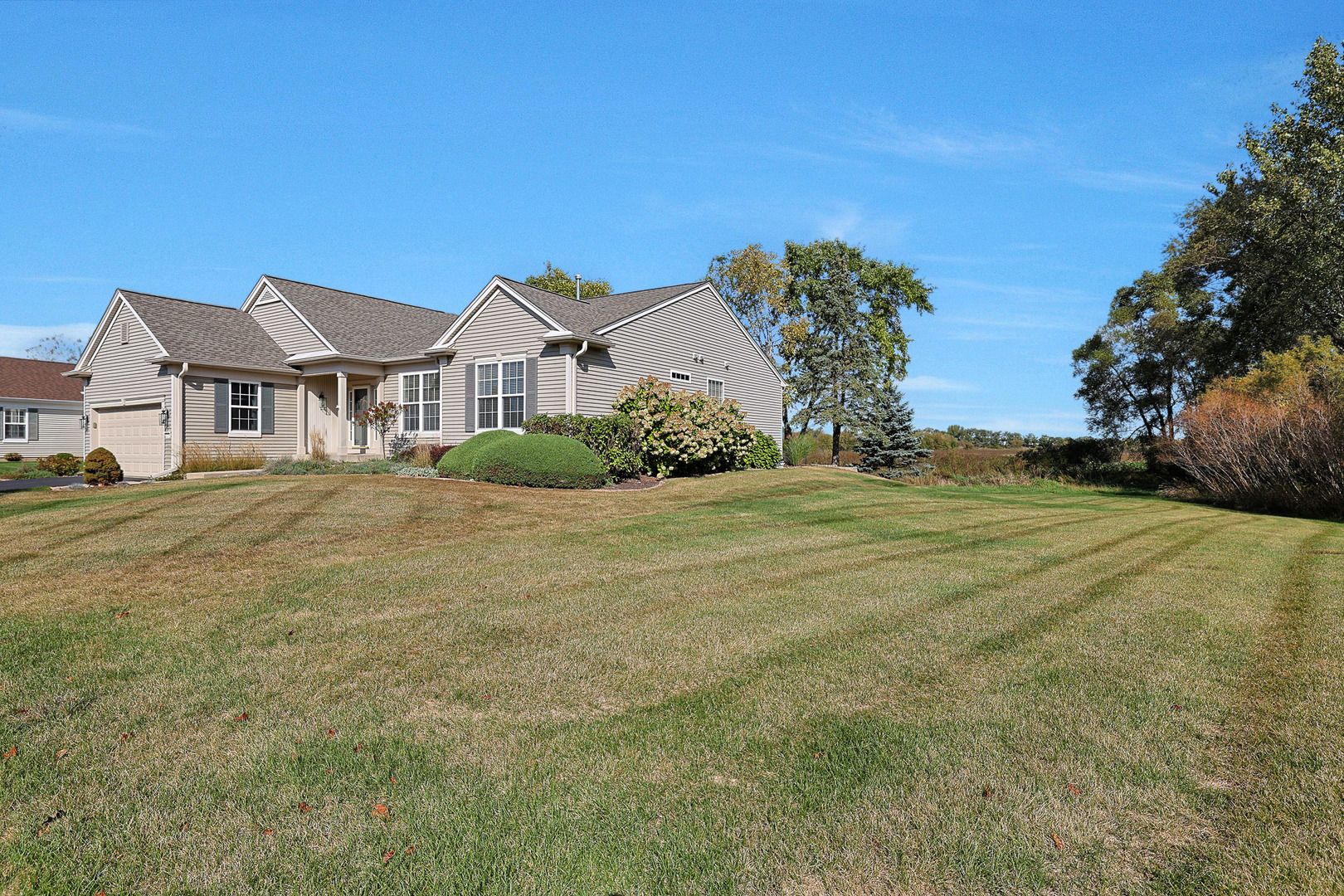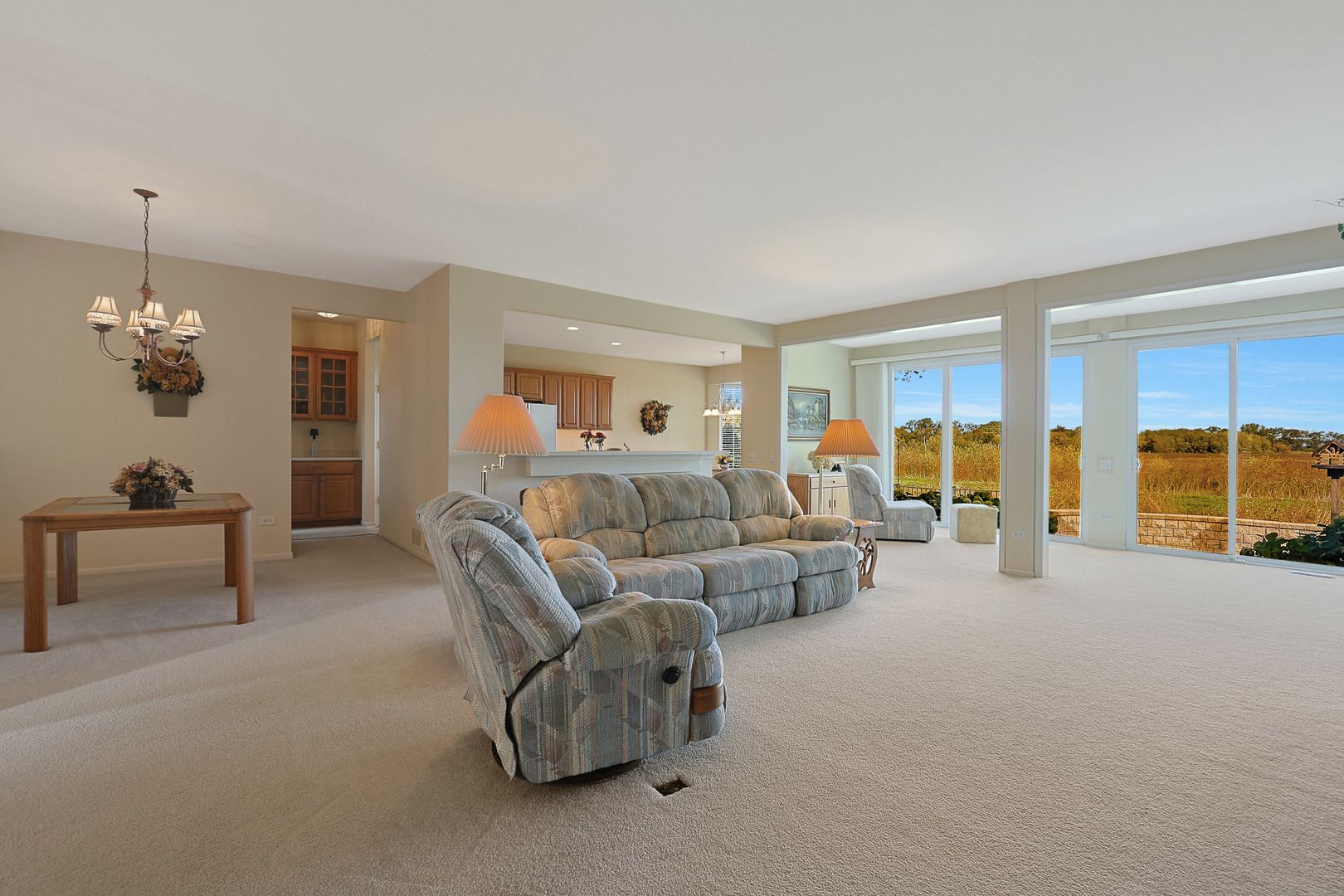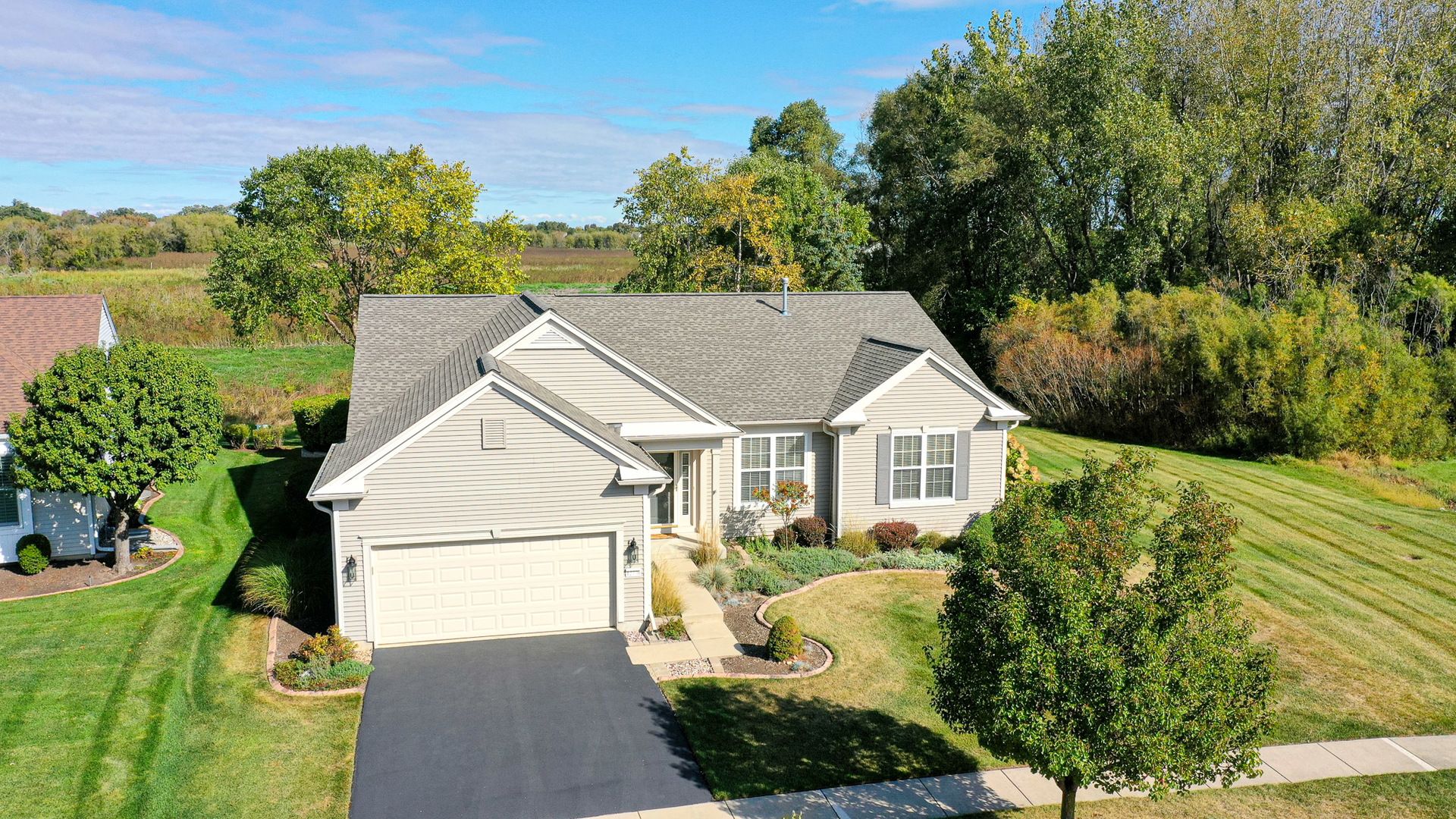 Fantastic location for this popular Adler model with a finished basement! This beautiful home offers 3 bedrooms, 2 full bathrooms, and a bright sunroom overlooking peaceful views. Step into a welcoming ceramic tile foyer that opens to the spacious living area and sunroom featuring a cozy fireplace. The gourmet kitchen is designed for both style and function, with a breakfast nook and bay window, 42" maple cabinets with crown molding and hardware, under-cabinet lighting, Corian countertops, a large island, breakfast bar, and stainless steel appliances-including a double oven. The sizable primary suite includes a huge walk-in closet and a private bath with dual vanities and a relaxing jetted tub. Downstairs, the finished basement offers a massive recreation room and a large unfinished storage area complete with built-in shelving. Enjoy beautiful views of open space and visiting wildlife from the oversized brick paver patio with knee-high wall and fencing. The yard is professionally landscaped front and back. Recent updates include: New roof (2024), new driveway (2021), new water heater (2018), new sump pump and ejector pump (2021), newer carpet and blinds, and an epoxy-coated garage floor with pull-down attic stairs. Come experience the incredible lifestyle of this 55+ active adult community-featuring two lodges, three pools, tennis, bocce, and so much more!