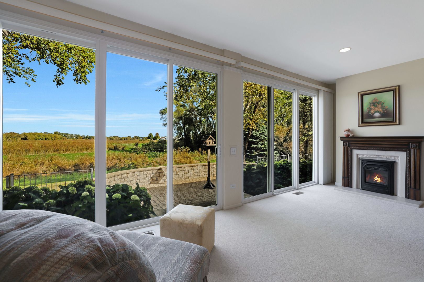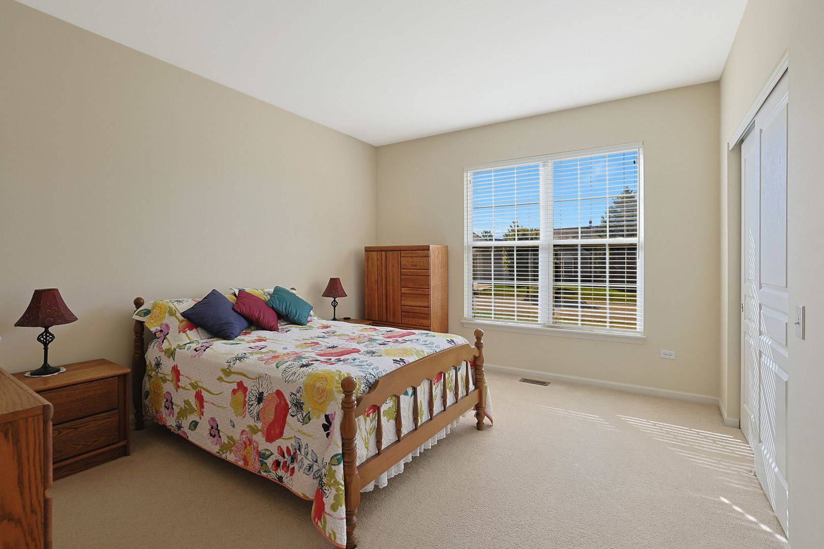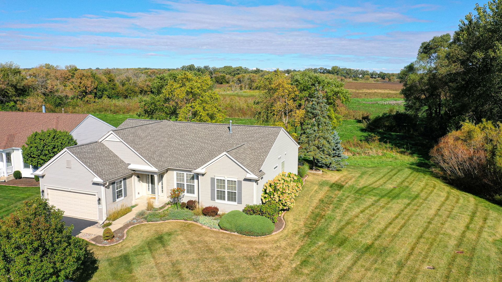 Fantastic location for this popular Adler model with a finished basement! This beautiful home offers 3 bedrooms, 2 full bathrooms, and a bright sunroom overlooking peaceful views. Step into a welcoming ceramic tile foyer that opens to the spacious living area and sunroom featuring a cozy fireplace. The gourmet kitchen is designed for both style and function, with a breakfast nook and bay window, 42" maple cabinets with crown molding and hardware, under-cabinet lighting, Corian countertops, a large island, breakfast bar, and stainless steel appliances-including a double oven. The sizable primary suite includes a huge walk-in closet and a private bath with dual vanities and a relaxing jetted tub. Downstairs, the finished basement offers a massive recreation room and a large unfinished storage area complete with built-in shelving. Enjoy beautiful views of open space and visiting wildlife from the oversized brick paver patio with knee-high wall and fencing. The yard is professionally landscaped front and back. Recent updates include: New roof (2024), new driveway (2021), new water heater (2018), new sump pump and ejector pump (2021), newer carpet and blinds, and an epoxy-coated garage floor with pull-down attic stairs. Come experience the incredible lifestyle of this 55+ active adult community-featuring two lodges, three pools, tennis, bocce, and so much more!