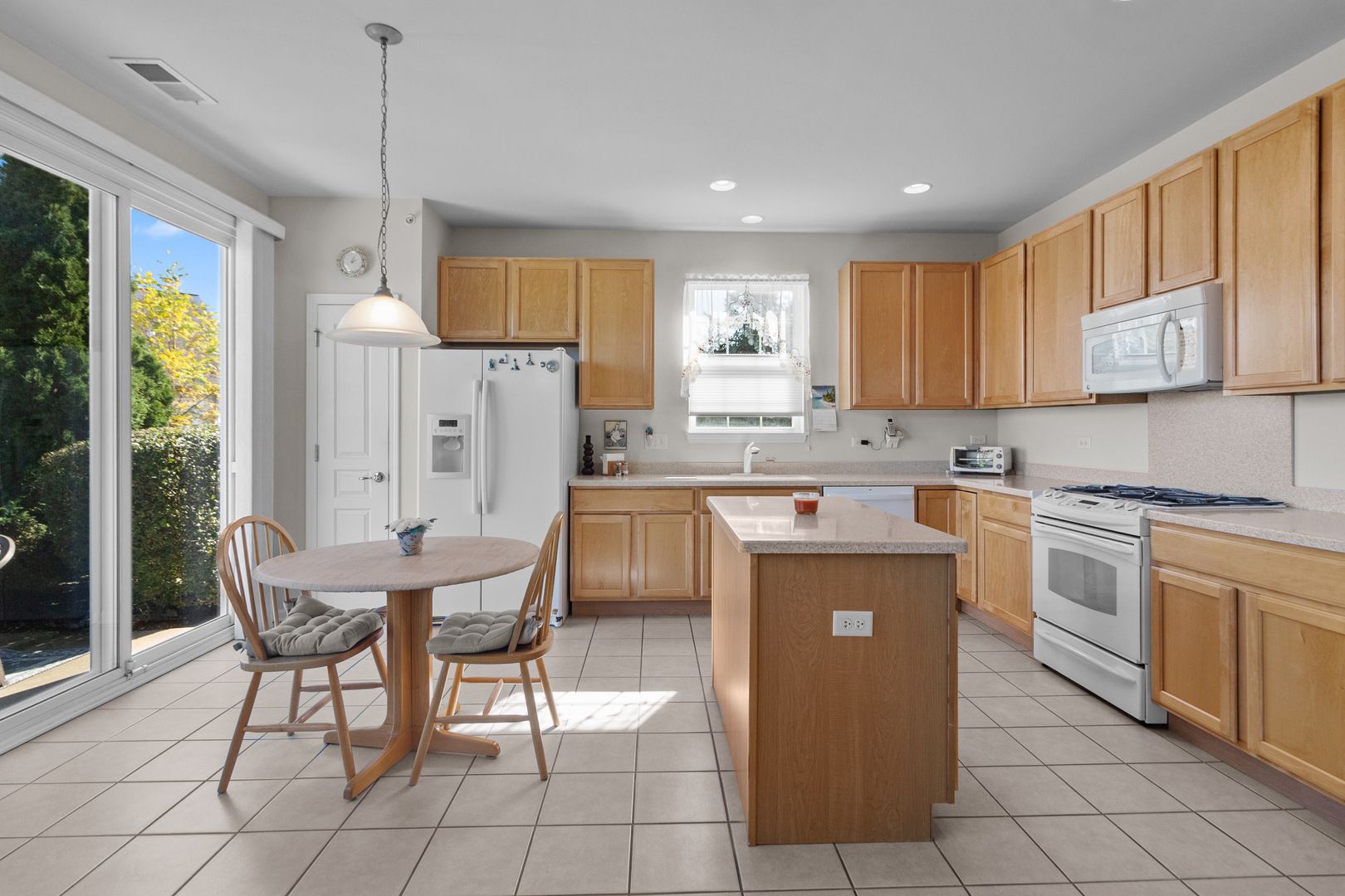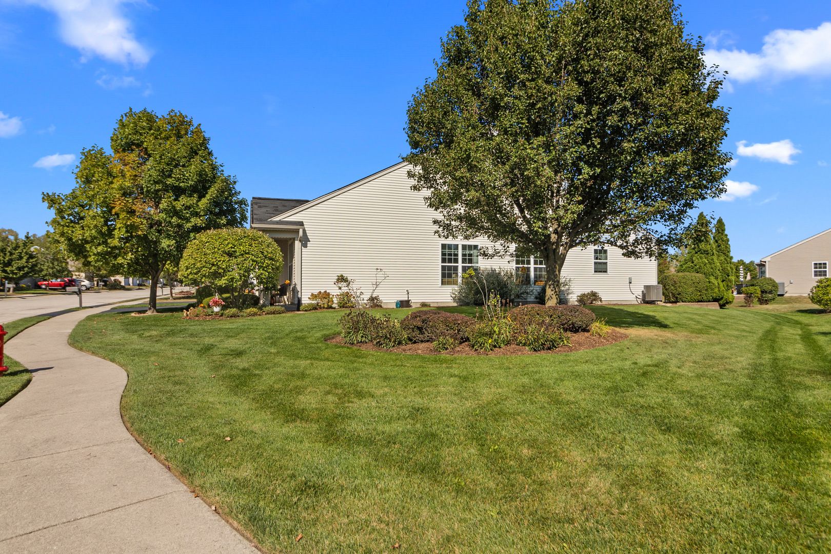 This light and bright Potomac ranch with 2 bedrooms, 2 bathrooms and a den will delight you, your family and friends with a spacious open concept design. Start your next chapter in this highly sought after Del Webb Sun City community located in Huntley. With approximately 1613 square feet of living space, plus a 2-car garage and beautifully landscaped lush yard with in-ground sprinklers. You can unwind while having your morning coffee on the covered front porch or an evening beverage while sitting on your patio and enjoying the beautiful backyard views. This immaculately kept home is easy care with tile flooring throughout the main living areas. New updates include: a new dishwasher (2023), washer & dryer (2023), water heater (2022), kitchen faucet (2025), and bathroom lighting (2025). A brand-new roof will be installed in November. Other amenities are wood trimmed windows with blinds & valances, bay window in primary bedroom and ceiling fans. Lawn service has been paid through the end of the 2025 season and a deposit for snow removal has been paid towards the 2025-2026 winter season. Relax or find plenty of exciting activities and amenities in this 55+ premier community. It offers: two outdoor pools, one indoor pool with indoor walking track above, two state of the art exercise facilities, golf course, fishing lake, pickleball, tennis, bocce ball, walking and biking trails throughout the scenic grounds, on site restaurant, indoor/outdoor concerts and over 40 clubs to join. Conveniently close to shopping, dining, hospitals and interstate access. Make this move in ready home yours and start enjoying the Del Webb lifestyle.