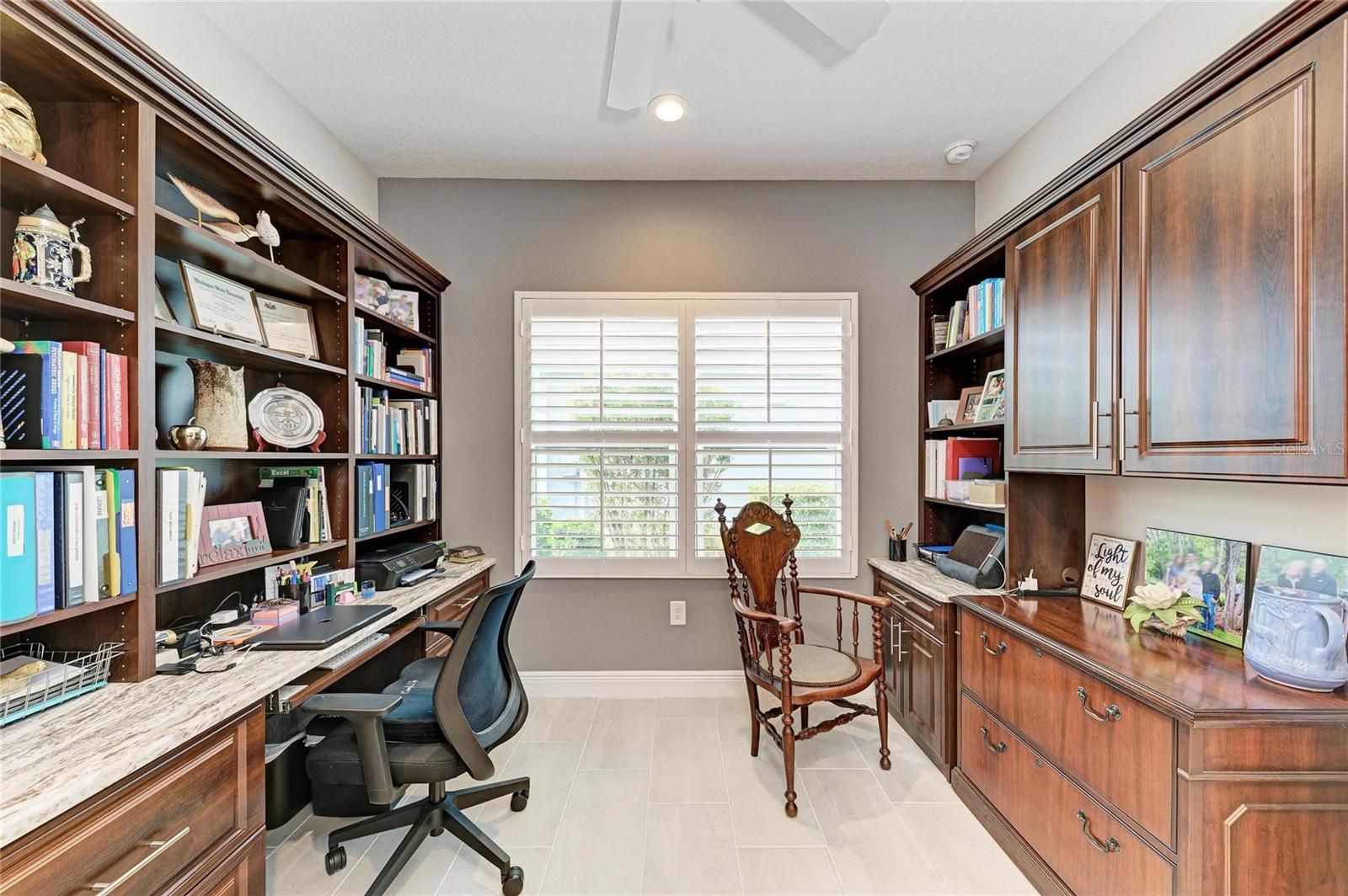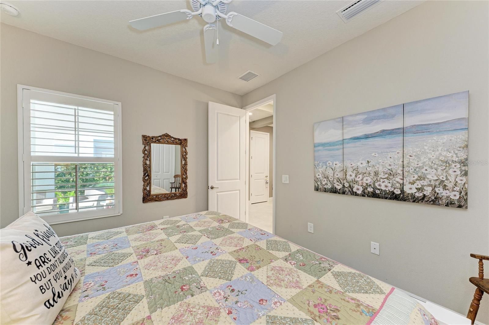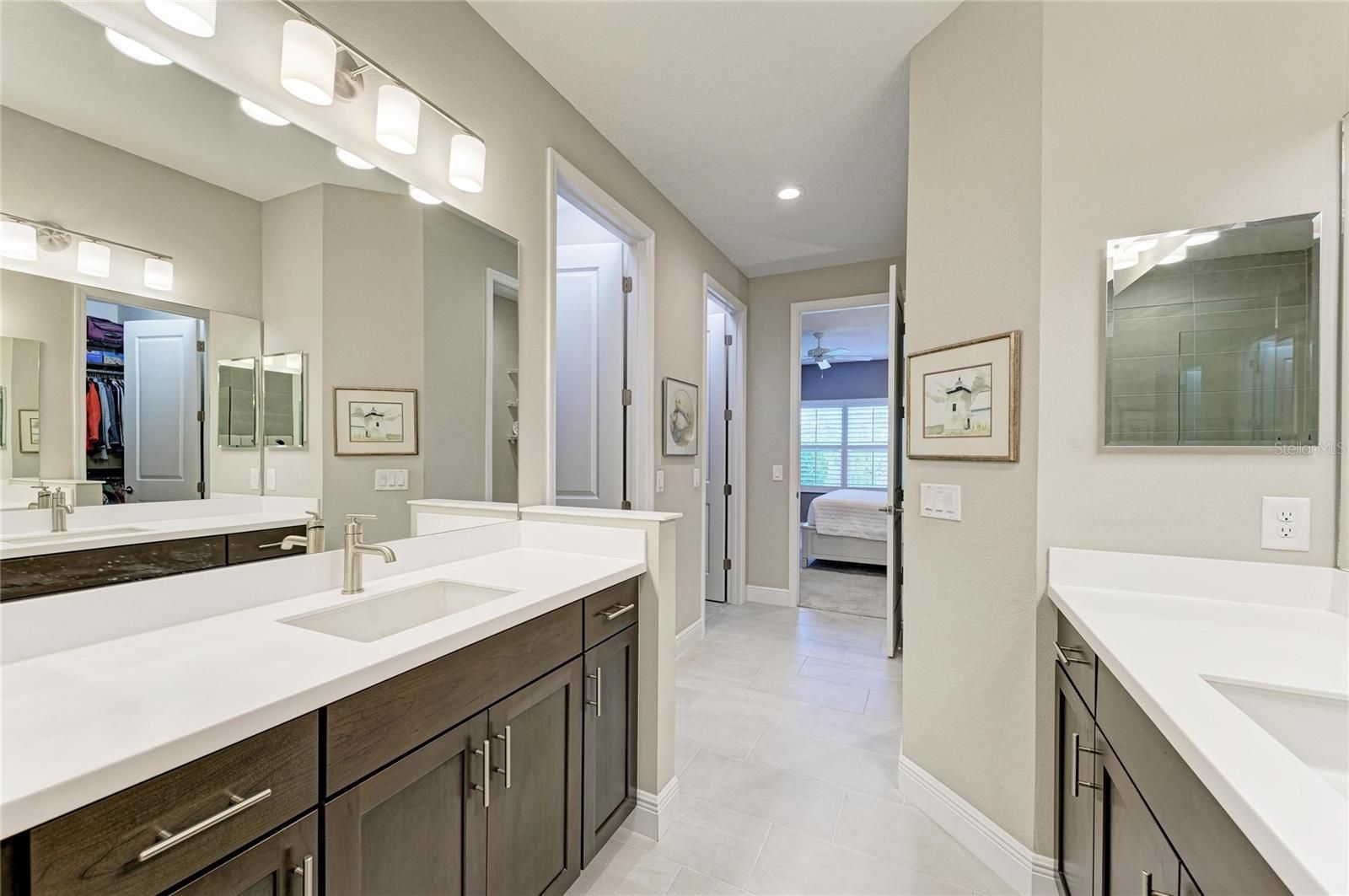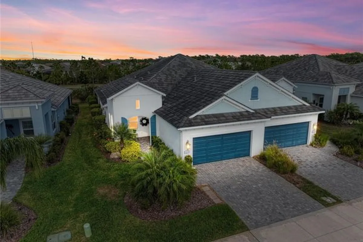 Beautifully appointed Grand Palm smart home villa (built 2020) offering 3 bedrooms plus a den with extensive upgrades throughout. Features include impact glass, solar generator, 9' ceilings, 8' doors, upgraded taller baseboards, and custom designer paint. The smart home system includes AC, thermostat, internet, and security system. The kitchen showcases high-end cabinetry with soft-close dovetail construction, custom pull-outs, and a custom backsplash. The living room features a tray ceiling with crown molding and additional recessed lighting, complemented by custom lighting and fans throughout. The primary suite offers Closet Tech custom closets in both the bedroom and bathroom and solid wood plantation shutters. Both bathrooms are highly upgraded with tile to the ceiling. The office/den includes French doors and custom built-ins. Enjoy seamless indoor-outdoor living with an oversized lanai and pocketing slider doors. The laundry room is upgraded with additional cabinetry and storage. Additional highlights include a whole-house water filtration system, AC purifier, and a garage with epoxy floors, sink, and extra storage. The paver driveway and lanai have been power washed and sealed. HOA covers ground maintenance, offering a low-maintenance, move-in-ready lifestyle with quality finishes throughout.Located in the sought-after gated community of Grand Palm, residents enjoy world-class amenities including miles of nature trails, three playgrounds, dog parks, two clubhouses, three resort-style pools, a fitness center, splash park, two hot tubs, tennis courts, pickleball, a half basketball court, pavilion, and a full-time lifestyle director. Just a short bike ride to the Atlanta Braves Spring Training Stadium for year-round events and walking distance to the brand-new Wellen Park Marketplace with Publix, restaurants, shops, and more. Downtown Wellen Park features an 80-acre lake, waterfront dining, retail shops, rooftop decks, a splash pad, playground, and a public town hall that hosts live theater and music events. Schedule your private showing today and discover what life in Grand Palm is all about.