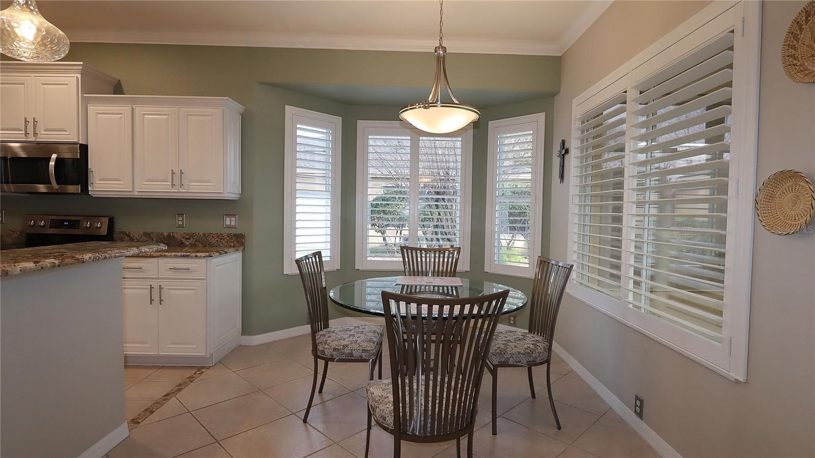 This home shows like a model. Change in plans and the sellers are needing to sell their forever home. Located in the gated 55+ Community of Del Webb's Spruce Creek Golf & Country Club in Summerfield, Florida with a park-like setting and close to The Villages. This gated community offers so much; (4) 9-hole golf courses, softball, pickleball, tennis, bocce, horseshoes, state-of-the art Fitness Center with indoor pool, restaurant and pro-shop. Two outside heated pools. Community Center w/meeting rooms and a large ballroom. Many clubs and activities to numerous to mention here. This immaculate home is not too big and not too small. Great curb appeal w/professional landscaping. Paver drive, walkway and patio. Designer glass leaded entry door w/phantom screen. Foyer has designer medallion on the floor and let's visitors know this is no ordinary home. Home has tile on the diagonal & laminate flooring throughout, no carpeting. All lighting and fans have been replaced recently. Island shutters throughout! Open floor plan. Kitchen features breakfast bar w/pendent lights, closet pantry, granite counter tops, newer stainless steel appliances, a solar tube for natural lighting and stacked cabinetry. Nook has bay windows overlooking lush landscaping and the lanai/patio area. Florida lifestyle at your finger tips. The enclosed climate controlled lanai offers another 340 square feet of living area not reflected in the property appraiser's website. The floor has tile and roll-up blinds on the windows. Adjacent is a paver patio ((14'x30') with a great eastern exposure to enjoy the weather and grillin' & chillin'. Privacy is at a premium here with a planting island equipped with electrical hook-ups for lighting or a waterfall feature. Create your own Zen Garden. The living area also overlooks the backyard and is open to the kitchen and nook. It also has room for a formal dining area if you so desire. Bonus room between garage entry and the kitchen and is used for a home office. Primary suite has laminate flooring and also feature the bay window like the breakfast nook. Large walk-in closet. Primary bath has water closet, large shower and makeup station included in the sink and vanity. Guest bedroom/bath very ample for visiting guests. The oversized garage (the mancave) is perfect for golf cart parking and a workshop area (9'x21'). Features keyless entry for both doors, pull-down stairs and attic storage, laundry, window, gas water heater and remote screen. Architectural shingle (2022), HVAC (2011), water heater (2019), exterior paint (2018). Private irrigation well saving you money monthly. This home is located in the quiet area of Torrey Pines and close to the fitness center and Peninsula Park.