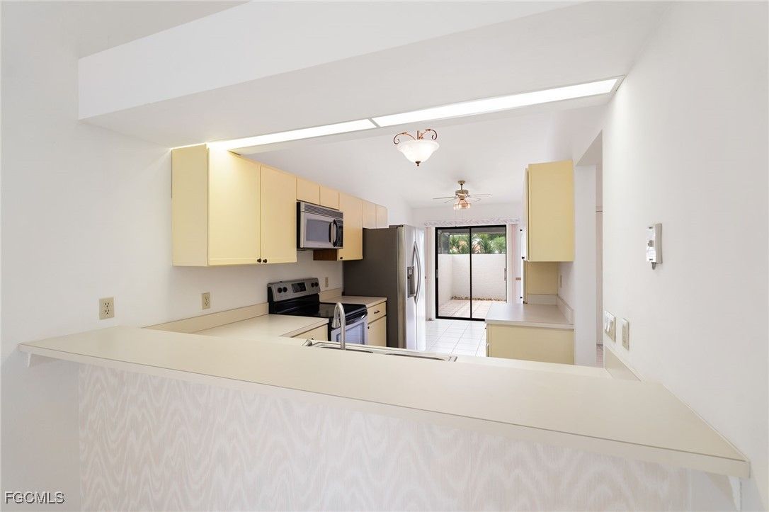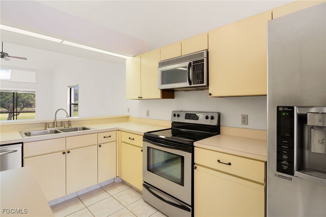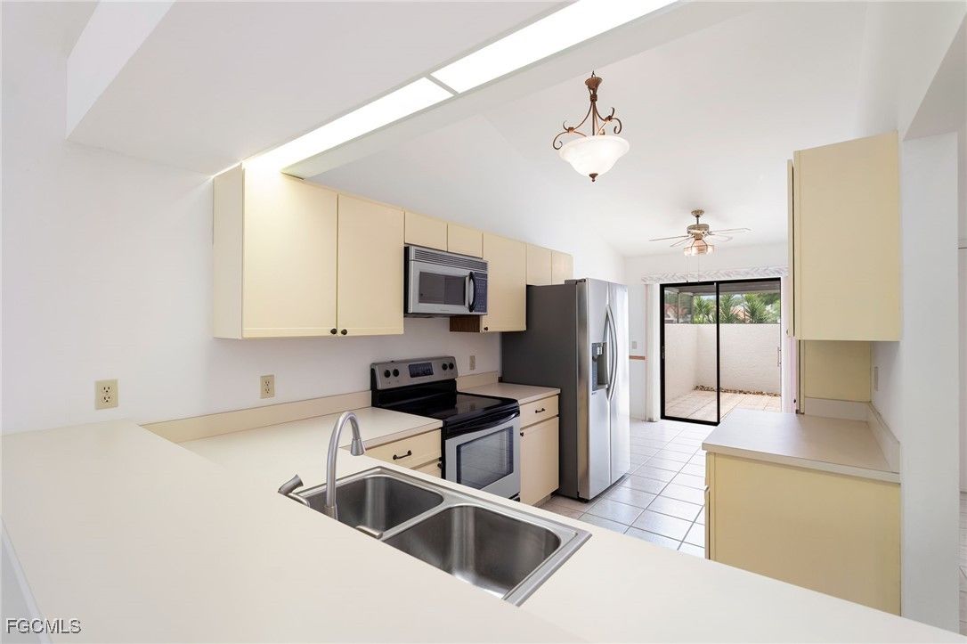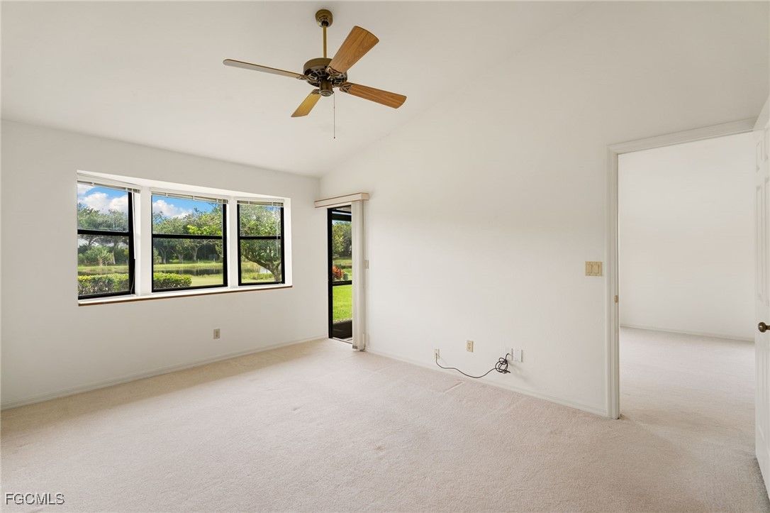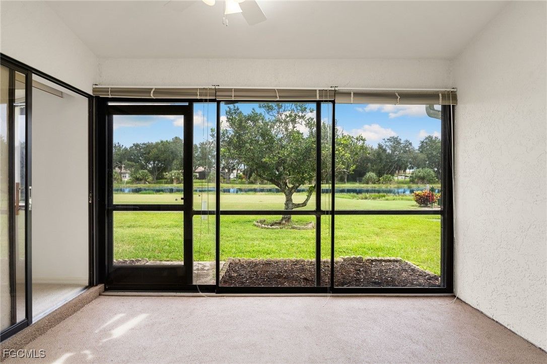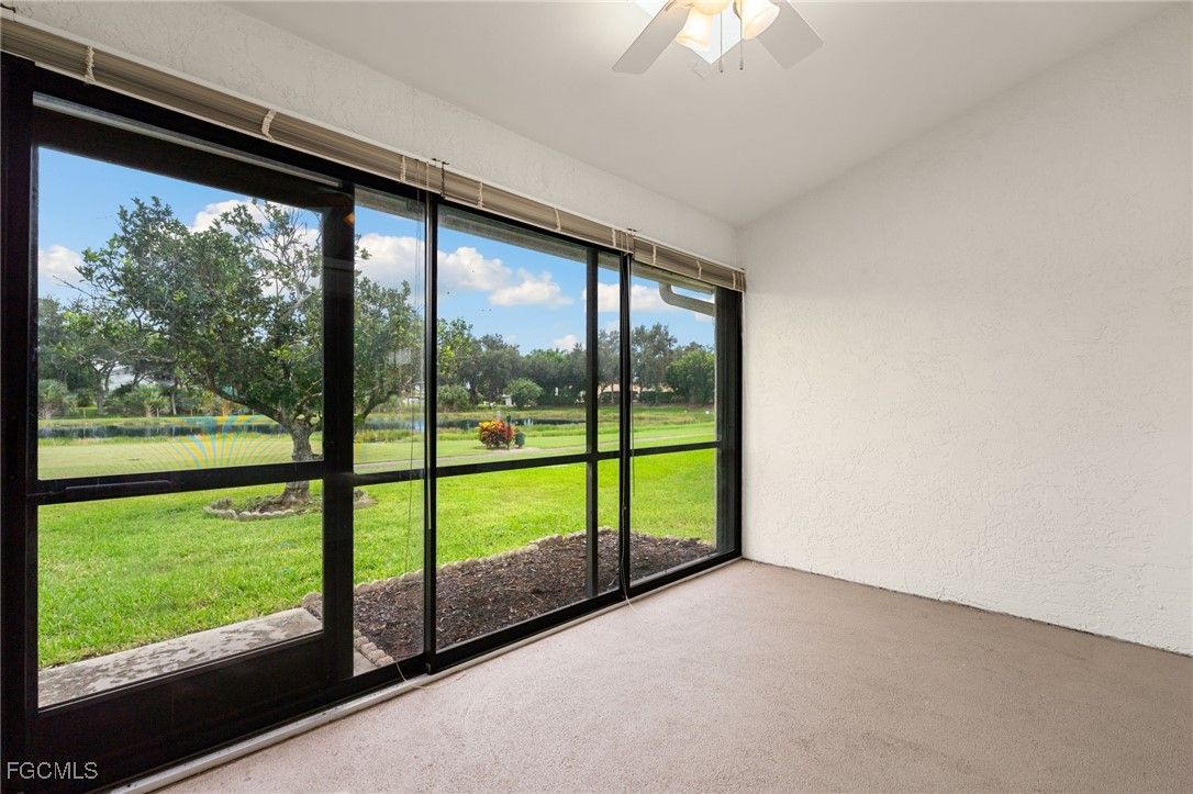 Welcome home to this beautiful 2 bedroom, 2 bath Villa in the highly sought after Cross Creek Golf & Country Club. Centrally located off Daniel’s Parkway between I75 and US41, Cross Creek offers an active lifestyle and an array of amenities including an 18 hole Golf Course, a newly renovated pool and clubhouse, tennis and pickleball, all included at a low HOA fee. Tucked in the heart of the community, away from the hustle and bustle of the main road, Villas II is a subdivision with no age restrictions and has its very own clubhouse and pool. This end unit, single story villa offers plenty of natural light, soaring ceilings, beautiful lake and golf course views and a functional floorpan. This villa has been immaculately kept and is move in ready for those with a traditional taste, or could be easily renovated for anyone with a more contemporary vision. The functional kitchen has a breakfast nook that opens up to a private courtyard. Overlooking the golf course, the dinning and family rooms are extended to an air-conditioned sunroom that can be enjoyed rain or shine. Wake up each morning in your spacious primary ensuite bedroom with tall ceilings, a bay window and dual closets. Both the primary and guest bedrooms have been renovated with beautiful wood vanities and framed mirrors. Come enjoy the best SWFL has to offer in this maintenance free villa, friendly and active community with low HOA fees.