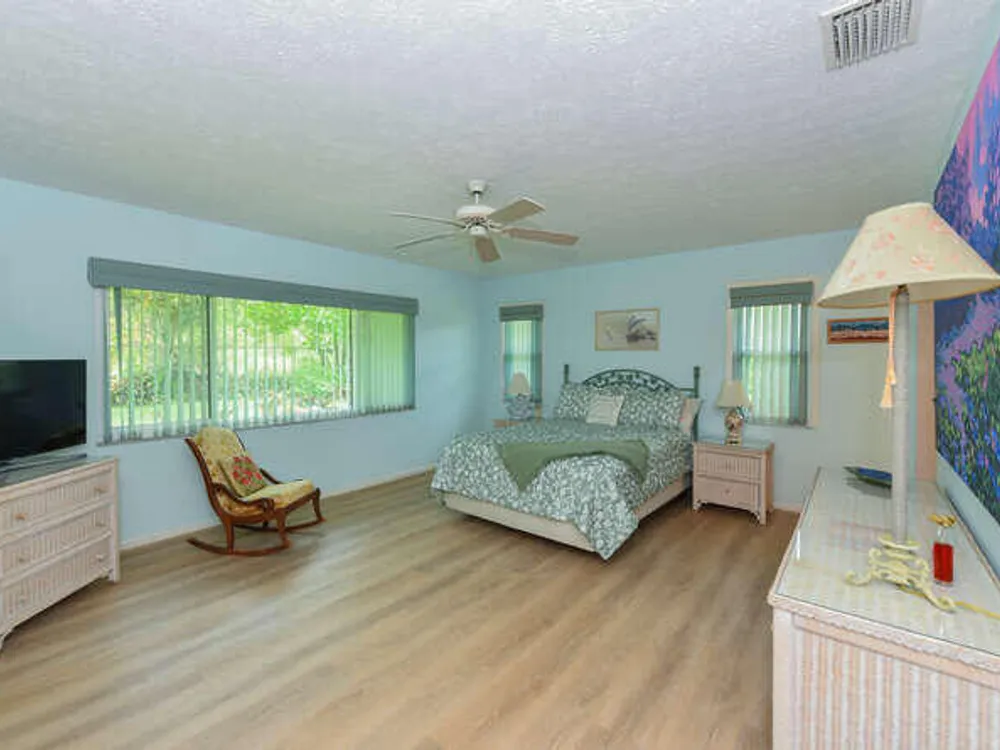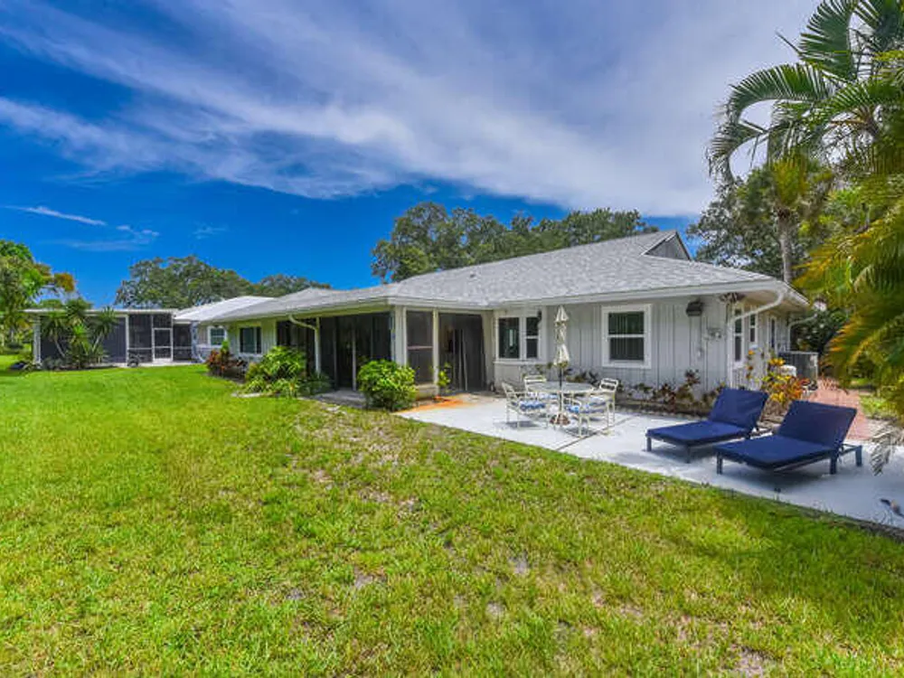 Located in Hobe Sound's best kept secret!! Eaglewood has incredible amenities including UNLIMITED FREE GOLF with no membership fee on a challenging 18 hole golf course, a fabulous heated pool with hot tub, tennis courts, pickleball, bocce court, club house with 19th Hole, chipping and putting green, a fully equipped work shop and a dog park for your furry friend's enjoyment. Golf cart included!! Nothing to do here but enjoy your retirement. Seller will credit at closing the full 2% of purchase price to cover the one time Capital Contribution fee for the buyer. Roof replaced 2022.