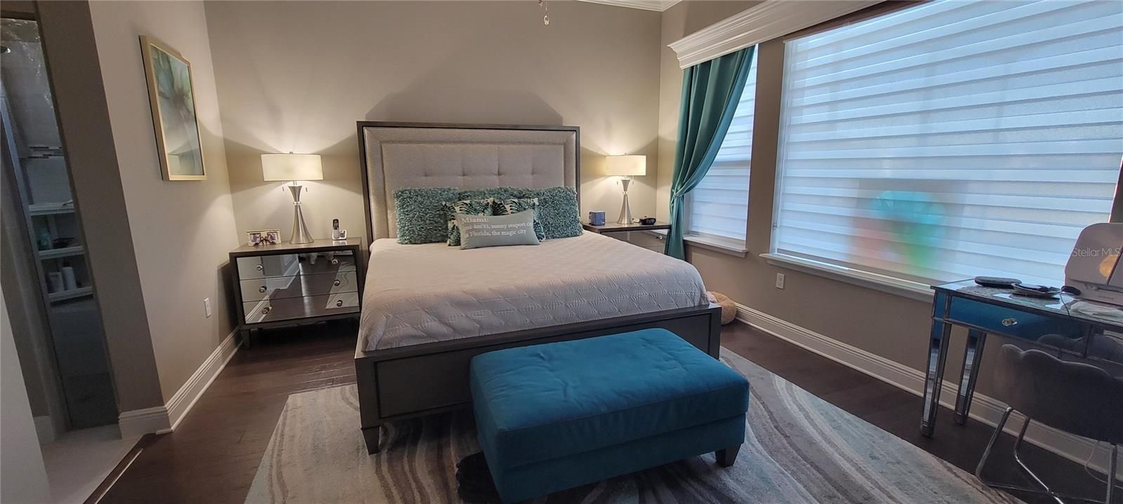- Ceiling Fan(s), Crown Molding, High Ceilings, Open Floorplan, Split Bedrooms, Stone Counters, Thermostat, Walk-In Closet(s), Window Treatments