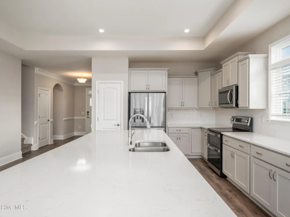 - Gas Log, Solid Surface, Walk-In Closet(s), Pantry, Master Downstairs