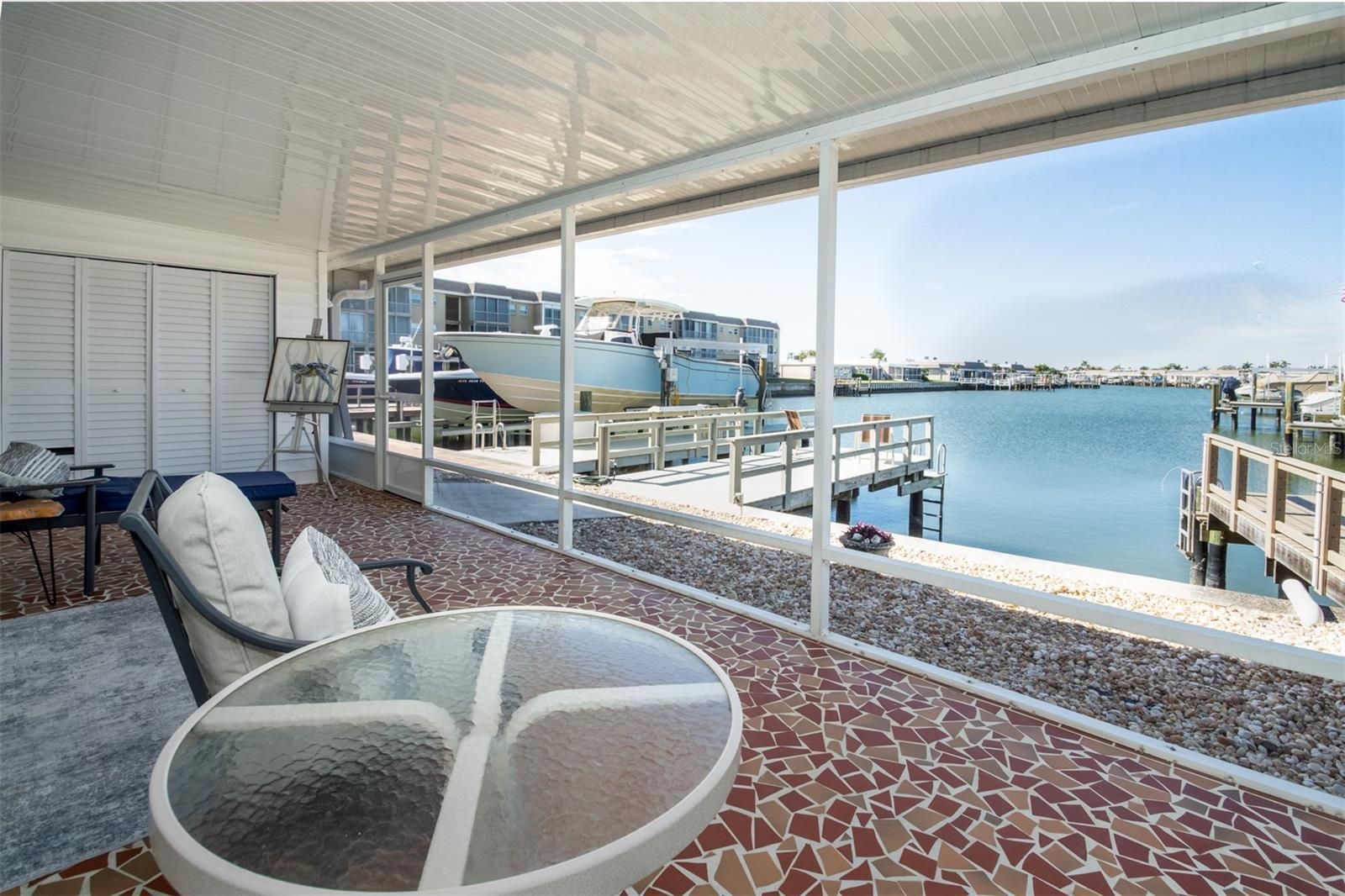 Wake up each day to shimmering water and end every evening with a front-row seat to unforgettable sunsets over Boca Ciega Bay. This beautifully remodeled, villa-style waterfront residence, with new kitchen and baths, captures the essence of Florida coastal living, where tranquil views, gentle breezes, and golden skies become part of your daily rhythm. Spanning approximately 1,400 square feet, this spacious 2-bedroom, 2-bath condominium has been thoughtfully updated with all-new appliances and refreshed lighting throughout, creating a bright, modern ambiance that complements its serene waterfront setting. Step through your doors at dinnertime and watch the sun melt into the bay—an everyday luxury few homes can offer. The private lanai overlooks a generous dock with room for a lift, making it ideal for boating enthusiasts or anyone who appreciates life on the water. An attached single-car garage and an inviting courtyard designed for outdoor living add comfort, privacy, and versatility to this exceptional home. Located within the gated, highly desirable community of Boca Ciega Point, residents enjoy a true resort-style lifestyle. Amenities include a large heated pool, tennis, pickleball, and shuffleboard courts, two clubhouses, a fitness center, putting green, an active social calendar, and direct boating access—perfect for those seeking both relaxation and connection. This is a rare opportunity to secure a remodeled waterfront home in one of Pinellas County’s premier 55+ communities, while still leaving room to add your own personal finishing touches. This is more than a home—it’s an invitation to savor sunsets, embrace the water, and enjoy the very best of Florida’s active coastal lifestyle.