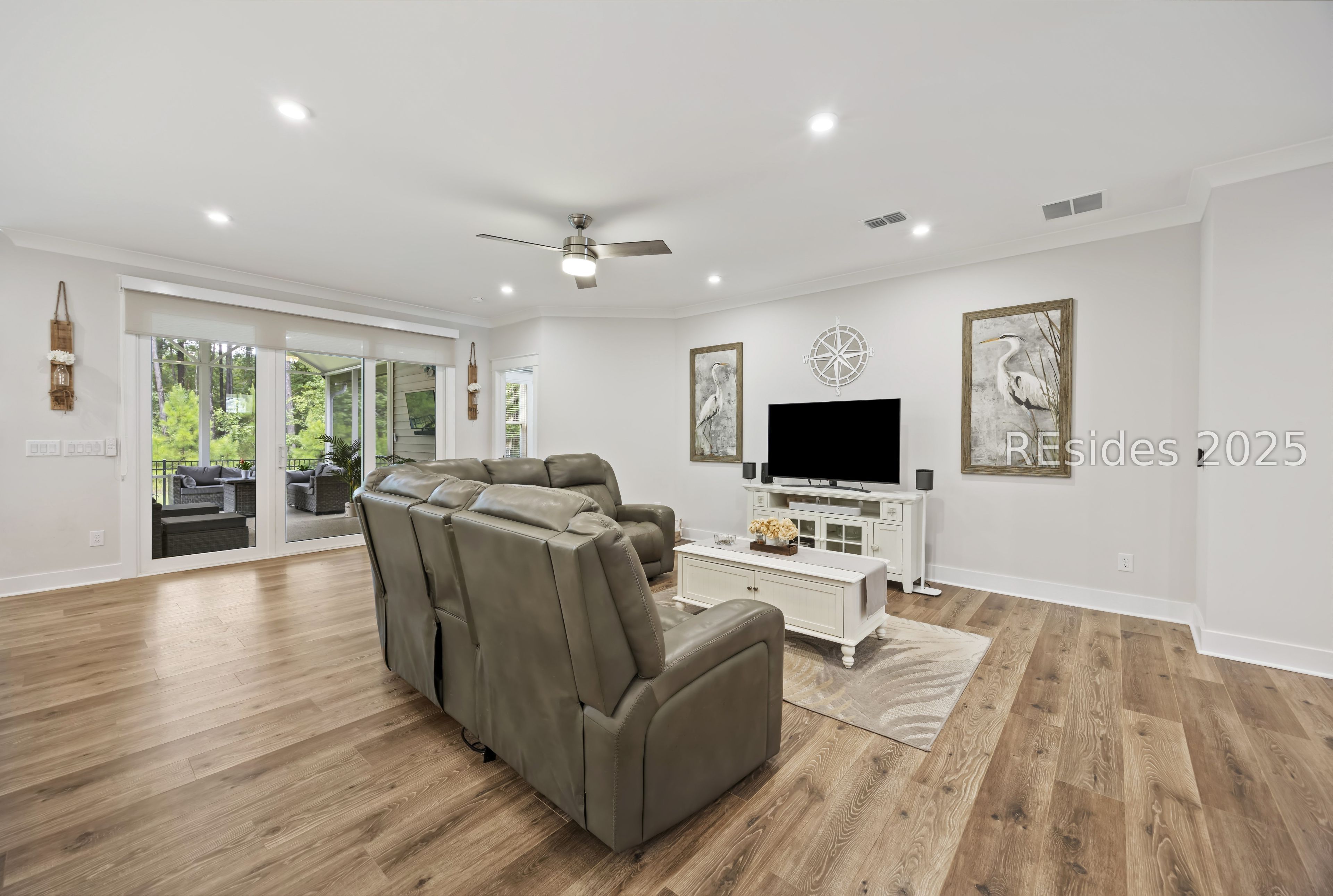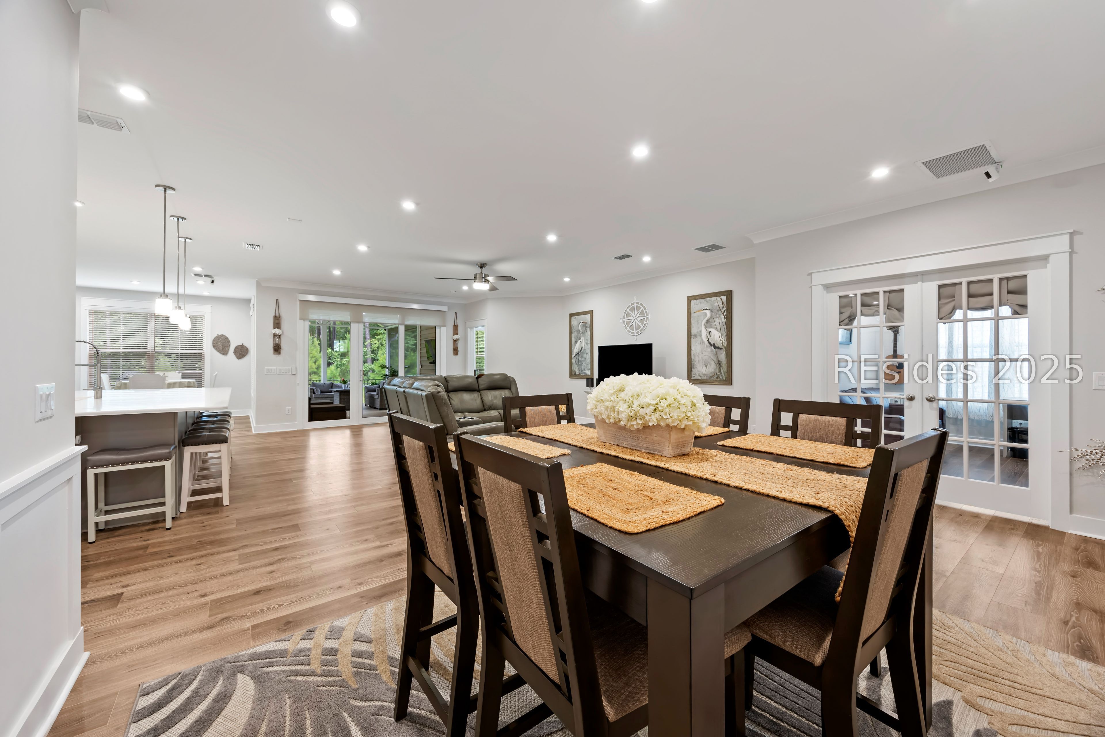 Move right into this meticulously maintained and upgraded Ibiza model with Beaufort County Property Taxes, that offers the perfect blend of comfort in a vibrant, Active Lifestyle Community! Once you step inside this all-one-level residence, you will experience an open and airy floor plan, boasting just over 2,000 sq. ft. of living space, ideal for entertaining or simply enjoying peaceful moments. The impressive gourmet kitchen, features a large island, quartz countertops, dual ovens, and soft-close cabinetry, making every culinary experience a delight. Relax and unwind in the spacious owner's suite, complete with a large walk-in closet and an elegant en-suite bath. The secondary bedroom provides ample space for guests, while the additional 3rd bdrm or flex room, offers versatility for your individual needs or hobbies. Beyond the walls of this stunning home, enjoy the extended screened lanai with a durable epoxy floor, offering a serene natural area with woodland views. Along with the convenience of a fenced-in yard adding to your private outdoor oasis, you will enjoy the oversized 2-car garage with plenty of room for 2 vehicles and extra storage or a golf cart. The low-maintenance aspects of this home, allow for a truly relaxed lifestyle. Four Seasons at Carolina Oaks provides a host of amenities at the expansive clubhouse, including a nicely equipped fitness center, resort-style pool, pickleball & tennis courts, along with walking and biking trails. You will also find social spaces for gatherings and events, a variety of activities and clubs, fostering a strong sense of community. Enjoy the serenity of living in this gated community that is perfectly situated in Bluffton and within easy reach of everyday conveniences such as, championship golf courses and the breathtaking beaches of Hilton Head Island.