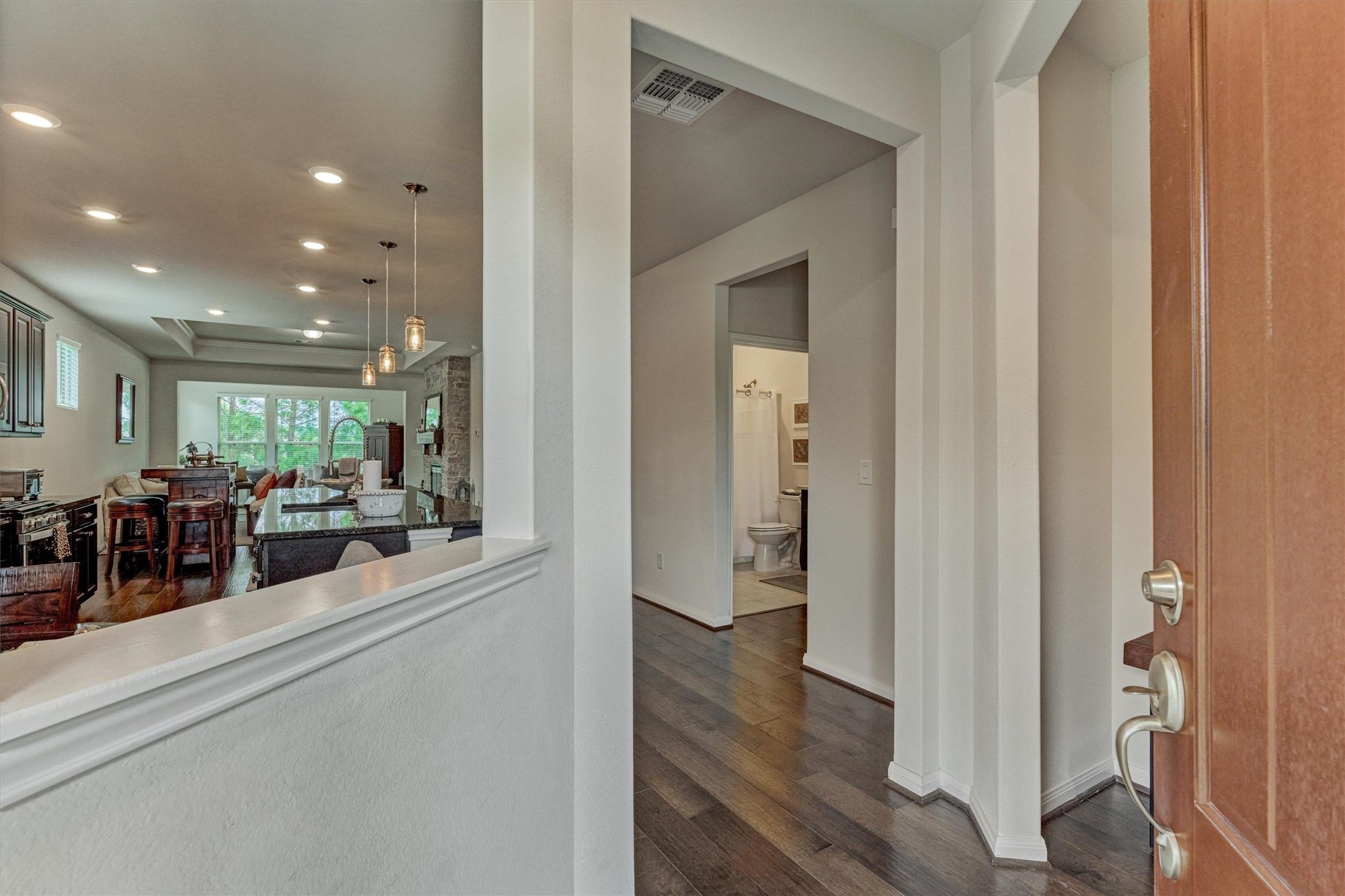 Nestled in the Sought-After 55+ Del Webb Community in The Woodlands, this Charming 1.5-Story Pulte Home Blends Elegance and Comfort. Features Include Hardwood Floors, LED Lighting, Wrought Iron Spindles, Wood Tread Stairs, a Custom Bar w/Iron Gate, Hill Country Stone Fireplace, and Rich Cabinetry. Open-Concept Layout Connects a Spacious Island Kitchen to the Family Room and Sunroom—Ideal for Entertaining. 1st Floor Primary Suite Offers a Spa-Like Bath w/an Oversized Shower, Dual Sinks, and Walk-In Closet. A Second Bedroom (Used as a Study) & Full Bath Complete the Main Level. Upstairs Includes a Private Living Area, Bedroom and Full Bath, Perfect for Guests. Step Outside to a Covered Patio Overlooking Lush Landscaping, a Walking Path & Serene Green Space. Extras Include a Sprinkler System and Whole-Home Generator for Added Peace of Mind. A Truly Unique Home in a Vibrant, Active Adult Community. Clubhouse w/Fitness Center, Indoor/Outdoor Pools, Pickleball, Tennis and Bocce Ball Courts!