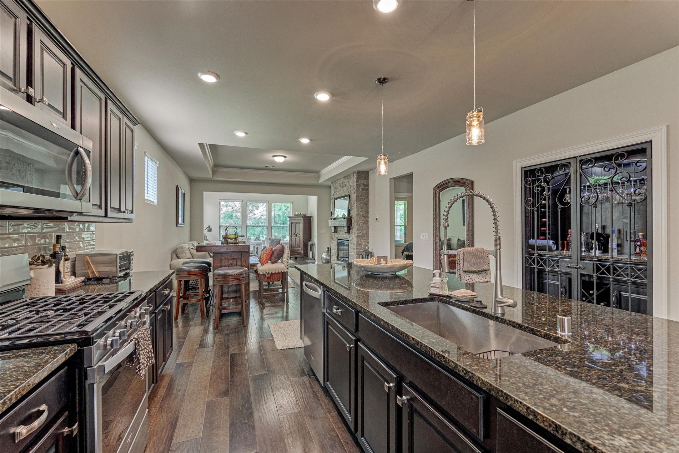- Breakfast Bar, Dry Bar, Entrance Foyer, Granite Counters, High Ceilings, Kitchen Island, Kitchen/Family Room Combo, Window Treatments, Ceiling Fan(s), Programmable Thermostat