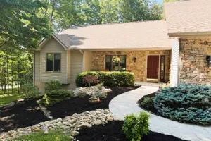 Nestled in a serene neighborhood, this Mennonite Built home offers the perfect blend of charm and comfort. Built with care and attention to detail, this property boasts 2,532 square feet of spacious living space on the main floor and is ideal for both relaxation and entertaining guests. This home has a new HVAC system (6/24) with Electro Static Whole House Air Filter and Humidifier, energy-efficient windows for reduced utility costs, and a whole house fan. The doors and trim throughout the house are a beautiful gunstock wood color. Upon entry the Foyer offers a tile floor and closet. The Living Room is open to the Dining Room and has a beautiful, stacked stone fireplace, a cathedral ceiling, and has four sets of double windows extending across the back wall. The Kitchen has room for two cooks. It comes with Wood Floors, Granite Countertops with an Undermount Sink, a Gas Range, a large Center Island with a Breakfast Bar, and LOTS of Cabinets with LOTS of Pull-Outs. It also includes a pass thru from the Kitchen to the Dining Room. The Breakfast Nook is an inviting space with Wood Floors, Pendant Lighting, and a Bay Window to enjoy your morning coffee. The Sunroom is a great place to relax and enjoy nature with five sets of double windows, two built-in bookcases and an attractive vaulted ceiling with wood planking. There is an exterior door to the large deck for outdoor dining and leisure. The bedrooms are spacious, including a main suite with a Bay Window, and a walk-in closet. The main bathroom has a double sink, easy step in shower, and a window. A second bedroom ensuite for guests includes a double closet, tub/shower combo, and a Transom for additional lighting. The third bedroom has double doors with a double closet and is currently being used as an office. The utility room offers a sink, cabinets above the washer and dryer, and a window. There is also a half bathroom for convenience. The two-car garage is oversized and offers additional storage space. The basement is partially finished and includes 1,520 square feet. There is a finished room that can be used as a dedicated home office or study, a workshop with ample plugs, a half bath, a patio, and an abundance of storage. Leaf Guard Gutter System on exterior. This home includes an additional corner lot with .35 acres for a total of .80 acres. Don't miss the opportunity to make this home yours.