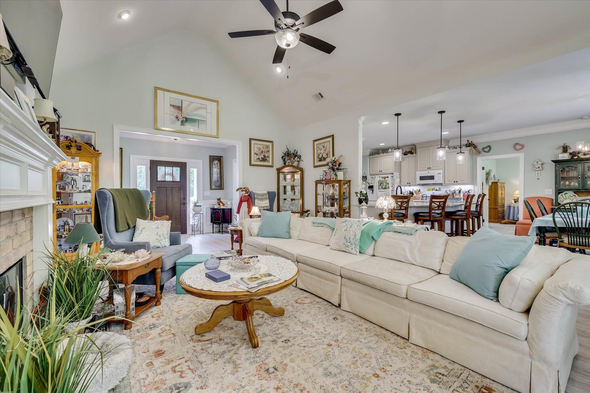 Upgraded Nandina Floor Plan on Expansive Corner Lot - Just Minutes from the Clubhouse! Welcome to 128 Crescent Drive, where thoughtful upgrades meet tasteful design in this beautifully customized Nandina model—situated on one of the largest corner lots in the neighborhood and just minutes from the clubhouse. Inside, you'll find a light, airy ambiance enhanced by soft seafoam blue walls and subtle ocean-inspired décor, creating a calm, coastal feel throughout the home. The open and spacious layout is made even more functional with a unique feature not found in other Nandinas: a partial wall separating the kitchen and living room, offering additional cabinet space without disrupting the home's natural flow. The kitchen has been fully outfitted with a premium pull-out system in every cabinet—ideal for those who value organization and convenience. Custom built-in shelving adds charm and utility, giving the home a warm, personalized touch. Step out onto the screened patio with premium epoxy flooring—perfect for relaxing or entertaining. That same epoxy treatment continues into the oversized garage, which has been transformed into a true man-cave paradise with a giant custom tool wall, built-in work desk, and fresh paint that makes it feel like an extension of the living space. Every detail of this home has been carefully considered, from the elegant finishes to the functional upgrades and beachy, tranquil atmosphere. Don't miss your chance to own this rare gem in a prime location!