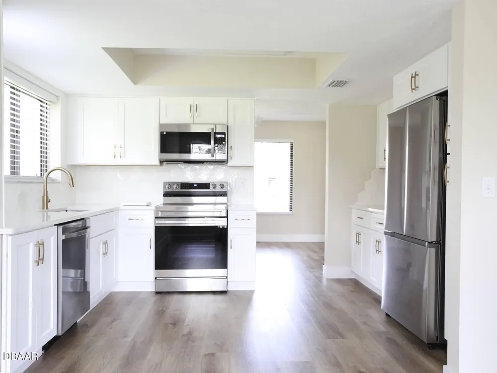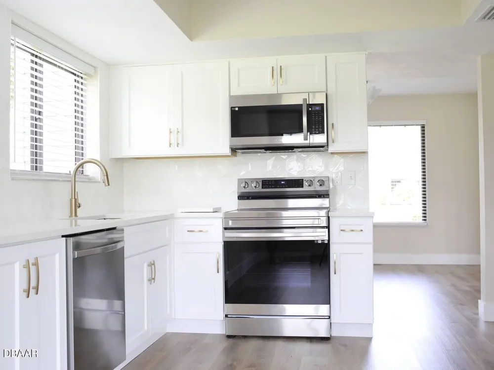 COMPLETELY RENOVATED Gated Golf Cmty - 3BR/2BA END UNIT | 128-B Golden Eye Drive, Daytona Beach, FL | Only $239,900! Amazingly updated and move-in ready, this 3-bedroom, 2-bath end-unit condo offers stylish, low-maintenance living in a peaceful Daytona Beach community. Priced for a quick sale at $239,900, this end unit boasts a bright, open layout with a large private enclosed lanai and outdoor patio, perfect for relaxing or entertaining. This unit condo is one of Daytona Beach's most desirable gated golf communities offering a resort-style living just minutes from the beach! Don't miss your chance to view this pristine home completely renovated from top to bottom with high-end finishes, including: - Brand-new luxury flooring & meticulously painted - All-new cabinets, quartz countertops, & hand-painted tile backsplash - Brand New Full suite of Samsung stainless steel appliances - Modern bathrooms with updated vanities, mirrors, & and modern lighting throughout. A Must-See!