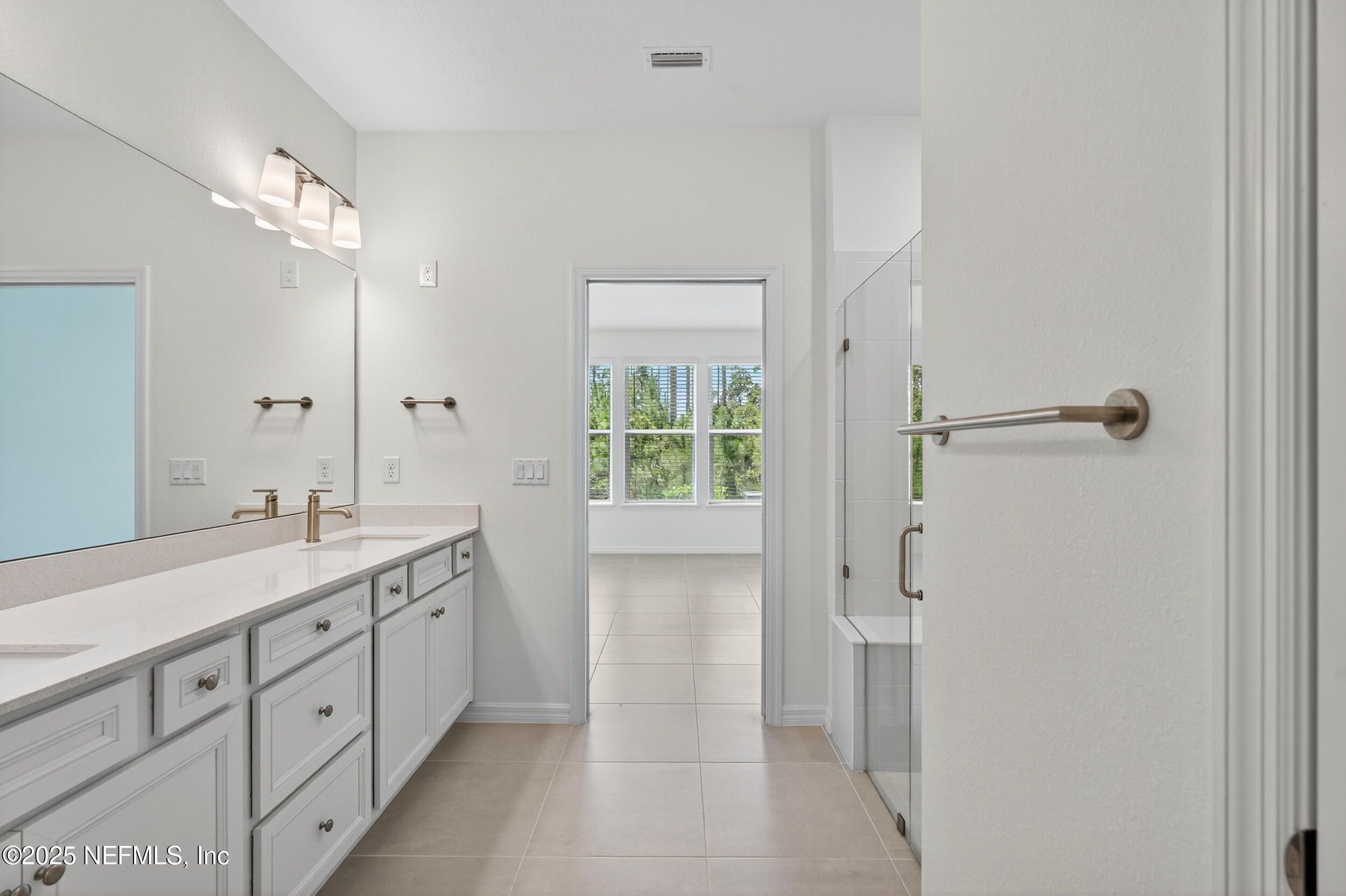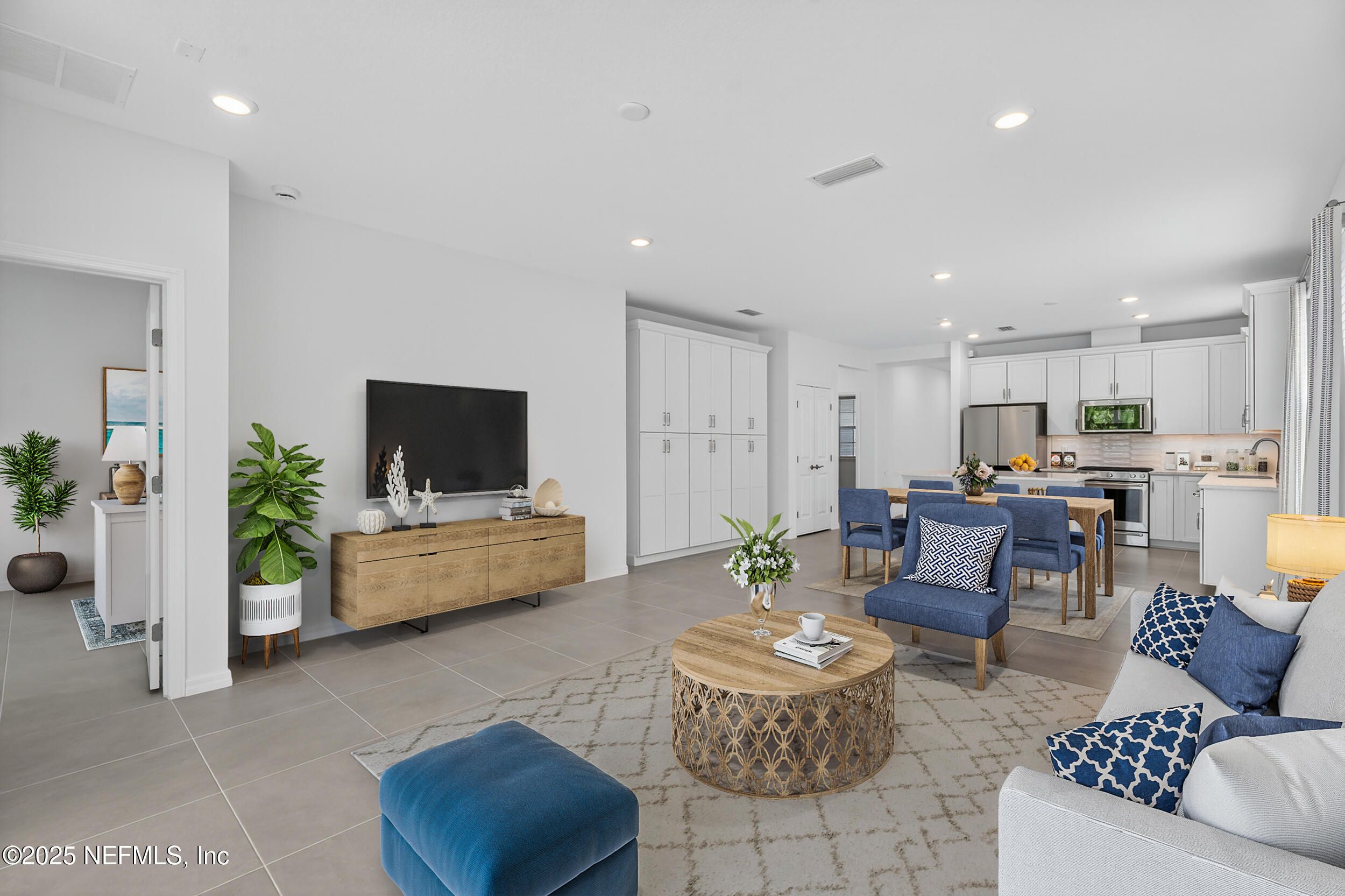 Welcome to gated 55+ Del Webb Nocatee! This impeccably maintained, like-new Ellenwood floor plan villa has 2 bedrooms, 2 bathrooms, plus an office/flex room. $23,000+ in post-closing upgrades include a custom kitchen island, custom dining area & laundry room cabinetry for exceptional storage, gorgeous Quartz kitchen counters and under cabinet lighting. Additional highlights include single level, open-concept living; tile floors throughout (NO CARPET), white kitchen cabinets, upgraded SS appliances, gas range, gorgeous tile backsplash, 2 car garage with an epoxy floor, water softener, paver driveway & lanai, upgraded stone elevation and a lanai with a peaceful preserve view. Residents enjoy resort style amenities at The Canopy Club including the Cypress Cafe restaurant & bar and all the Nocatee amenities. Located a few minutes away from Nocatee Town Center's grocery stores, restaurants & shops and 15+ minutes from Ponte Vedra Beach shopping, dining, clubs & the ocean!