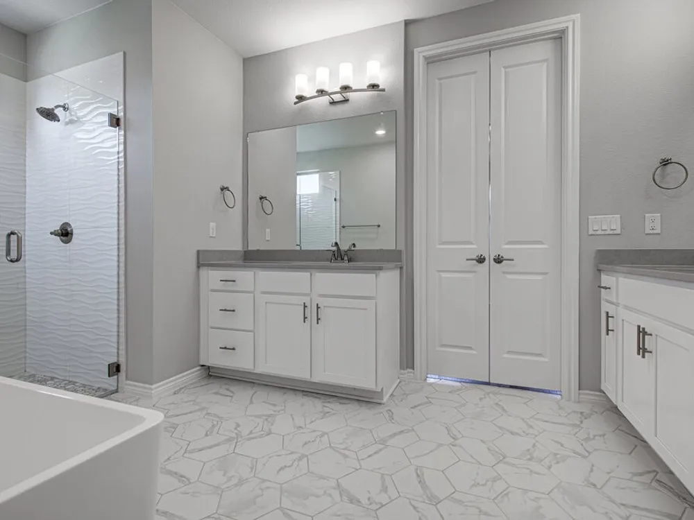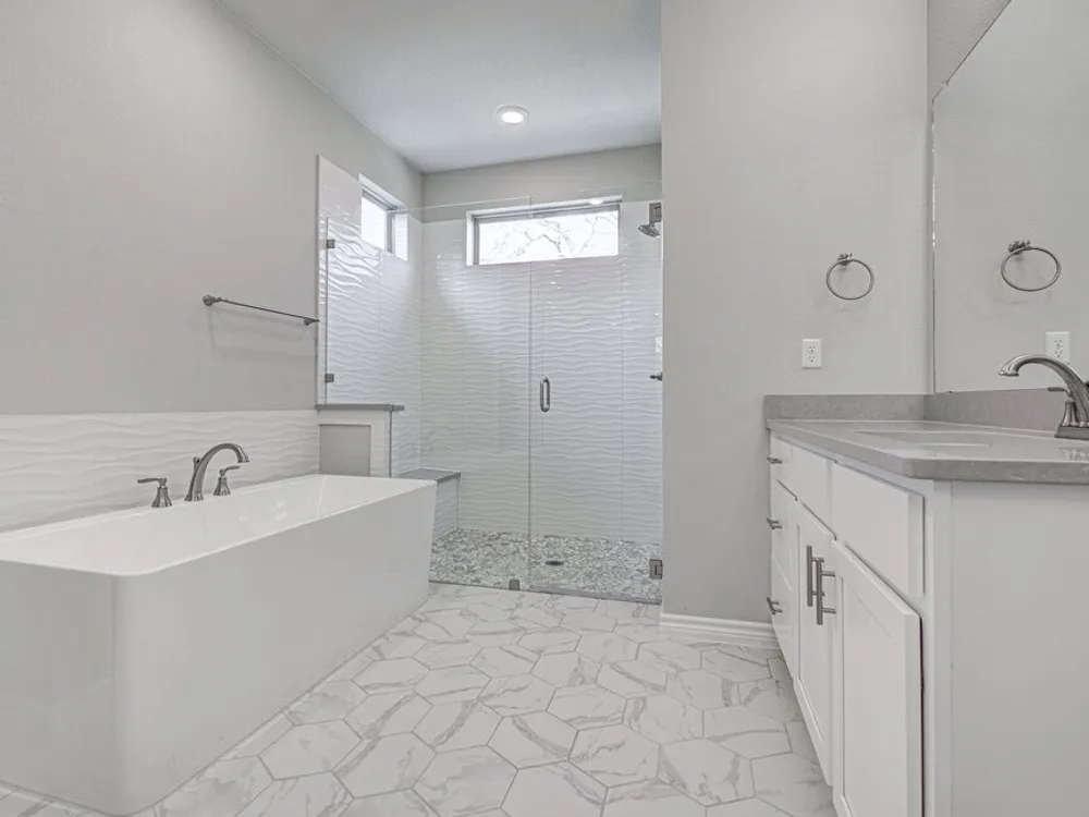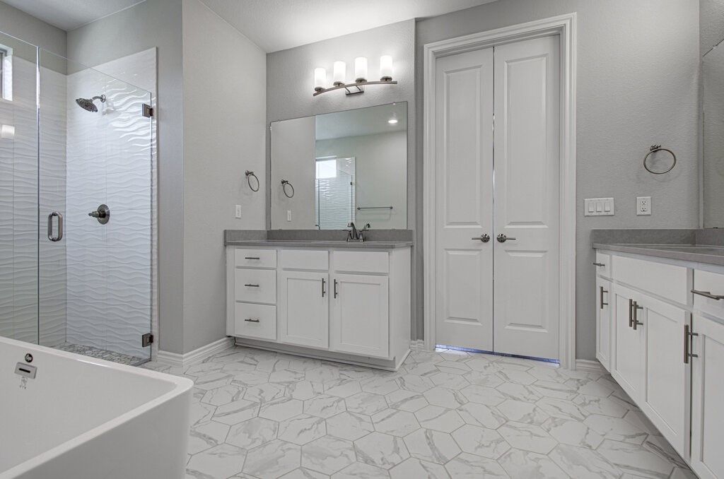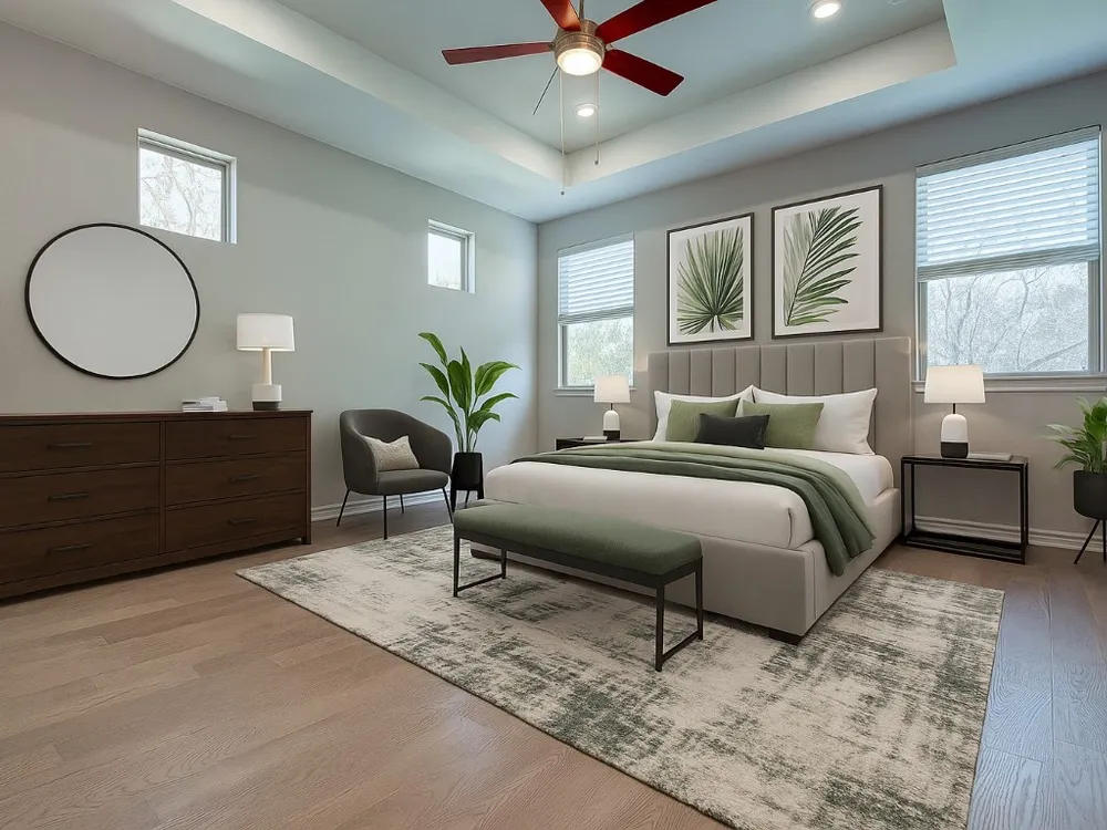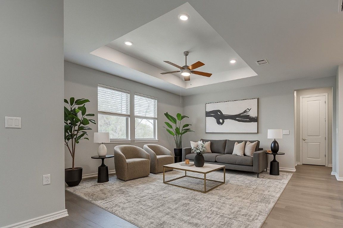 - Tray Ceiling(s), Ceiling Fan(s), French Door(s)/Atrium Door(s), Kitchen Island, Main Level Primary, NoInteriorSteps, Open Floorplan, Pantry, Quartz Countertops, Recessed Lighting, Soaking Tub, Smart Thermostat, Walk-In Closet(s)