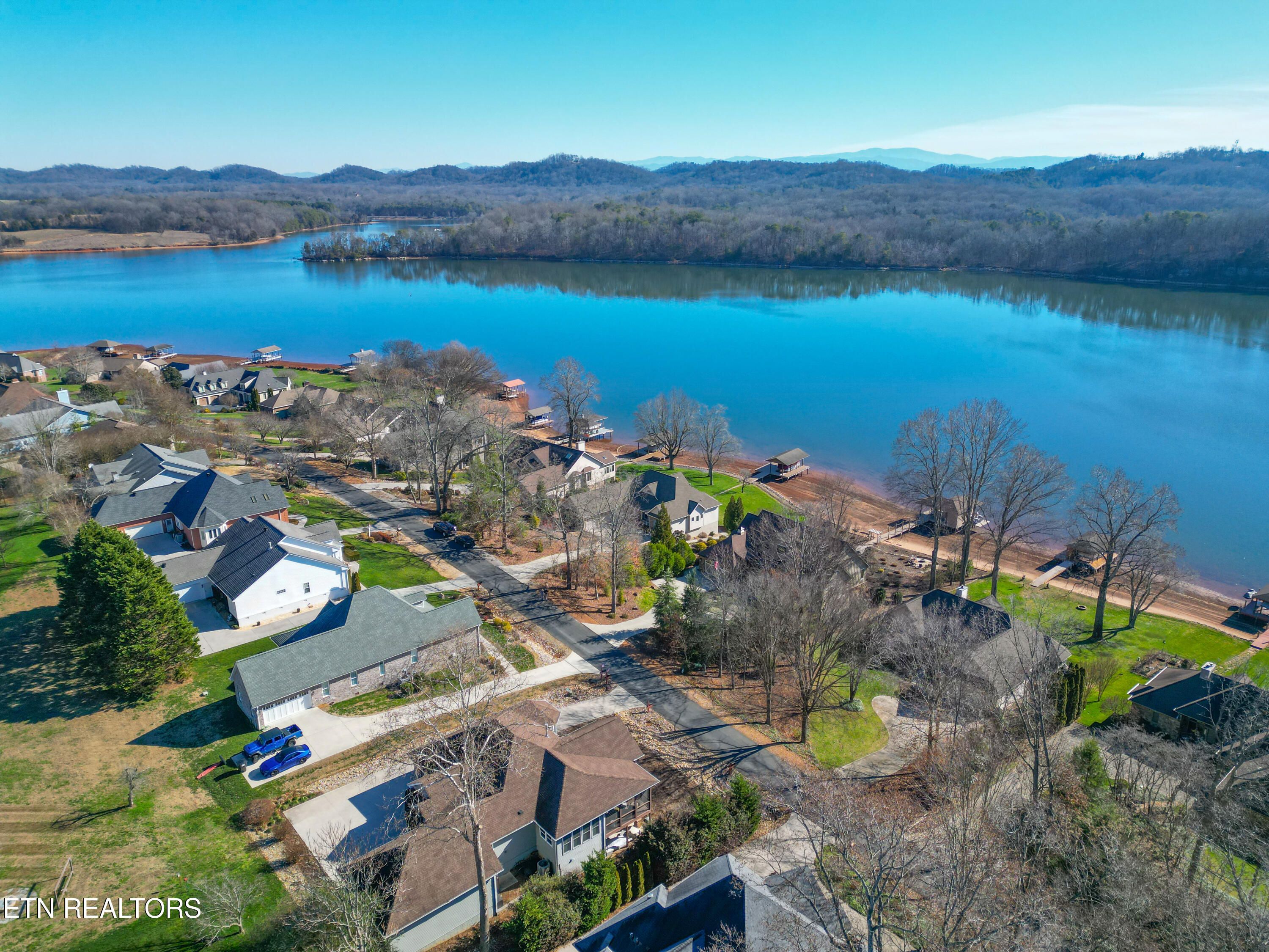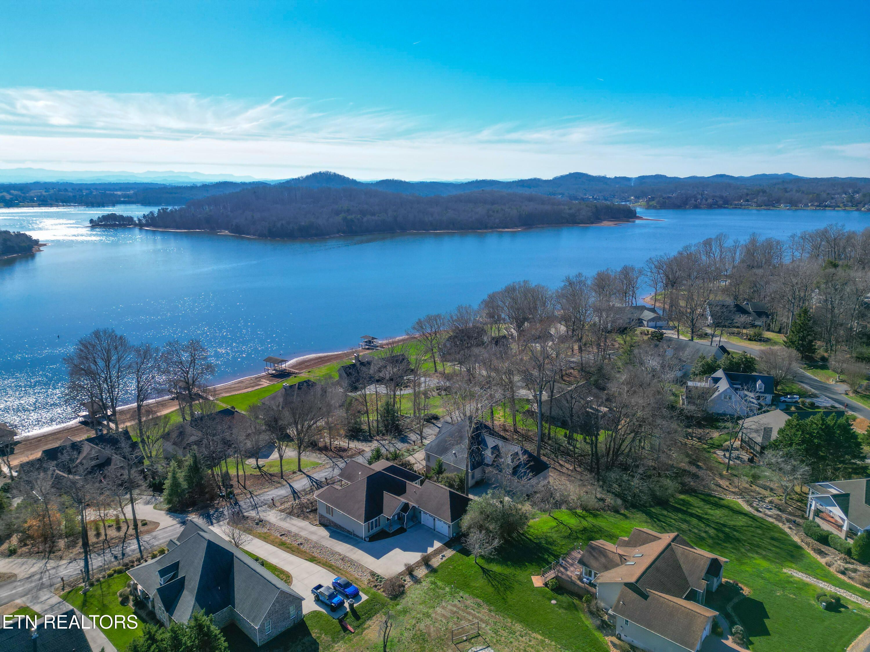 Location, Location, and more! One of the most beautiful views in the entire Tellico Village Lake & Golfing Community nestled within the highly desired Toqua neighborhood. Custom built by BR2 Builders, this incredible home delivers captivating lake and mountain views. A walker's treasure with gorgeous, wooded walking paths right outside your front door, especially great for walking in shade during the summer heat. Take your golf cart directly to the course or enjoy a beautiful walk over to the clubhouse for the friendliest neighborhood restaurant & bar with a full menu, including the best burgers in town. Specifically designed for aging in place and low maintenance, this home has wide open doorways, hallways, showers and an open-concept floor plan that makes everyday living effortless. The kitchen features custom cabinetry in warm natural tones, stainless steel appliances, and gorgeous, leathered granite countertops. The great room centers around a stone fireplace and the 65'' Samsung TV remains with the home, perfectly positioned for relaxed evenings. From both the living and dining rooms, doors open to a spacious, covered deck and a separate screened porch, extending your living space outdoors. A wide staircase leads to the lower level, where an inviting great room awaits with phenomenal views, perfect for relaxing or entertaining. This level includes 2 bedrooms, a full bath, and a brand new rec room further enhancing the home's versatility and abundant storage space. Step outside to the large, covered lower patio, ideal for outdoor seating, a fire pit, or grilling while taking in the peaceful surroundings. The home offers spacious parking and sits adjacent to a large common area at the rear, offering an added sense of openness and privacy. An oversized 2.5-car garage provides ample room for vehicles and your golf cart, kayaks, hiking gear, bicycles.... This beautifully crafted lake-view home blends thoughtful design, quality construction, and unforgettable scenery into a property that truly stands out. This home was designed with a purpose ! A rare opportunity to find carefree lake living with space, style, and comfort in every single detail!