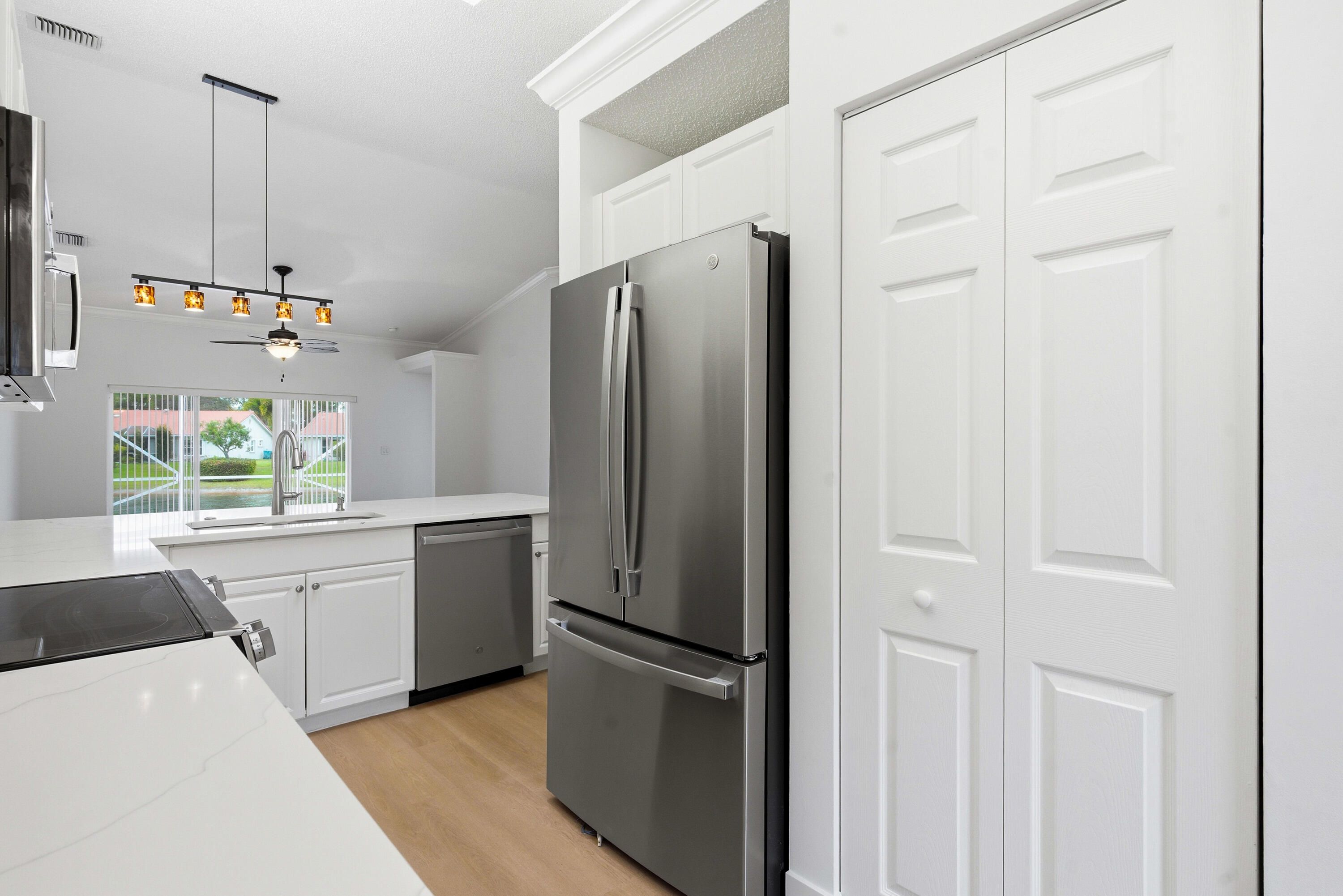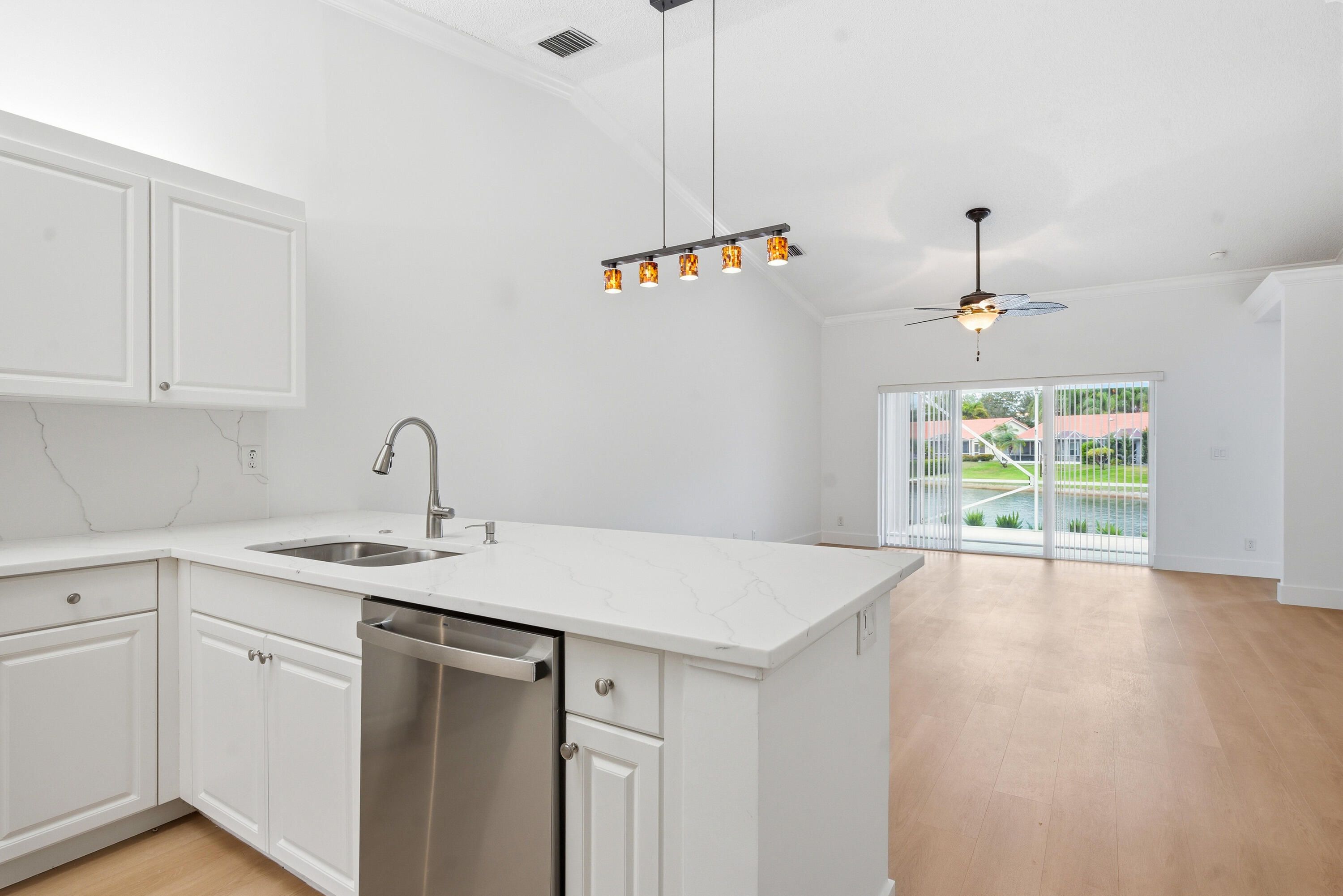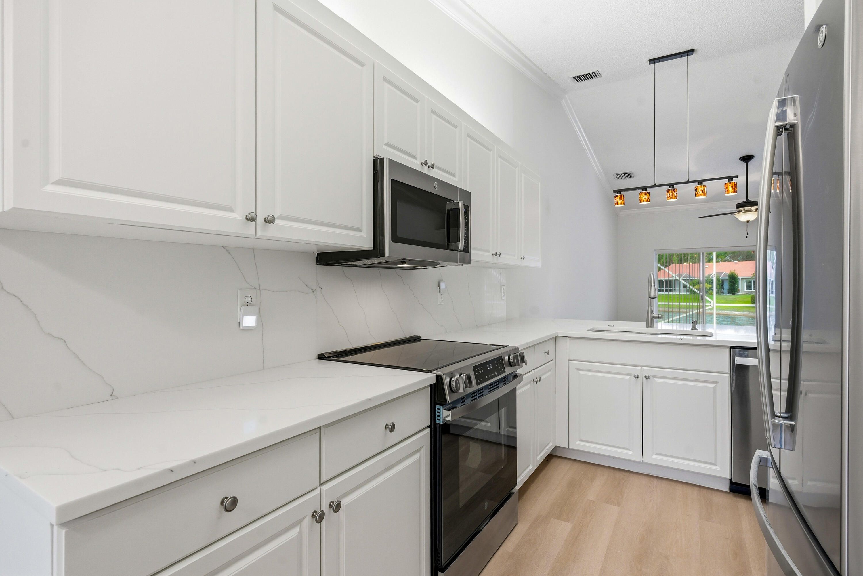 This beautifully updated home blends modern style, peace of mind & a picturesque waterfront setting. Recent improvements begin with a brand‑new roof offering long‑term durability. Inside, the home feels fresh & inviting with new luxury vinyl plank flooring, updated lighting & fresh interior paint throughout. The renovated kitchen shines with new quartz countertops, a stylish backsplash & all‑new appliance, creating a clean, contemporary space perfect for cooking & gathering. Step outside to an extended patio overlooking a wide, tranquil lake view, a peaceful backdrop for morning coffee, evening relaxation, or entertaining. Updated landscaping enhances curb appeal & completes the home's polished look. With its extensive upgrades, this home is a great deal.