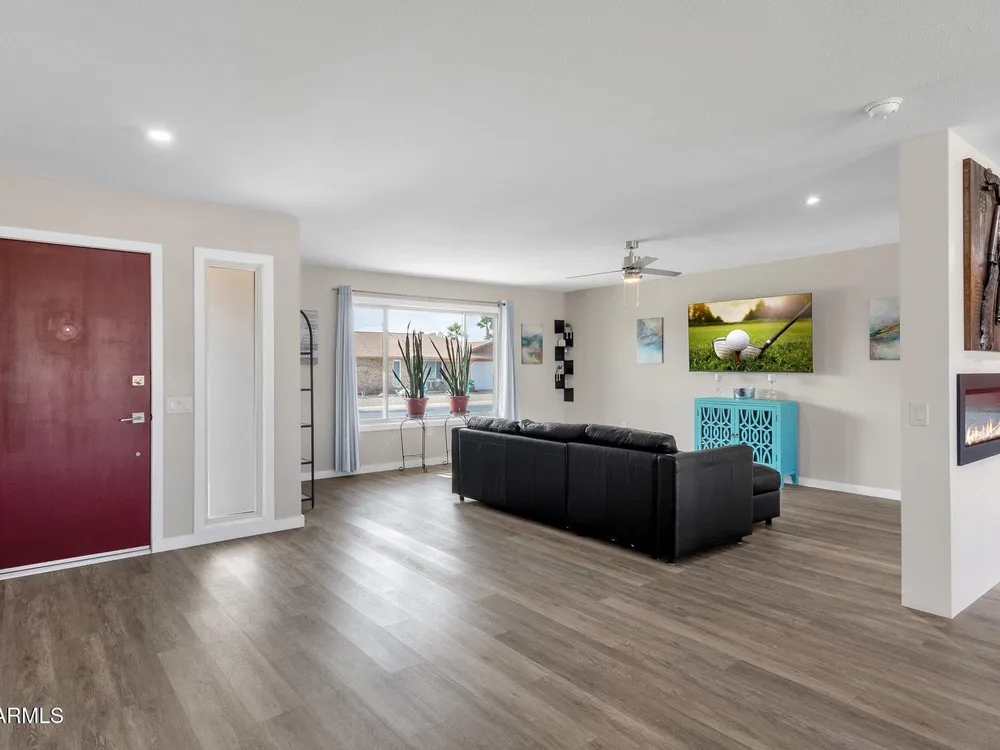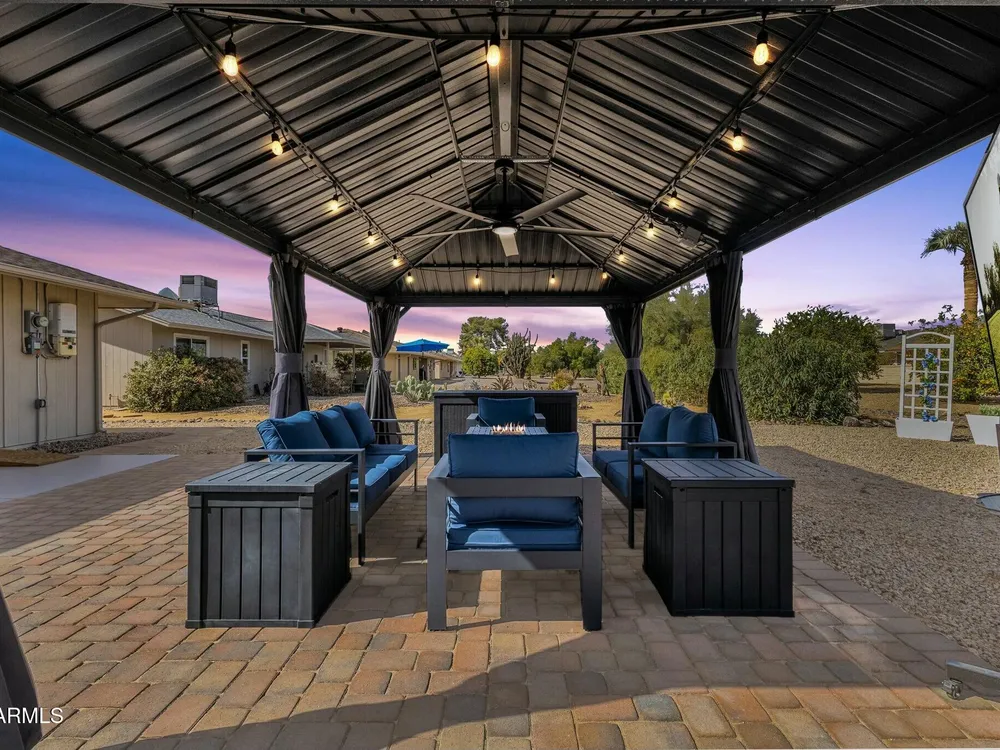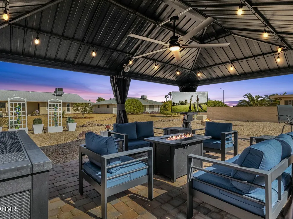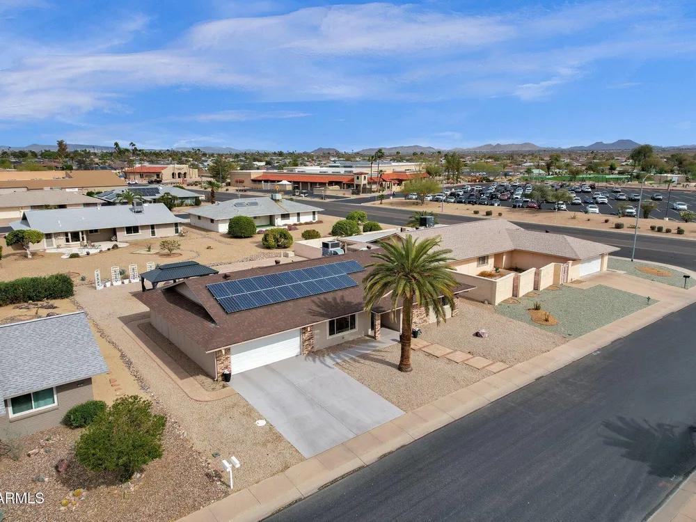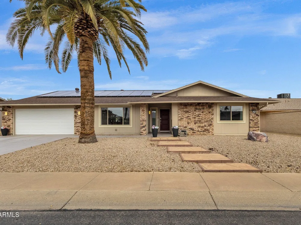Owned solar keeps electric bills low in this thoughtfully remodeled Sun City West home. The spacious kitchen flows to an open concept great room and out to the backyard for effortless indoor-outdoor living. A new 20'x30' paver patio with a 12'x20' pergola invites you to relax and enjoy Arizona sunsets. Inside, two en-suite bedrooms offer privacy and comfort, with the second bath also opening to the hall for guests. An oversized laundry room provides space for a home office, hobbies, or extra storage. Built-in cabinets in the garage add even more organized storage. Located just across from Beardsley Recreation Center for easy access to community amenities.