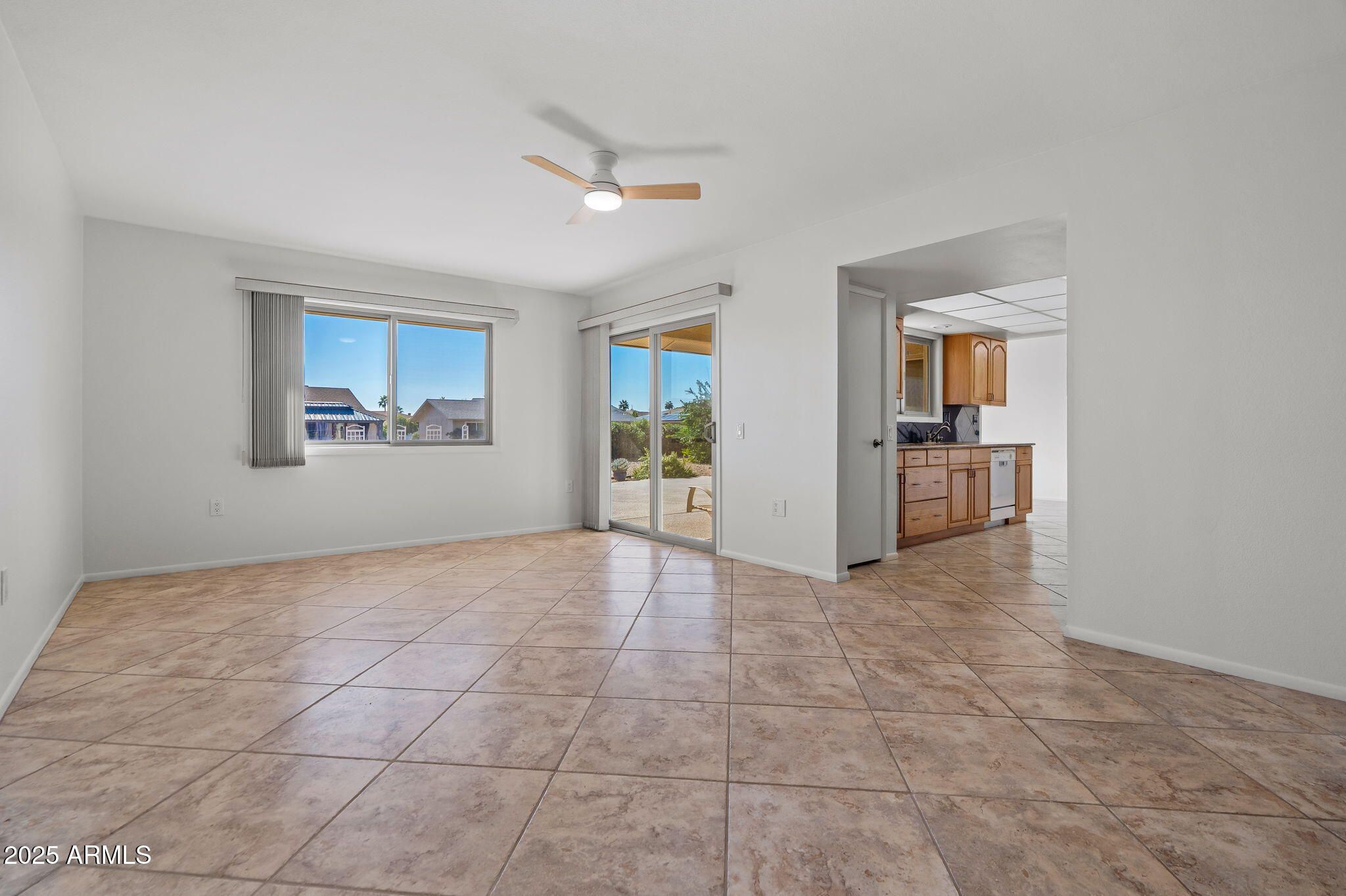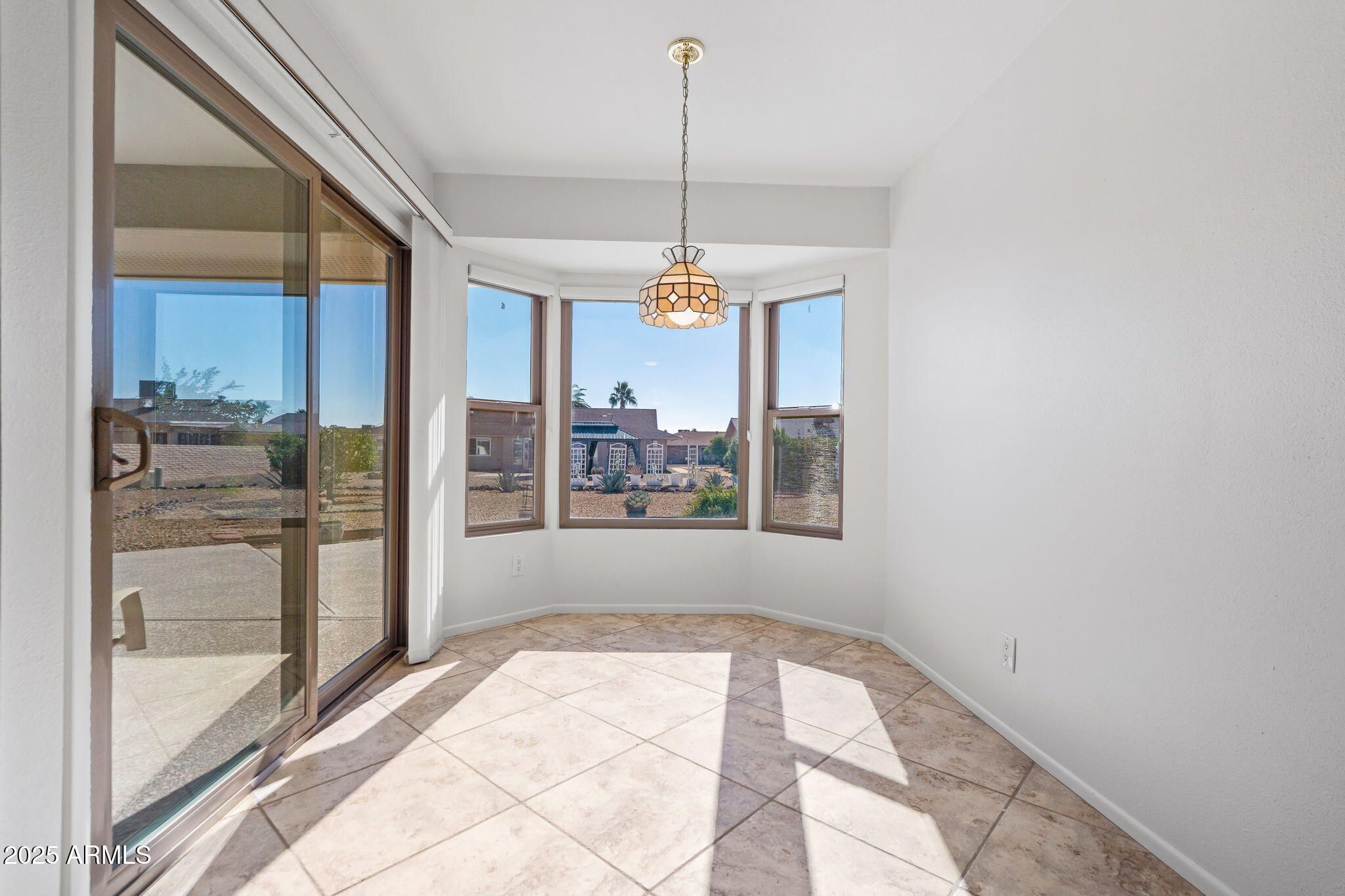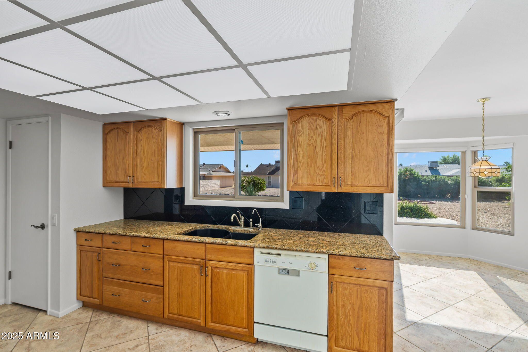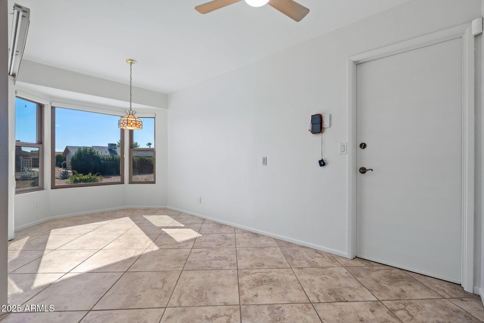 Charming Sun City West home near the Beardsley Recreation Center with easy access to Loop 303. Interior features include plush carpet, tile flooring, fresh interior paint, and dual-pane windows throughout. The remodeled kitchen offers oak cabinets, white appliances, granite countertops, two pantries, and a breakfast room with a bay window. Enjoy views of your large lot and covered patio through sliding glass doors from the breakfast room or the tiled family room. Bedrooms include plush carpet and new ceiling fans, while both bathrooms feature updated oak cabinets, granite counters, and newer lighting. A spacious, climate-controlled laundry room features built-in cabinets and a utility sink, and the two-car garage includes additional storage cabinetry. This move-in-ready home is truly set for you to enjoy. Sun City West offers an outstanding array of amenities for an active, resort-style lifestyle. Residents enjoy multiple recreation centers with state-of-the-art fitness facilities, indoor and outdoor pools, walking tracks, and organized classes. The community features seven golf courses, tennis and pickleball courts, bowling, bocce, and numerous clubs spanning arts, crafts, technology, music, and social interests. A full-service library, dog parks, and scenic greenbelts add to the appeal, while the R.H. Johnson and Beardsley Recreation Centers offer woodworking and metal shops, lap pools, and performance spaces. With medical services, shopping, restaurants, and year-round community events close by, Sun City West delivers convenience, connection, and recreation at every turn.
