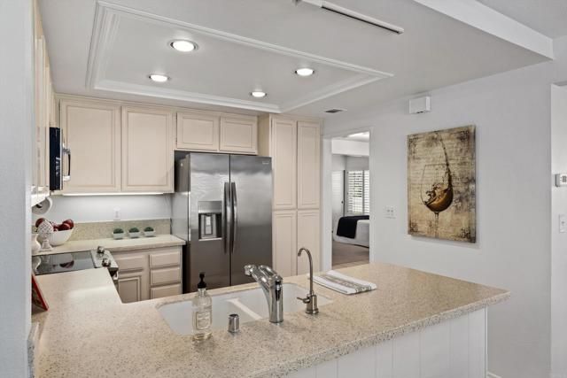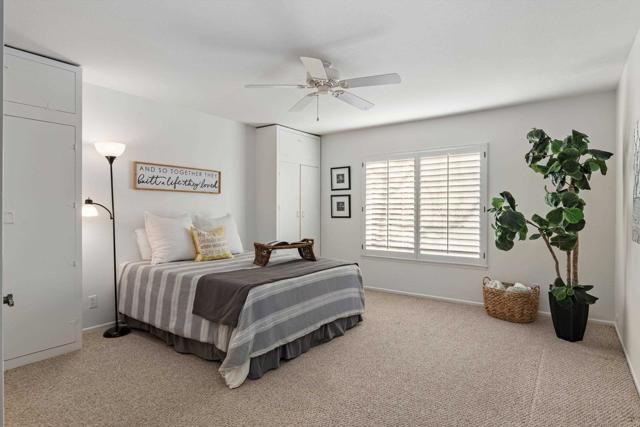 Experience the best of Southern California living in this beautifully maintained twinhome, perfectly situated on the 8th tee of the Links at Lakehouse executive course in the beautiful community of Country Greens in Lake San Marcos. Offering 2 bedrooms, 2 full baths, and 1,307 square feet of comfortable living space on a 4,500 square foot lot, this home combines resort-style amenities with everyday convenience. Step through the charming, landscaped entryway—complete with lemon, apricot and peach trees—and into a bright, inviting interior. Plantation shutters throughout add timeless elegance, while the cozy, brick fireplace creates a warm focal point for the living area. The freshly painted interior enhances the home’s airy feel, and the spacious primary suite features a huge en-suite bath and generous closet space. A convenient in-home washer and dryer make daily living effortless. Enjoy breathtaking views of the golf course right from your backyard—an ideal setting for morning coffee or evening relaxation. Residents of Country Greens enjoy access to a wealth of amenities, including a community pool, basketball court, tennis court, and clubhouse. The HOA includes the Lake and Lodge benefits so homeowners also receive access to pickleball and tennis courts, two additional pools, discounts on boat rentals and Lakehouse hotel stays, a billiards room, and more. With its stunning golf course views, resort-style amenities, and prime location near shopping, dining, and recreation, this little gem offers the perfect blend of comfort, style, and lifestyle. Welcome home to Lake San Marcos living at its finest!