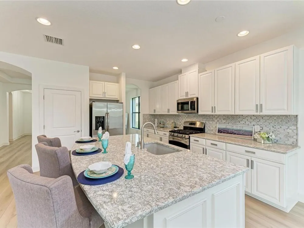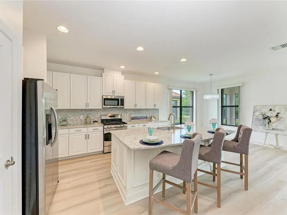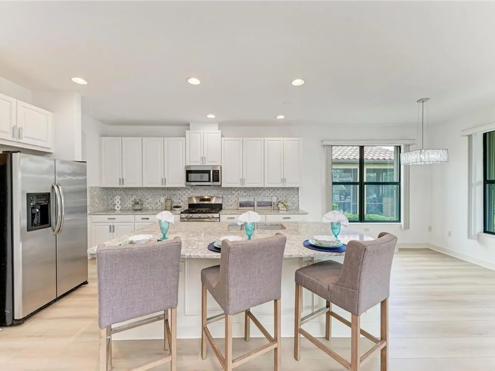Seller to credit $10,000 towards buyer's rate buydown or closing costs. Live the Florida lifestyle you’ve been dreaming of in this beautifully upgraded 2-bedroom, 2.5-bath home with a dedicated study/office and an attached 2-car garage. Tucked inside the exclusive, gated Esplanade at Lakewood Ranch, this home offers all the perks of resort-style living—luxurious amenities, upscale dining, and private community events—with no golf membership required. No detail has been overlooked—with over $32,000 of upgrades and additions, this home showcases a gourmet kitchen with a center island, Cambria quartz countertops, custom-tiled backsplash, refaced cabinetry with designer hardware, stainless steel appliances, a stylish new sink, upgraded lighting, fresh interior paint, and new Luxury Vinyl Plank flooring that flows throughout the main living spaces and office. The open-concept floorplan highlights a serene Owner’s suite with bay windows framing tranquil preserve views, an en-suite bath featuring dual vanities, a walk-in shower, private water closet, and large walk-in closet. A private guest suite is located on the opposite side of the home and includes a full bath with granite vanity and designer tile tub/shower combo. Additional highlights include Hurricane Accordion Shutters, (attached and just easy to slide), a large laundry room with ample counter space and storage, a chic guest powder room, and an attached garage with epoxy flooring. Step outside to your private, screened lanai and enjoy peaceful sunset views and the beauty of surrounding nature. Living in Esplanade of Lakewood Ranch means access to this maintenance-free, premier gated, resort-style community packed with top-tier amenities including: Tennis and pickleball courts, Resort pool and spa, Second pool area, State-of-the-art fitness center with personal training, Fine and casual dining options, including a formal restaurant and Tiki bar, Full-service spa and salon, Social activities, walking trails, and more. Just minutes from top-rated schools including Lakewood Ranch Preparatory Academy, world-class golf courses, dining, shopping, University Town Center, & a short drive to the white-sand beaches, downtown Sarasota, & I-75 for quick access to Tampa, St. Petersburg, & beyond. This gated, maintenance-free, amenity-rich community offers a rare opportunity to enjoy luxury living in the nation’s #1 top master-planned community. Whether you’re seeking refined design, modern upgrades, or the perfect Florida lifestyle, 12826 Del Corso Loop truly has it all.
