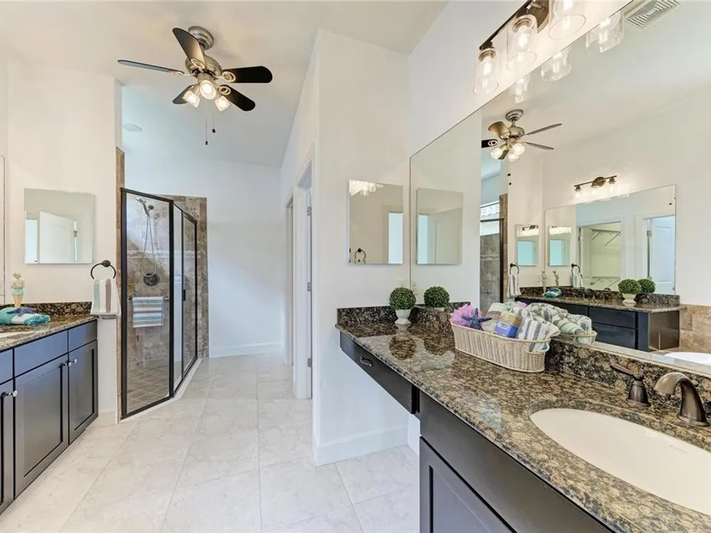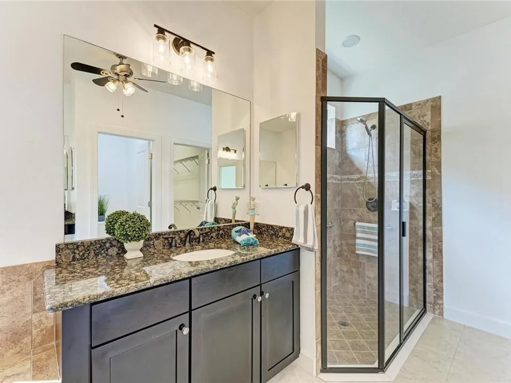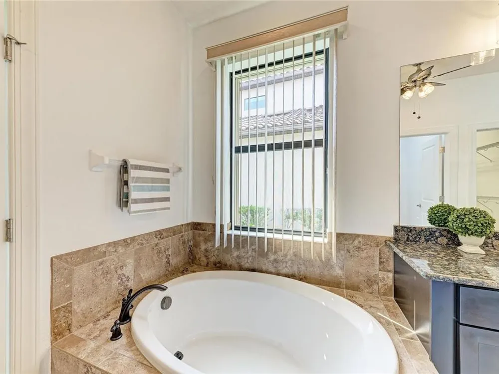 - Ceiling Fan(s), Main Level Primary, Stone Counters, Thermostat, Tray Ceiling(s), Walk-In Closet(s), Window Treatments