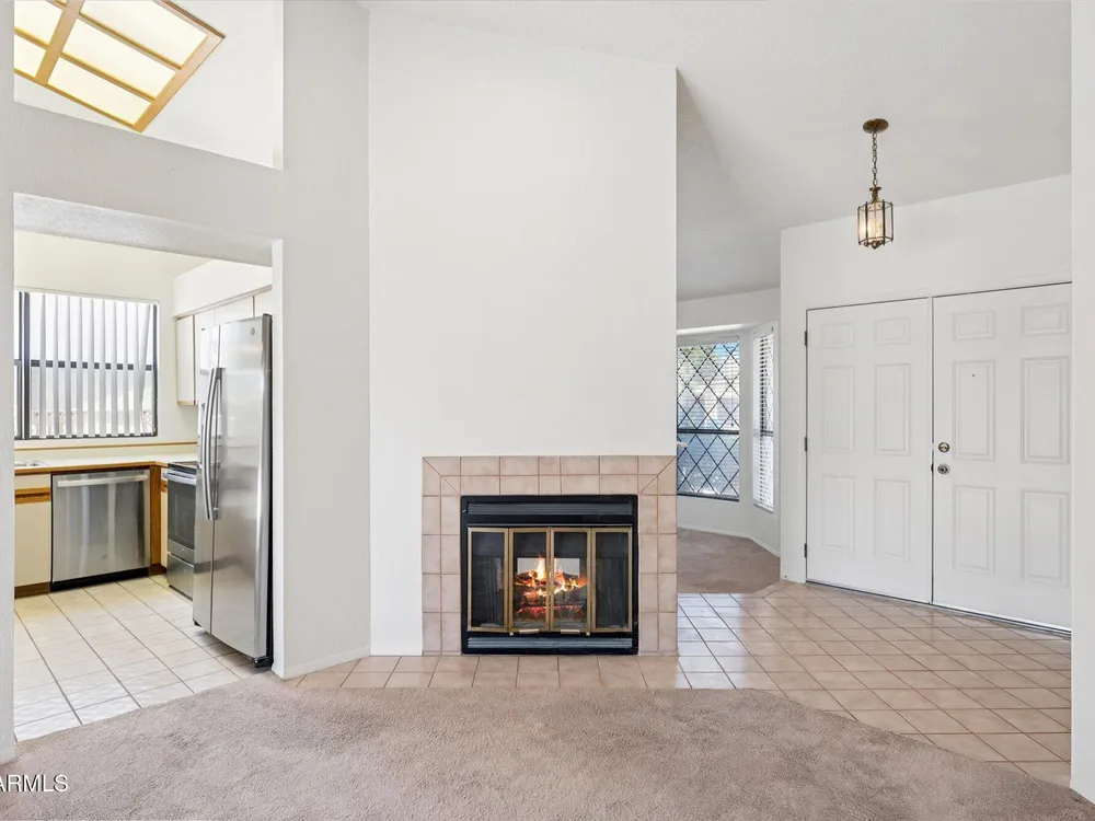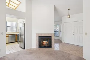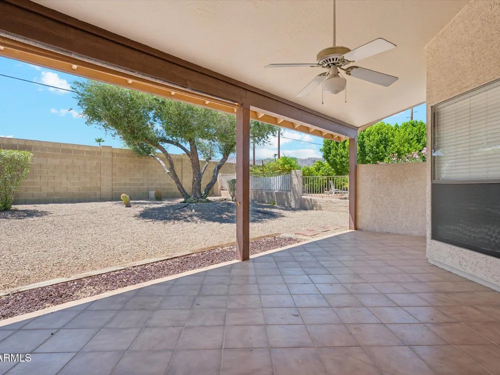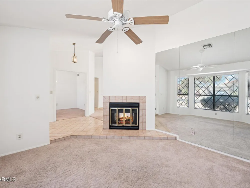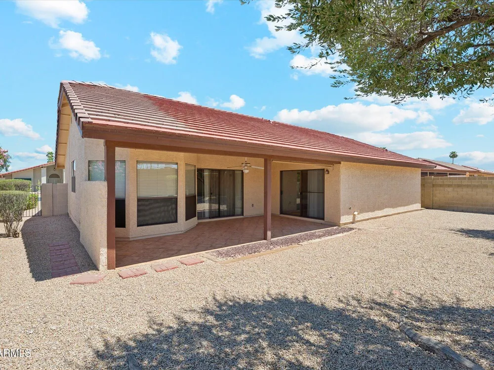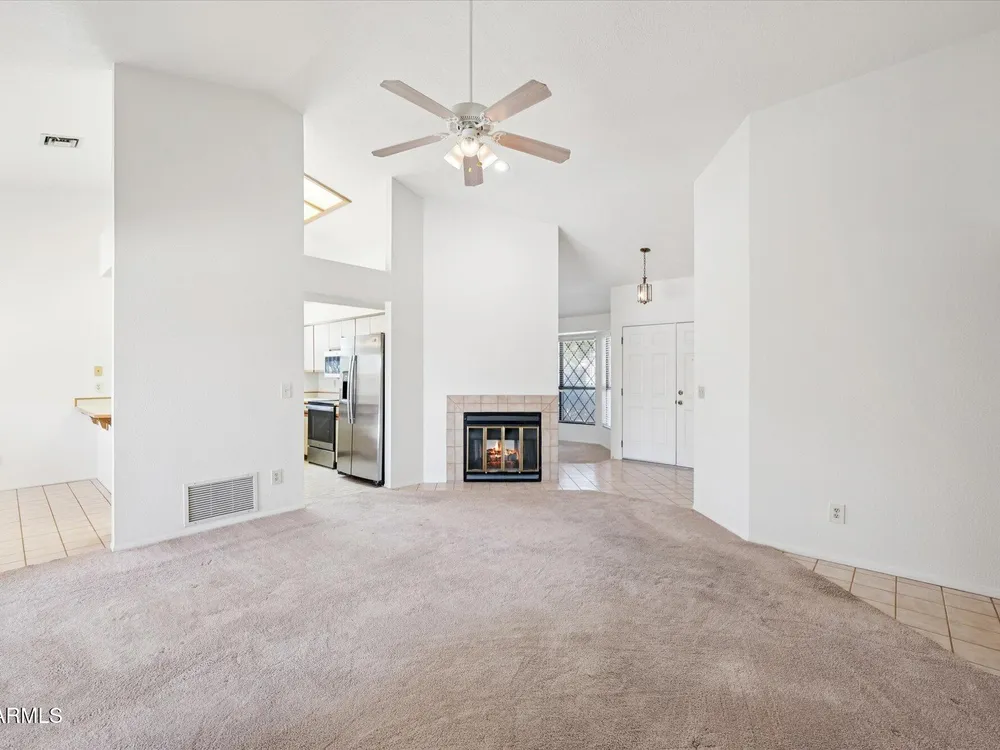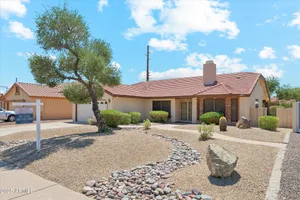 FRESH PAINT INSIDE AND NO MORE POPCORN CEILINGS! Spacious 3-bedroom home in the adult Community of Ahwatukee is ready for you to enjoy! Ahwatukee Recreation Center has pickleball courts, indoor/outdoor pools and more! Near Ahwatukee Lakes Golf Club. Discover vaulted ceilings, soothing paint, ceiling fans, and a blend of tile & carpet flooring. You'll LOVE the 2-way fireplace that links the welcoming living room and family room, perfect for relaxation! The kitchen comes with newer stainless steel appliances, plenty of cabinets, a breakfast bar, & a dining area with a lovely bay window. Make the sizable den a formal dining room, office, or study. The main bedroom offers a walk-in closet, a private bathroom with dual sinks & make up desk. Spacious backyard has mature trees and covered pati