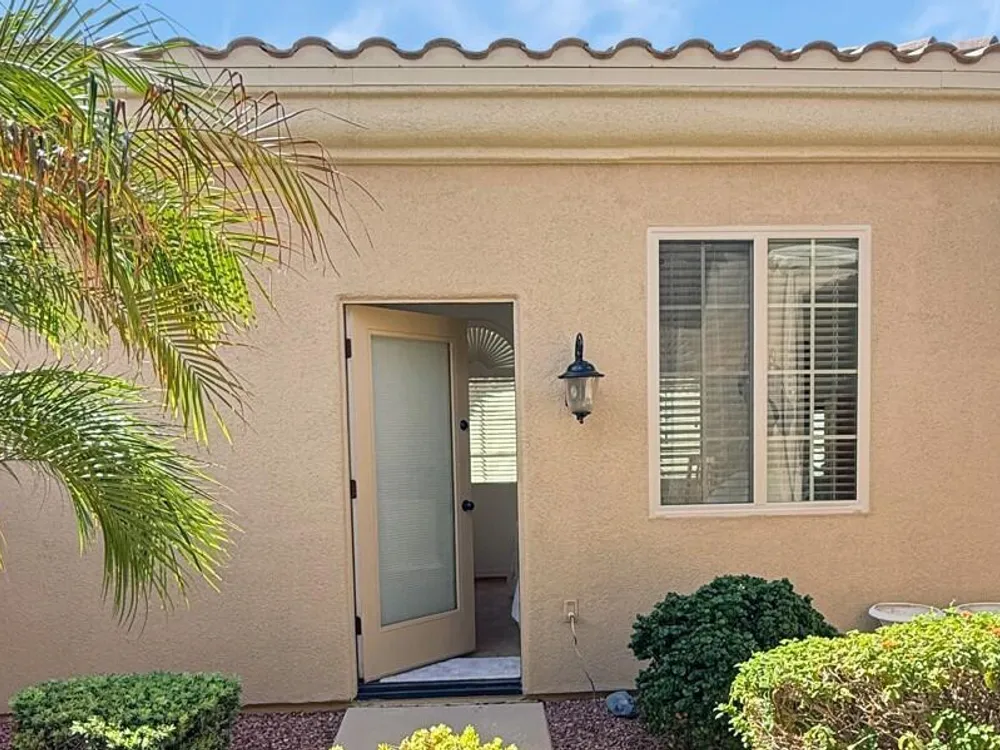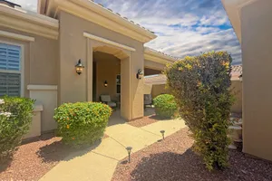 Luxury living at its finest! Welcome to the 45+ community of Corte Bella, this beautifully maintained home offers a desirable split floorplan with 2 bedrooms PLUS office/den in the main house, PLUS a 247 sq ft detached Casita featuring a private bed & bath—perfect for guests, hobbies, or a home office. The spacious kitchen boasts granite countertops, a large island, and plenty of cabinetry. Enjoy energy savings with leased solar at only $140/month. Step outside to your private retreat with a built-in BBQ, covered patio, and cozy sitting area—ideal for year-round entertaining. Corte Bella residents enjoy world-class amenities: Golf, fitness center, heated resort-style pool & spa, pickleball & tennis, social clubs, spa services, and a stunning clubhouse with dining. A true lifestyle home!