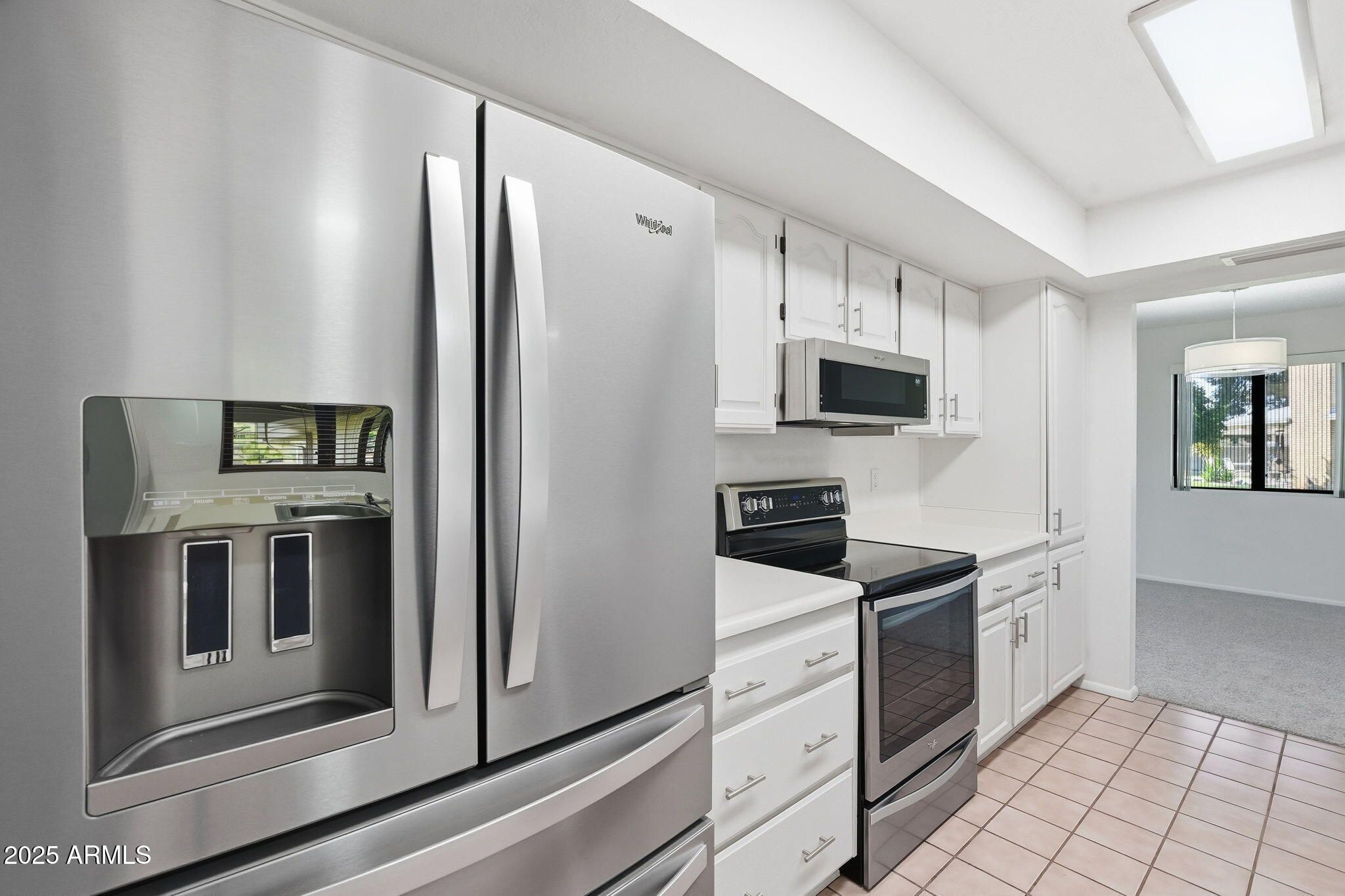 Welcome home to effortless living in the heart of Sun City West! This beautifully updated, low-maintenance 2-bedroom, 2-bathroom duplex is perfectly positioned for the active adult lifestyle you've been dreaming of. Enjoy the peace of mind of fresh paint throughout and plush new carpet in the main living areas and bedrooms. Abundant natural light streams into the home, perfectly complemented by stylish new fans and light fixtures. The kitchen boasts sleek stainless steel appliances and plenty of cabinet space. The bathrooms have been tastefully updated with new vanities. Never worry about clutter! This home features lots of storage, including built-in cabinets in the dedicated laundry room and additional cabinetry in the spacious garage. The low-maintenance living is guaranteed as the HOA takes care of the exterior maintenance and all landscaping. Plus, your water is included in the monthly fee. As a resident of Sun City West, you gain access to an unparalleled array of community amenities, including Multiple Recreation Centers, Sparkling Community Pools, State-of-the-art Pickleball Courts, Clubs, social groups, fitness centers, and more! Don't miss the opportunity to live your best life in this bright, beautiful, and hassle-free home!