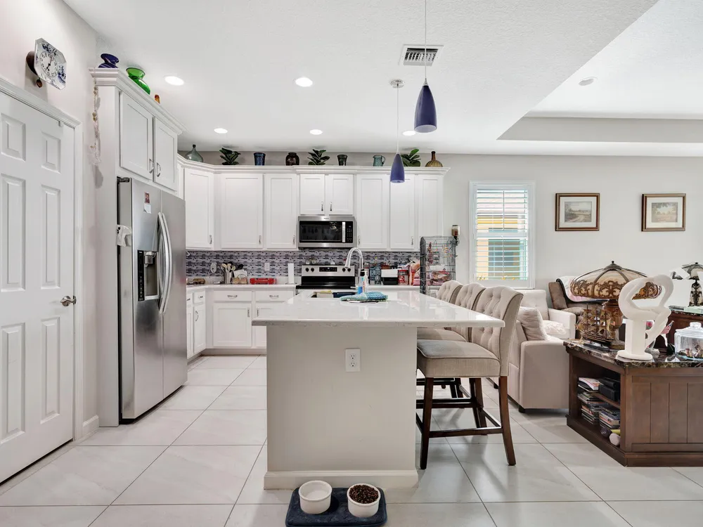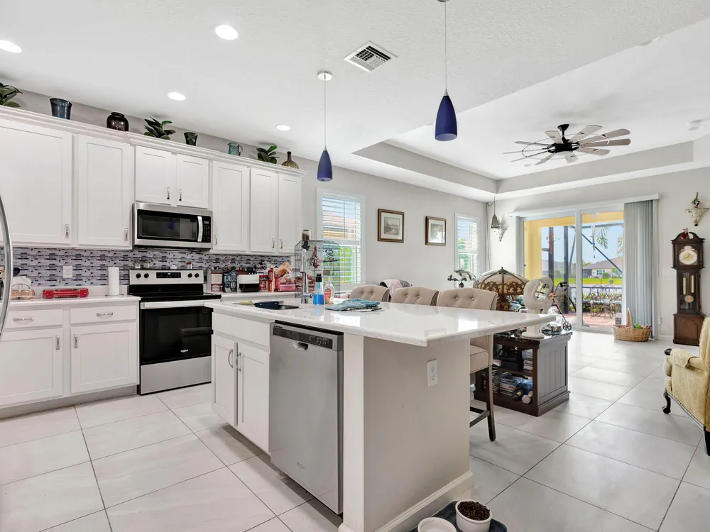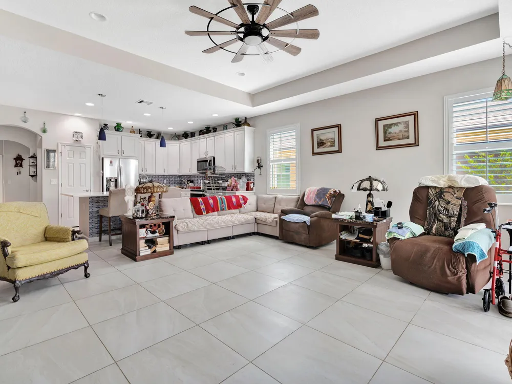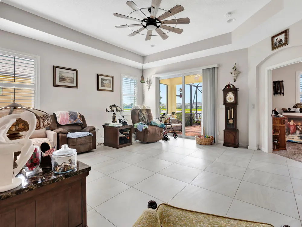 BUILT IN 2021, this IMMACULATE 55+ villa offers 2 bedrooms, a DEDICATED OFFICE WITH ELEGANT FRENCH DOORS, and a separate laundry room. The open layout features soaring ceilings, a BEAUTIFUL SPACIOUS KITCHEN, with Quartz Countertops, a Large Island, Stainless Steel Appliances, Plantation Shutters, and Hurricane Impact Windows for peace of mind. Enjoy STUNNING LAKE VIEWS from your oversized screened patio, perfect for entertaining or relaxing. A 2-car garage adds convenience, while NATURAL LIGHT FILLS EVERY ROOM, creating a warm, inviting feel. Located in the quiet gated community of LAKE PARK AT TRADITION.!! You'll enjoy Resort-Style Amenities and a Vibrant Lifestyle. It's time to ENJOY YOUR LIFE..! Call today for your private tour!