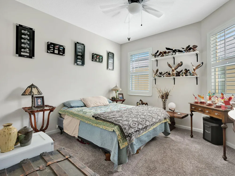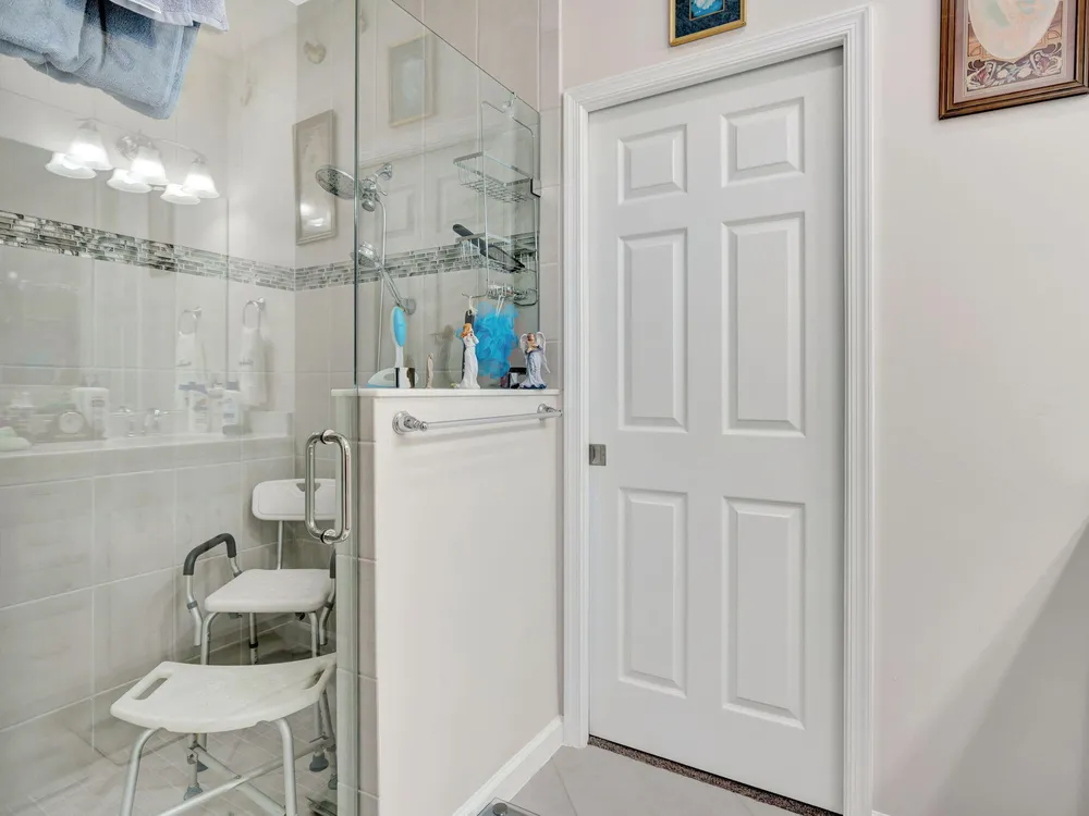 - Closet Cabinetry, Cathedral Ceiling(s), Entry Level Living Area, Entrance Foyer, High Ceilings, Walk-In Closet(s), Home Office, Living/Dining Room, Impact Glass, Plantation Shutters, Dual Sinks, Primary Downstairs, Separate Shower