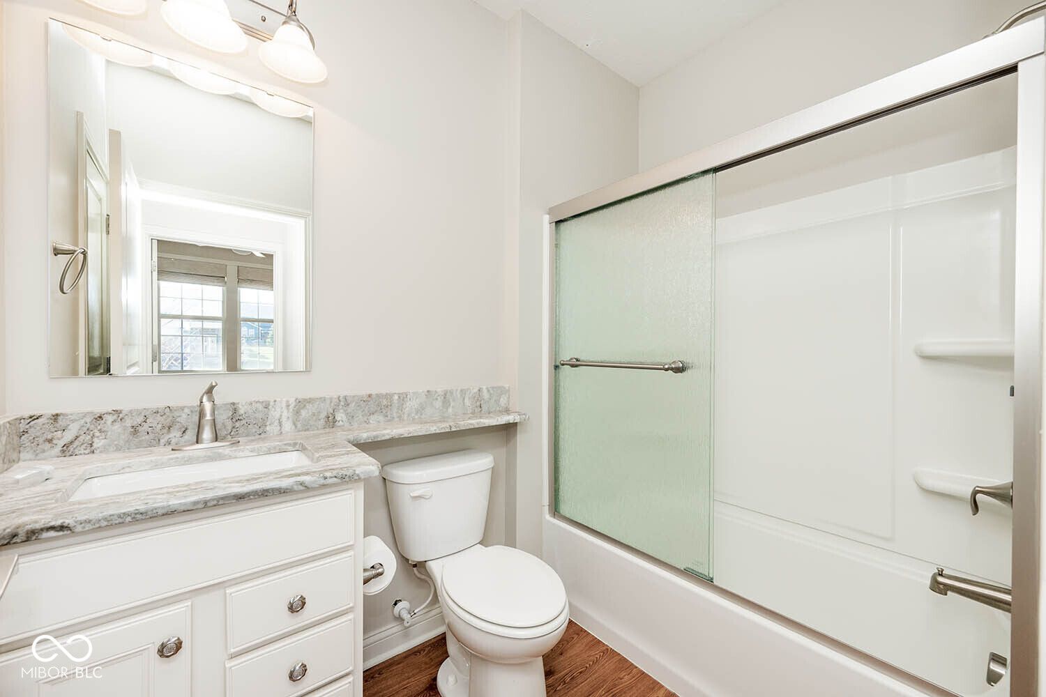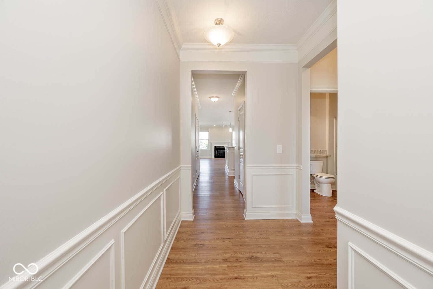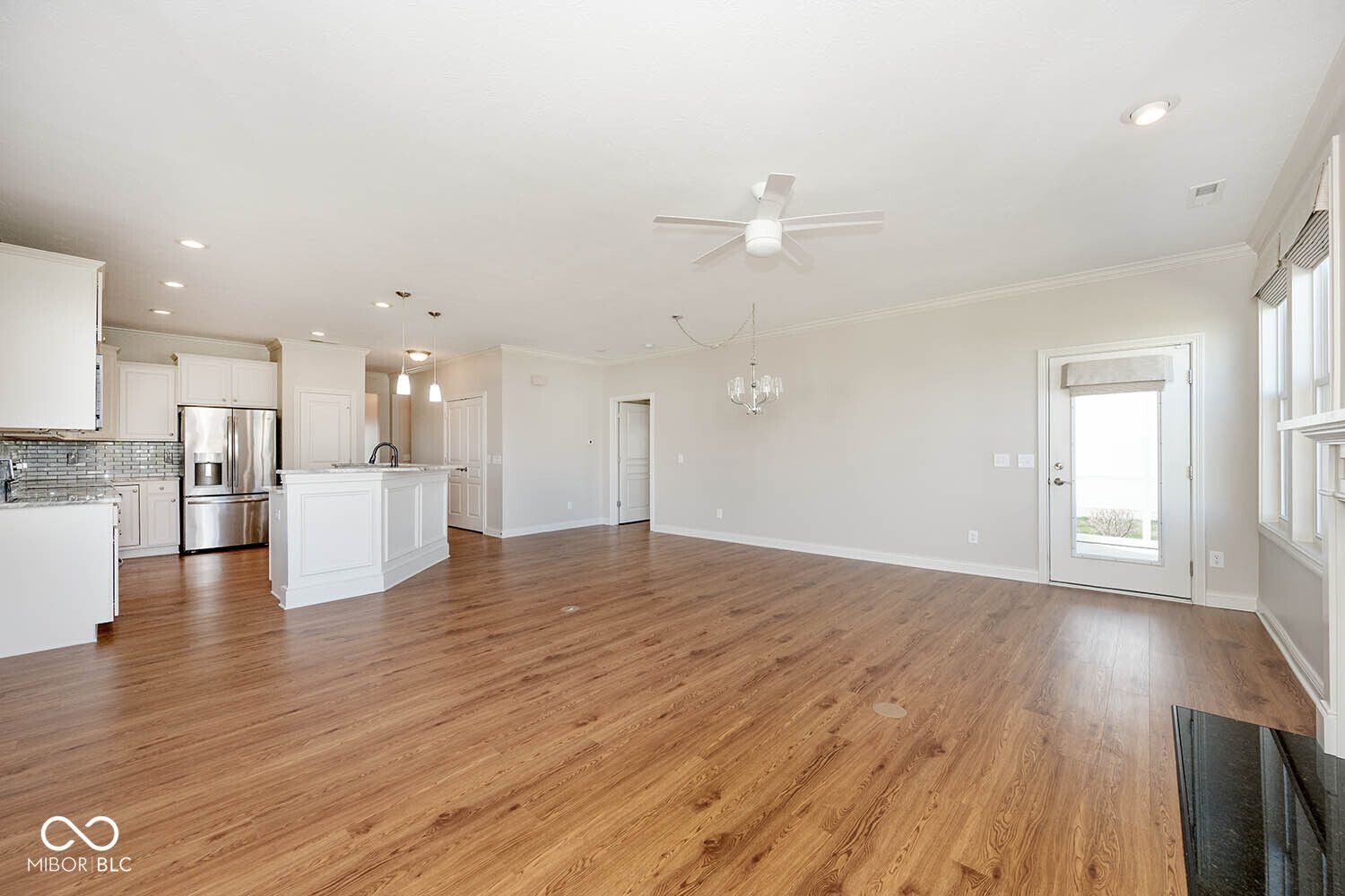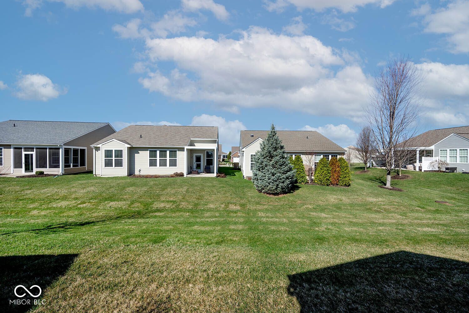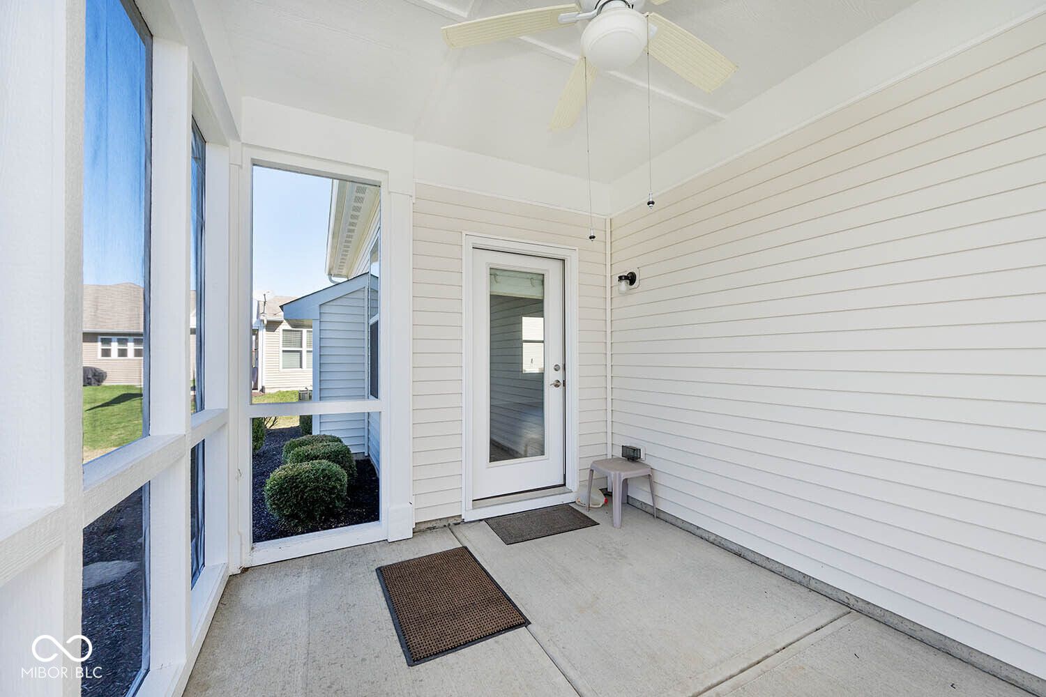 Welcome home to Fishers Del Webb 55 and Active Britton Falls Community! This immaculate property boasts a spacious 2 Bedroom, 2 Full Bath, Finished 2 Car Garage Home situated on semi private street which was just freshly painted throughout making this home truly move in ready. The open and airy floor plan is perfect for entertaining guests. The highlight of this home is the chef-inspired kitchen, complete with a beautiful center island, granite counter tops, stainless steel appliances including natural gas stove, french drawer refrigerator, microwave, dishwasher, subway tile backsplash plus creamy white cabinets. The kitchen is open into the great room with convenient gas fireplace and dining room areas, making it the heart of the home. Owners Suite features a tray ceiling, bathroom with double sinks, stand up shower with glass doors. Split bedrooms allowing the 2nd bedroom area next to the full bath/powder room perfect for guests, office or den. This home is full of upgrades that you would expect in a higher-end properties, including a large entryway with wainscoting panels, walk-in closets, low maintenance luxury vinyl plank floors, crown molding, raised ceilings, gas fireplace, water softener and level room which includes washer and dryer, plus enjoy your morning coffee or unwind on the 13x9 screened back porch. All of the amenities Britton Falls has to offer with a wonderful club house which includes: indoor/outdoor pools, fully equipped exercise room, tennis, pickleball and bocce ball courts as well as endless clubs and social activities throughout the year. This one won't last long so schedule your appointment today!