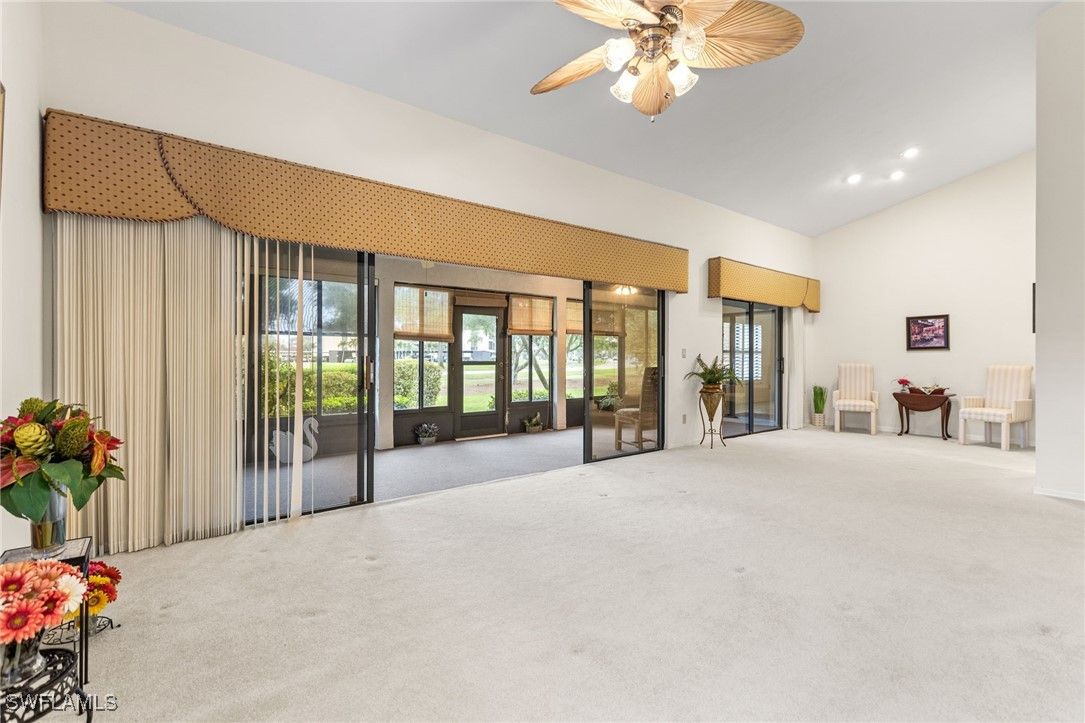 CHECK OUT THIS SINGLE-STORY, SINGLE FAMILY HOME in Cross Creek Country Club with BUNDLED GOLF!!! This "condo-home" offers 2 bedrooms and 2.5 baths, A 2-CAR GARAGE, and an EXPANSIVE SUNROOM on a quiet street. It also includes an extra flex room (18'X16'), making it an excellent second suite or space for a pool table, fitness/yoga, a MASSIVE DEN, or another family room. This beautiful residence is 2,000sqft under air and provides LARGE living areas, VAULTED CEILINGS, ample NATURAL LIGHT, separate full dining, GOURMET DESIGNER KITCHEN with breakfast area and built-in desk, and UPDATES throughout. A SPACIOUS master bedroom with an UPDATED ENSUITE BATH and full-wall closet makes this an INVITING RETREAT. This LOVELY home captures your affection: all appliances and W/D included. You will never want to leave this great South Fort Myers community: golf, restaurant/bar, tennis, pickleball, bocce, TWO POOLS, basic cable/internet, and more--or you could spend your time at the incredible beaches, dining, shopping, entertainment, Twins' and Red Sox's training stadiums, and RSW International Airport just 20 minutes away. Because of its low real estate taxes, prime location, and the ROOF & EXTERIOR ARE COVERED BY THE ASSOCIATION, this stunning "condo-home" is rated a "BEST VALUE BUY!" Now's the time to grab your piece of PARADISE!