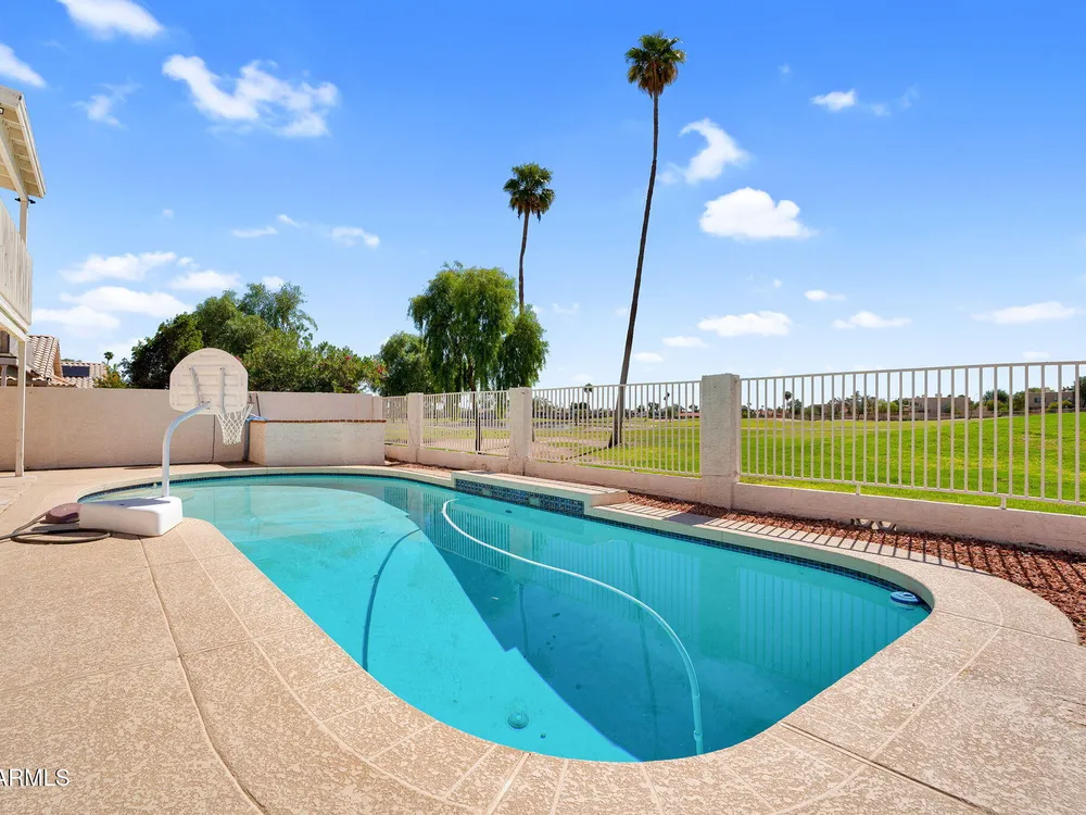 Beautiful cul-de-sac home in Ahwatukee with many updates throughout—see the upgrades document for details! 3 bedrooms, 2.5 baths, huge primary suite with covered balcony and panoramic views of South Mountain, golf course, and diving pool. Main pool equipment updated in 2022. Oversized second bedroom was a home office but can easily convert to a fourth bedroom. Garage with built-in storage. Only double-sized lot in subdivision with cement pad perfect for basketball, pickleball, entertaining, or enjoying Arizona sunsets. Fresh paint upstairs, new carpet, custom blinds, large kitchen pantry, and low-maintenance desert landscaping complete this stunning home.