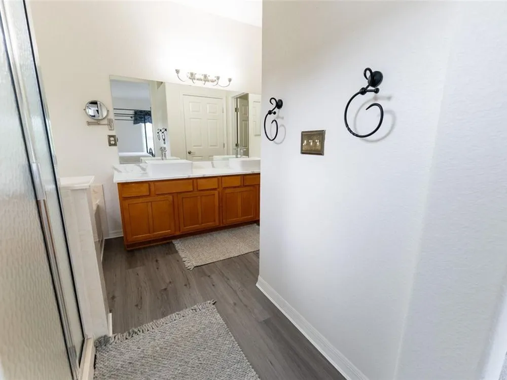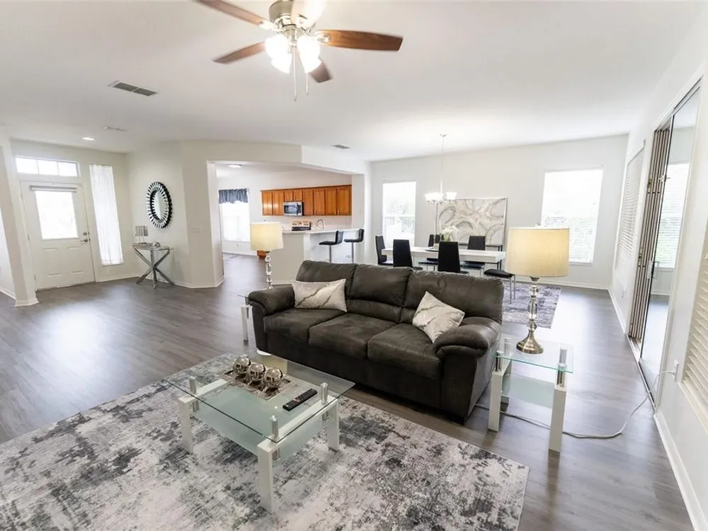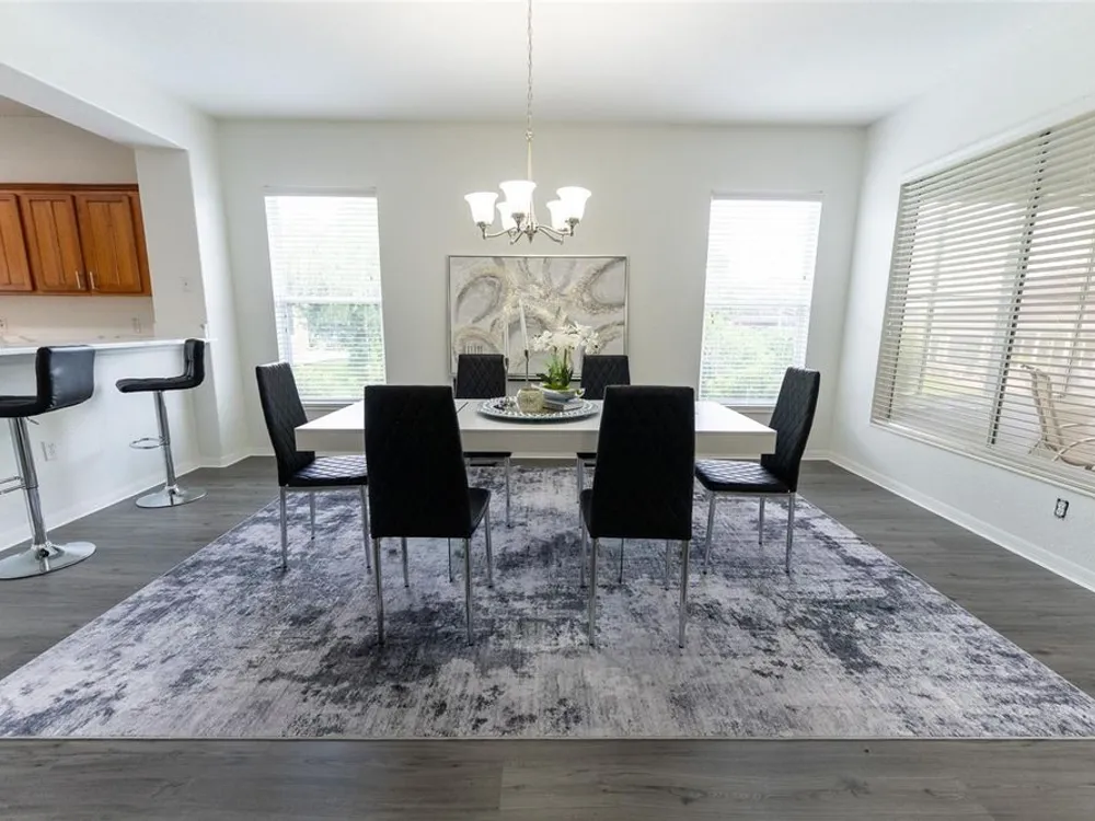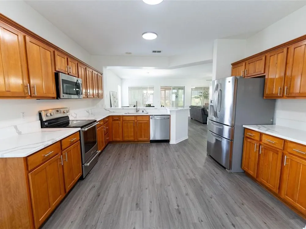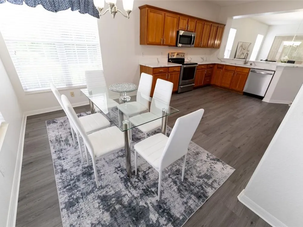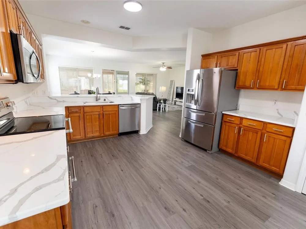 - Eat-in Kitchen, Living/Dining Room, Main Level Primary, Solid Surface Counters, Split Bedrooms, Thermostat