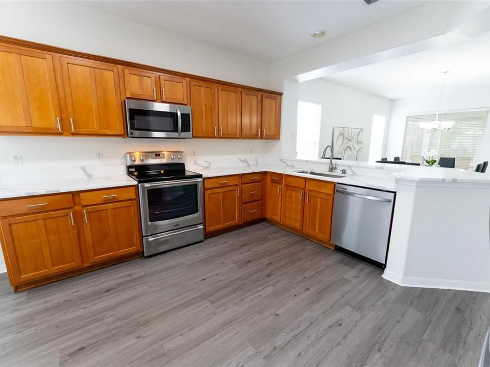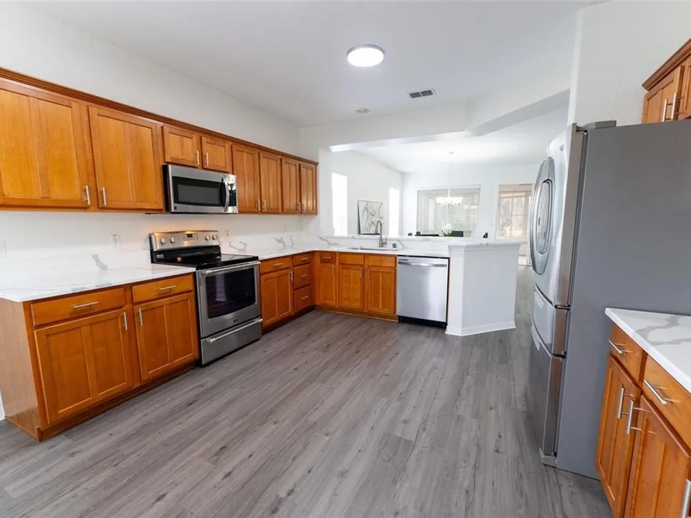- Dishwasher, Disposal, Dryer, Gas Water Heater, Microwave, Range, Range Hood, Refrigerator, Washer