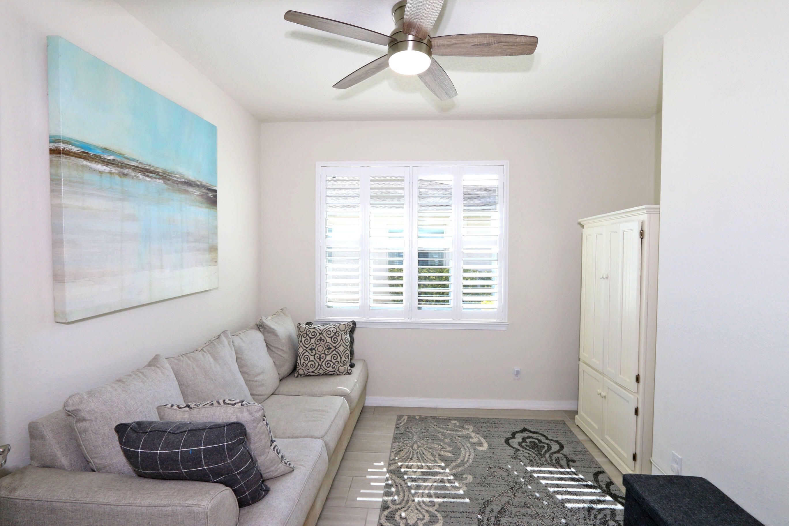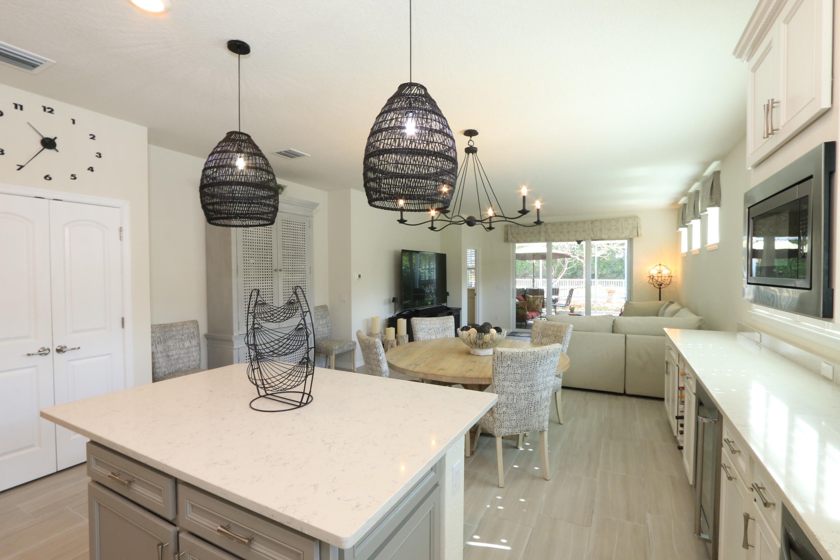 Fantastic villa in Del Webb at Tradition offering a bright, open floor plan. This well-appointed home features 2 bedrooms, 2 baths, plus a versatile flex room perfect for a den or home office. The spacious kitchen showcases custom extended cabinetry, a large island, and plenty of storage--ideal for everyday living and entertaining. Plantation shutters and plank tile flooring run throughout the home. The generous primary suite includes a spacious bath and walk-in closet. Enjoy Florida outdoor living on the extended screened patio overlooking a fenced yard--perfect for relaxing or entertaining. Active 55+ community with 2 Clubhouse, 2 Pools, pickleball, tennis, bocce, putting green.