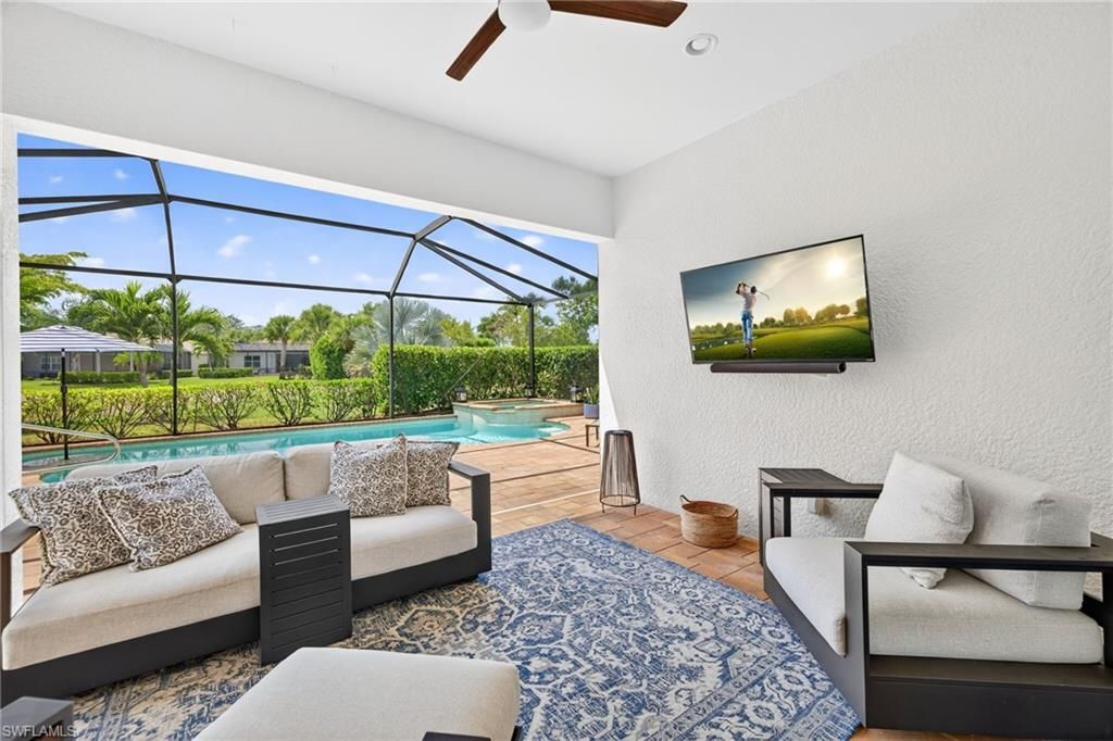 Lakefront pool home with sunset views! Beautifully upgraded Vanderbilt model featuring impact windows and doors, saltwater pool & spa, updated quartz kitchen, and premium corner lot location.Built in 2015, this meticulously maintained home offers 3 bedrooms plus a den, 2 bathrooms, and 1,912 sq. ft. of thoughtfully designed living space with an open floor plan ideal for both everyday living and entertaining.The redesigned kitchen showcases new cabinetry, quartz countertops, designer backsplash, Bosch appliances, and a coffee and wine bar with built-in wine fridge creates a perfect space for entertaining.Step outside to your private lakefront retreat featuring a saltwater pool and spa with electric heater and desirable southwestern rear exposure providing all-day sunshine and breathtaking sunset views.Designed with comprehensive storm protection, the home includes impact-resistant doors and windows complemented by electric roll-down Kevlar shutters on the lanai, allowing for secure and convenient hurricane preparation.Additional upgrades include newer A/C (2021), washer and dryer (2021), reverse osmosis system, custom drapes, crown molding, landscape lighting, and recently painted interior and exterior. The extended two-car garage features an epoxy floor and additional storage space.The versatile den is ideal for a home office, media room, or guest accommodations, while the upgraded laundry room offers built-in cabinetry and a utility sink for added convenience.Ideally positioned on a premium corner homesite with tranquil water views, this move-in-ready residence combines luxury upgrades, security, and effortless Southwest Florida living.Somerset at The Plantation offers an exceptional amenity package including pickleball, tennis, two pools, sauna, massage and facial rooms, a fitness center, bocce ball, a library, and numerous social clubs. HOA services include Hotwire internet and cable, irrigation, lawn mowing, fertilization, landscape trimming, and mulching. Optional golf and social memberships are available at The Plantation Golf & Country Club, featuring an 18-hole Hurdzan Fry championship course, driving range, putting green, and on-site dining. This home is ideally located near I-75, shopping, dining, RSW airport, and Gulf beaches.