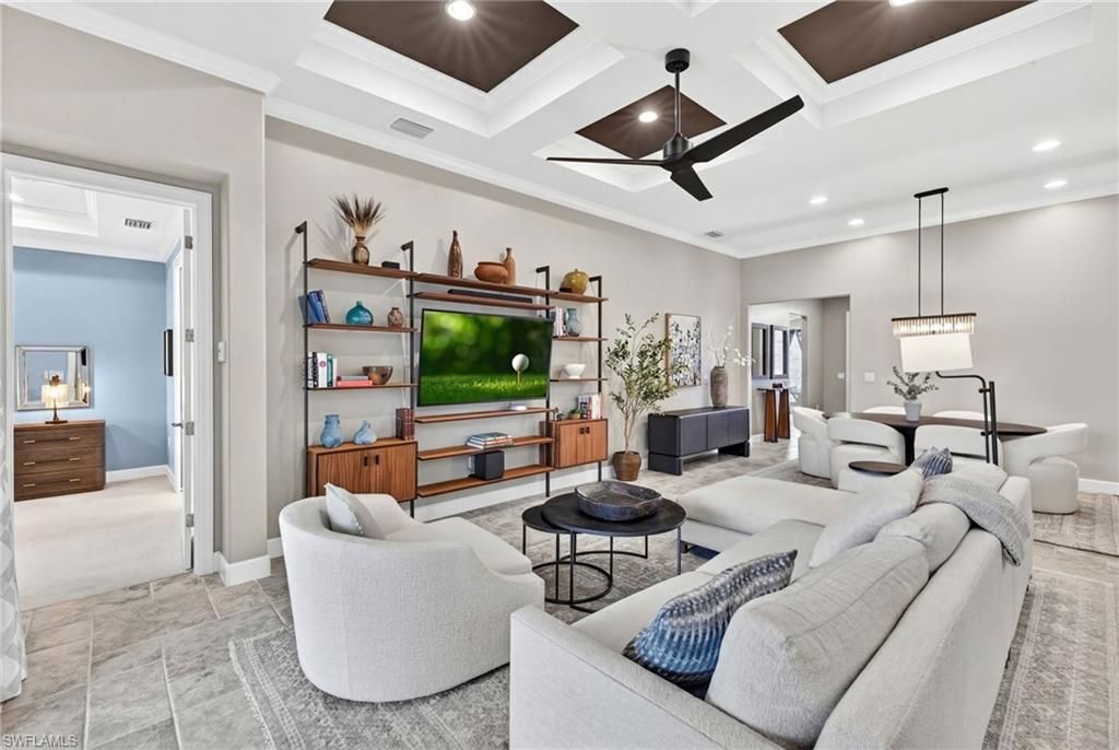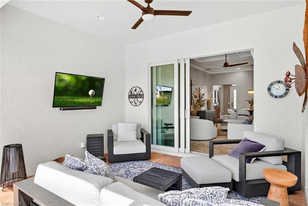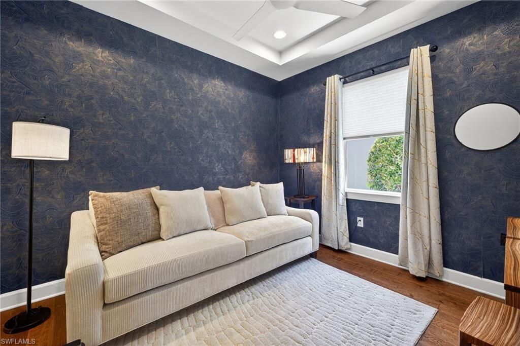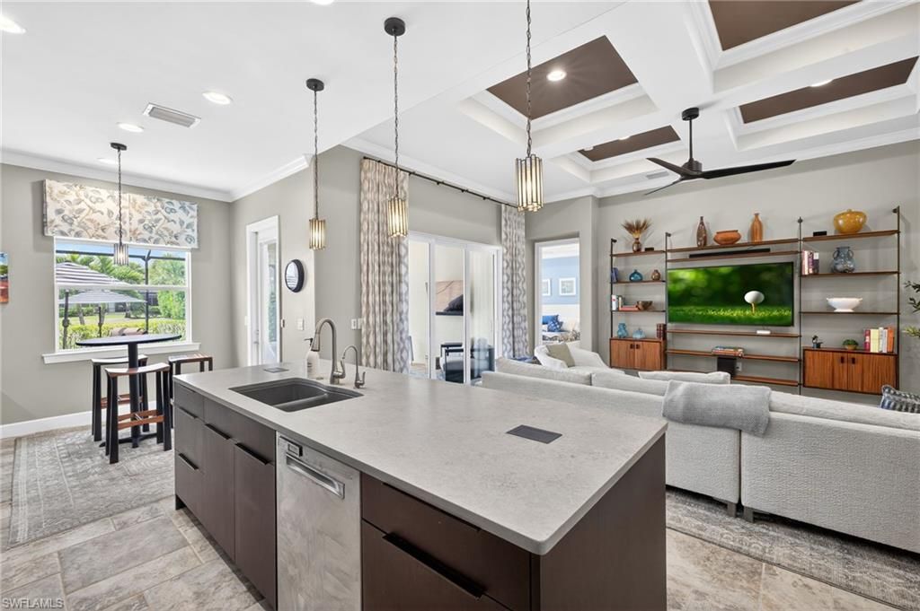 - Built-In Cabinets, Cable TV Hookup, Entrance Foyer, Internet Available, Laundry Tub, Smoke Detector, Tray Ceiling(s), Window Coverings, Den, Laundry Facility, Bedroom on Main Level, Split Bedrooms, Breakfast Bar, Breakfast Room, Living/Dining Room, Kitchen Island, Dual Sinks, Separate Shower, Impact Glass, Washer/Dryer Hookup