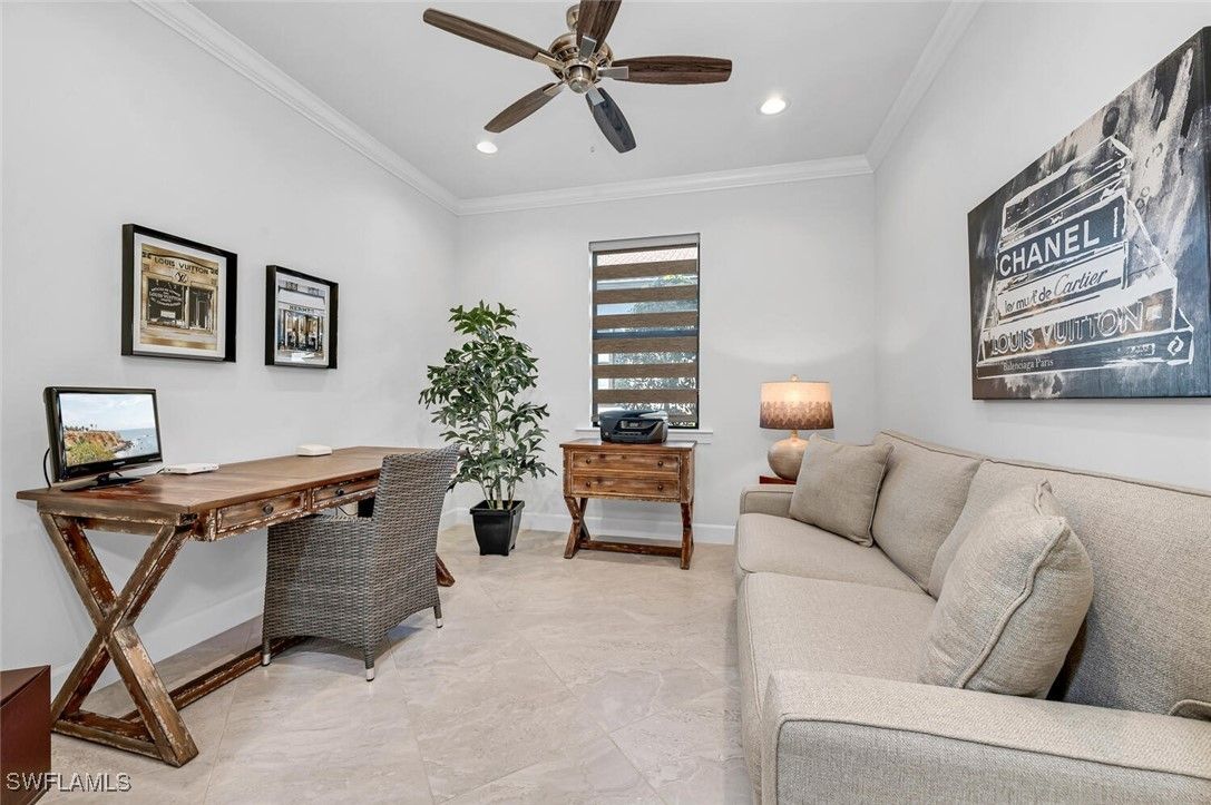 Let's Go! Enjoy Casual Luxury in this stunning Summerwood Home in the Prestigious Somerset at The Plantation Golf and Country Club! This stunning Summerwood home sits on a quiet cul-de-sac offering a rear Western exposure, capturing the warm SWFL sunlight and breathtaking sunsets. Relax in the expansive outdoor living space with a zero-corner slider blending your indoor and outdoor entertaining space. The Lanai furniture is casual and comfortable and INCLUDED! This Exquisite Home with its professional Interior Design is being SOLD Furnished for your CONVENIENCE. This luxurious residence features: Stone front design with an oversized Front Porch for enjoying a morning coffee or afternoon tea, Two large Bedrooms, a spacious Den / Flex Room (or use as a third bedroom), large Laundry with extra Fridge and plenty of storage. 2.5 Car oversized (4 FT Extension) Garage (Insulated) including a Work-Shop Area and 12 x 24 Porcelain Floor Tile for easy clean-up and an extra "Shop" area. Enjoy the stunning lake and fountain views, illuminated at dusk. A roomy Master suite with coffered ceilings, custom window treatments and a large walk-in closet. Two bathrooms, including a primary bath with dual sinks, a walk-in shower, and granite countertops, A gourmet kitchen with beautiful 42" white upgraded cabinets, soft-close drawers and doors, granite countertops, marble tile backsplash, and a large island, Stainless Kitchen Appliances, Tray Ceilings, 8-foot Architectural doors, crown molding, and large tile on the diagonal in the main living areas. Custom lighting, and designer window treatments throughout. Golf enthusiasts will appreciate the exclusive membership opportunity to play the community's challenging Hurdzen-Frye designed golf course. GOLF MEMBERSHIP IS OPTIONAL. For those who prefer to focus on other activities, social memberships are available, providing access to the community's restaurants and events. The comprehensive HOA fee covers a wide range of amenities, including: 6 tennis courts, 6 pickleball courts, Bocce courts, State-of-the-art gym, Resort-style community pool, lap lanes and a private spa, A professional tennis and pickleball pro is available for private lessons and group clinics, enhancing the community's recreational offerings. Move around the community in your private GOLF CART! Enjoy the ultimate convenience with this property's prime location, just moments from: Shopping, dining and entertainment options, including Jet Blue Park, South West Florida’s beautiful and serene beaches, world-class Healthcare and just 10 minutes to RSW Airport. Don't miss out on this incredible opportunity to experience the BEST of the Southwest Florida Lifestyle! Live EXTRA-ORDINARILY!!