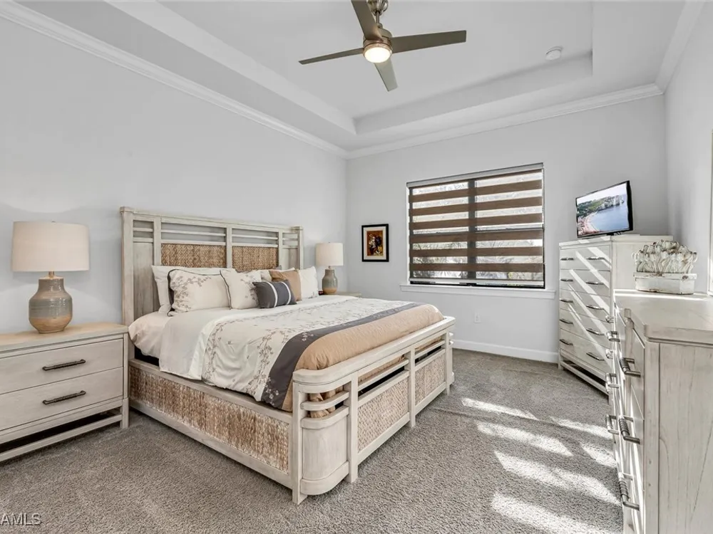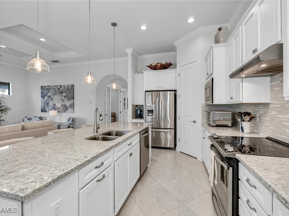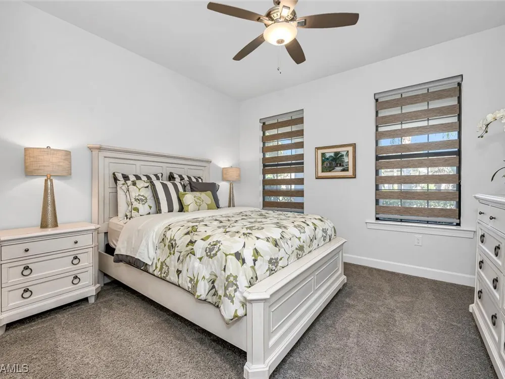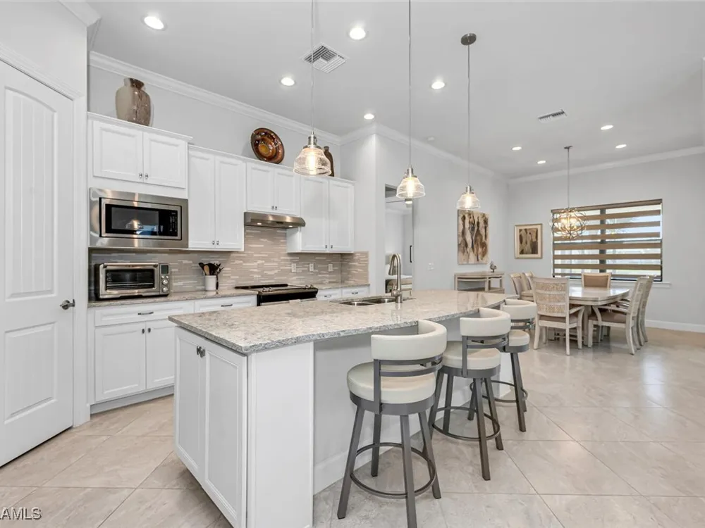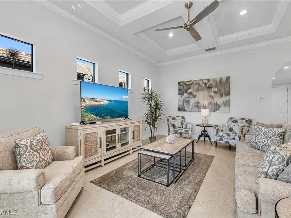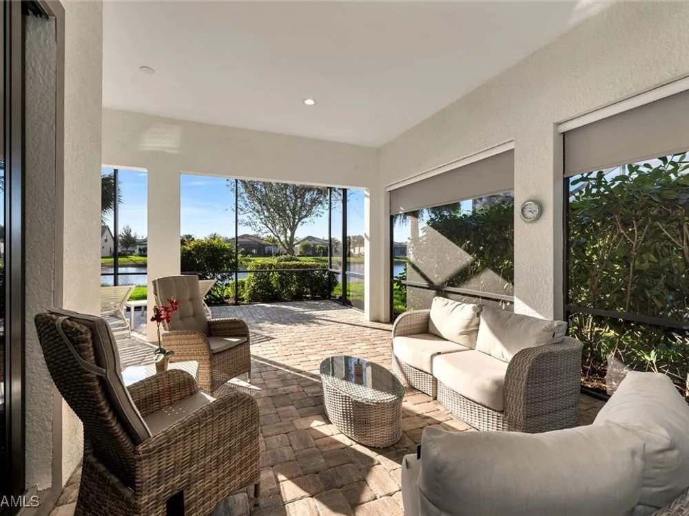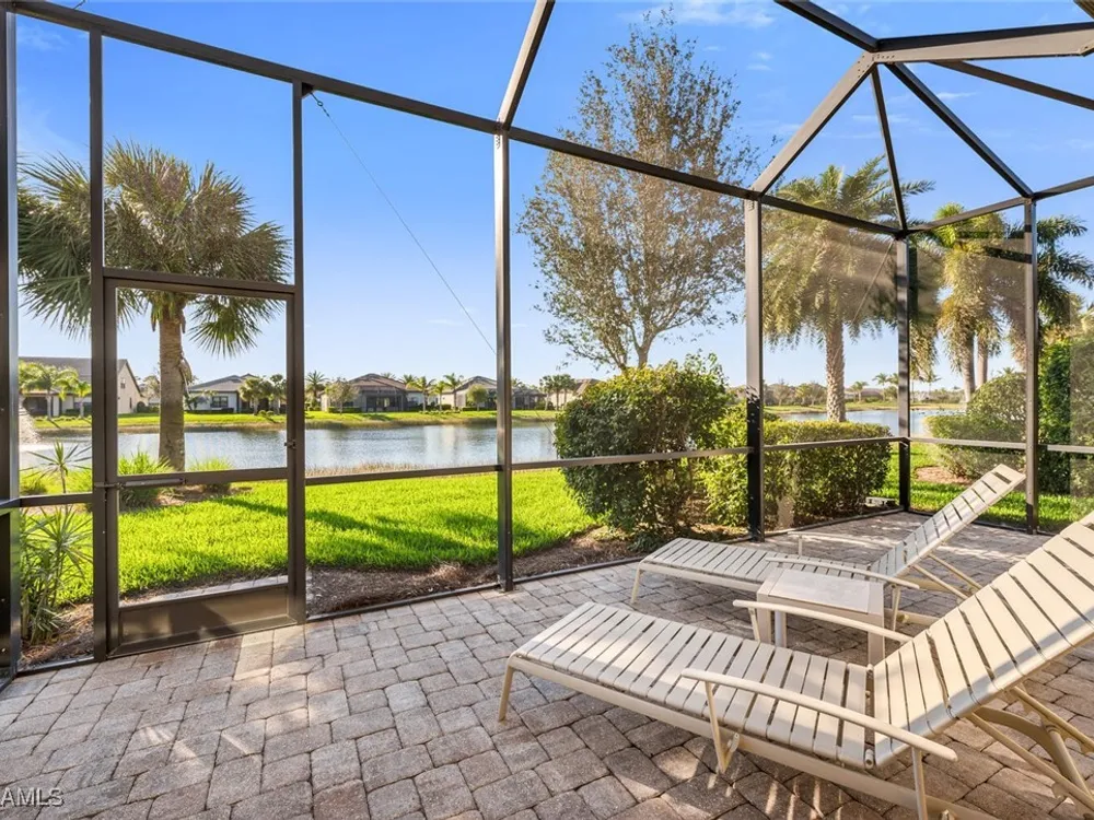 PRICE REDUCED TO SELL!! Come Home to Casual Luxury in the popular Summerwood floorplan in the Prestigious Somerset at The Plantation Golf and COuntry Club. This stunning Summerwood home on a quiet cul-de-sac offers a rear Southwest-exposure, capturing the warm SWFL sunlight and breathtaking sunsets. Relax in the expansive outdoor living space with a zero-corner slider blending your indoor and outdoor entertaining space. The Lanai furniture is casual and comfortable and negotiable. Other furniture is available for purchase separately. This luxurious residence features: Stone front elevation with oversized Front Porch for enjoying a morning coffee or afternoon tea, Two large Bedrooms, a spacious Den / Flex Room (or use as a third bedroom), large Laundry with extra Fridge and plenty of storage. 2.5 Car oversized (4 FT Extension) insulated Garage with 12 x 24 Porcelain Tile Floor for easy clean-up and an extra "Shop" area. Enjoy the stunning lake and fountain views, illuminated at dusk. A roomy Master suite with coffered ceilings, custom window treatments and a large walk-in closet. Two bathrooms, including a primary bath with dual sinks, a walk-in shower, and granite countertops, A gourmet kitchen with beautiful 42" white upgraded cabinets, soft-close drawers and doors, granite countertops, marble tile backsplash, and a large island, Stainless Kitchen Appliances, Tray Ceilings, 8-foot Architectural doors, crown molding, and large tile on the diagonal in the main living areas. Custom lighting, and designer window treatments throughout. Golf enthusiasts will appreciate the exclusive membership opportunity to play the community's challenging Hurdzen-Frye designed golf course. GOLF MEMBERSHIP IS OPTIONAL. For those who prefer to focus on other activities, social memberships are available, providing access to the community's restaurants and events. The comprehensive HOA fee covers a wide range of amenities, including: 6 tennis courts, 6 pickleball courts, Bocce courts, State-of-the-art gym, Resort-style community pool, lap lanes and a private spa, A professional tennis and pickleball pro is available for private lessons and group clinics, enhancing the community's recreational offerings. Move around the community in your private GOLF CART! Enjoy the ultimate convenience with this property's prime location, just moments from: Shopping, dining and entertainment options, including Jet Blue Park, South West Florida’s beautiful and serene beaches, worl-class Healthcare and just 10 minutes to RSW Airport. Don't miss out on this incredible opportunity to experience the best of the Southwest Florida Lifestyle! Its time to Live EXTRAORDINARY!!