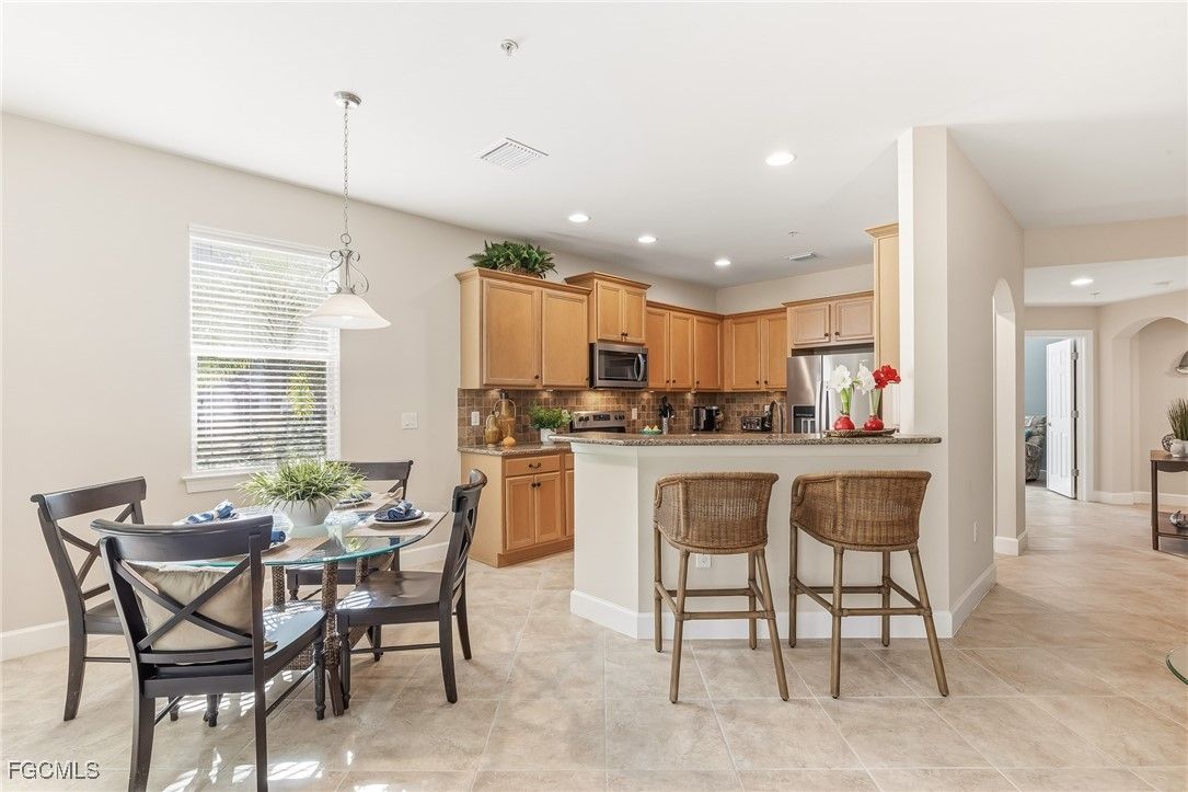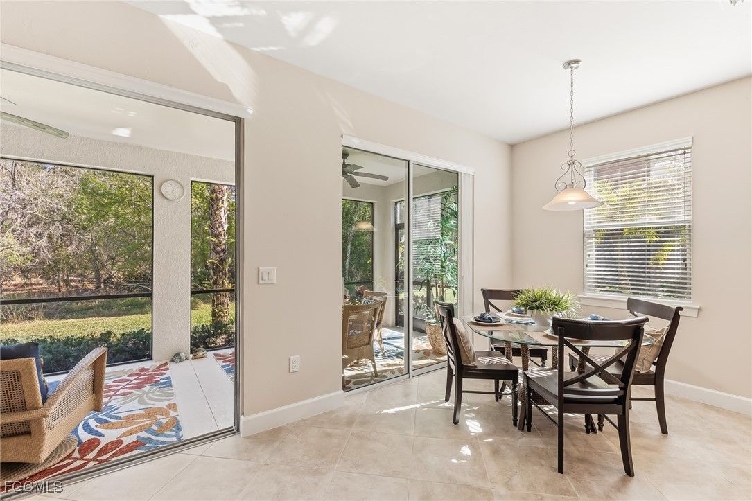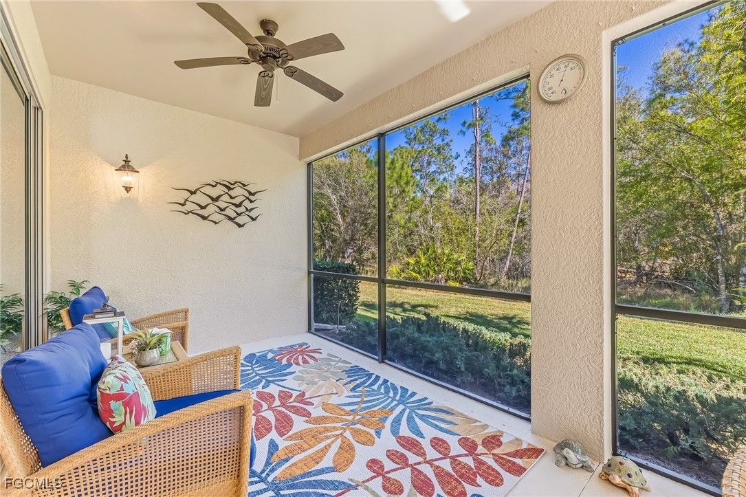 Pulte Model Luxury with Serene Preserve Views - Experience carefree Florida living in this meticulously maintained, first-floor carriage home located in one of Fort Myers' most desirable gated communities. Originally a Pulte model, this residence is offered furnished and move-in ready. Spanning 1,654 square feet, the thoughtful layout features two spacious bedrooms, two bathrooms, a versatile den with French doors that easily serves as a third bedroom or home office, and a spacious two car garage. The heart of the home is a beautifully appointed kitchen featuring rich wood cabinetry, granite countertops, stainless steel appliances, and a breakfast nook that opens to a private, screened lanai. The open-concept great room flows seamlessly onto an expansive lanai, where you can enjoy peaceful, lush preserve views. Elegant diagonal tile runs throughout the entire condo, providing a high-end, cohesive look that is both durable and easy to maintain. Major recent upgrades include a new air conditioning system, a new lanai cage and screens, and a water heater and kitchen appliances that are only two years old. The interior was also professionally painted within the last two years. The primary suite is a true retreat, offering two walk-in closets and a spa-like bathroom with dual sinks, a soaking tub, and a walk-in shower. A private guest suite ensures comfort for visitors, guest bath with a walk-in shower, while the separate laundry room adds convenience with built-in cabinetry and a laundry tub. Located outside of a flood zone, this home offers effortless seasonal or year-round living. The comprehensive HOA fee covers cable, high-speed internet, lawn care, pest control, water, trash, and exterior insurance. You are walking distance to the Country Club and Amenity Center. Residents enjoy world-class amenities including tennis, pickleball, bocce, a fitness center, and a resort-style pool and spa. The Plantation Golf & Country Club is just steps away, featuring a Hurdzan-Fry championship 18-hole course and a full-service restaurant. Memberships are optional, allowing you to tailor your lifestyle. Perfectly situated near I-75, RSW airport, fine dining, and pristine Gulf beaches—this is the perfect place to settle into the sunshine. Make your appointment today!