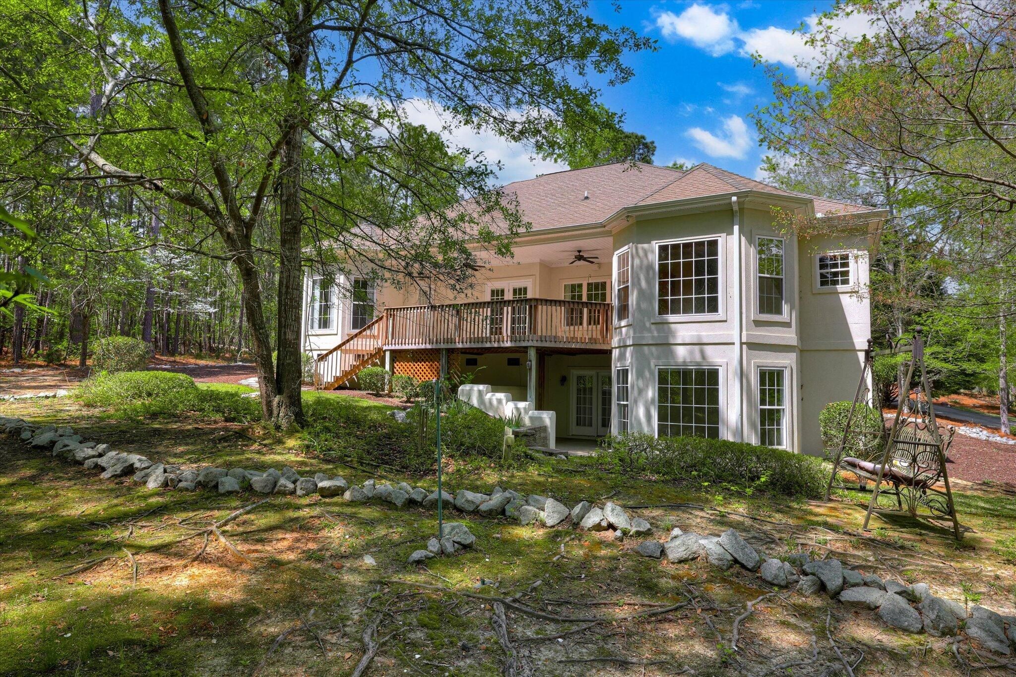 If you've been searching for a home that offers space, privacy, and character--without the feel of a cookie-cutter design--129 Antioch Drive delivers, perfectly positioned on a wooded 0.78-acre lot in the Monticello Subdivision of Savannah Lakes Village. This charming custom-built home by Cooper Homes, completed in 2003, offers approximately 2,100 square feet of well-designed living space, including main-level living and additional space below for guests, hobbies, or flexible use. Featuring 3 bedrooms and 2.5 bathrooms, this layout is ideal for both everyday comfort and hosting family or friends. The home carries a subtle Mediterranean/Tuscan influence, showcased through warm tones, architectural details, and expansive ceramic tile flooring throughout the main living areas--creating an inviting and comfortable atmosphere. The main level features a spacious living room centered around a gas fireplace, along with a cozy den and a dedicated office--perfect for those who appreciate extra space to relax or work from home. The kitchen is generously sized and filled with natural light, offering ample cabinetry and an inviting eat-in area that makes it the heart of the home. The primary suite is a true retreat, offering generous space along with an en suite bath featuring dual vanities, a large shower, and a spacious closet. Downstairs, two additional bedrooms share a full bathroom and each offer direct access to a covered lower-level patio--an ideal setup for guests and a private outdoor escape. There is also abundant storage space throughout the lower level. Outdoor living is just as enjoyable, with a large Trex deck overlooking the peaceful wooded setting--perfect for grilling, dining, or simply enjoying the quiet surroundings. The property backs to POA-owned land, offering added privacy and the peace of mind that no future development will be built directly behind you. Mature landscaping and a spacious .78-acre lot enhance both privacy and curb appeal, while the oversized two-car garage adds everyday convenience. Updates - a new HVAC system was installed in 2023. Located just minutes from the Monticello Golf Course, this home offers easy access to one of Savannah Lakes Village's most loved amenities. This is a home with character and solid construction--ready for its next owner to appreciate its unique style as-is or bring their own vision to enhance and personalize it over time. If you've been searching for a home with space, privacy, and potential in a premier lake and golf community, 129 Antioch Drive is well worth a look.