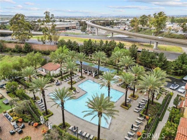 Private, stunning, and impeccably designed, this exceptional residence is a rare offering within the prestigious Aldea at Travata 55+ gated community in Irvine. This 2-bedroom, 2-bath luxury home spans 1,552 square feet and is completely furnished with high-end designer furnishings, allowing for a truly turnkey move-in experience. Soaring 12-foot ceilings with large windows offer a thoughtfully designed open layout creating an airy, sophisticated atmosphere, while the home’s exceptional privacy sets it apart. A private outdoor deck extends the living space, ideal for relaxing or entertaining in a serene setting. Uniquely appointed, the home features an elevator inside the residence, providing seamless and convenient access and enhancing both comfort and long-term livability. Travata residents enjoy exclusive access to The Travata Club, an upscale private facility offering a 65-foot sparkling saltwater lap pool and spa, pickleball and bocce courts, a fully equipped fitness center, and a robust calendar of exercise, wellness, and social classes. Indoor and outdoor lounges, a yoga lawn, dog park, and beautifully landscaped grounds create a true resort-style lifestyle within a secure, gated environment. Ideally located, Travata offers convenient access to the Orange County Great Park, the Great Park Sports Complex, and the surrounding Great Park Neighborhoods, providing abundant opportunities for recreation, events, dining, and entertainment. This is a rare opportunity to own a fully furnished, designer luxury home in one of Irvine’s most desirable 55+ communities—where privacy, elegance, and resort-style living come together effortlessly.